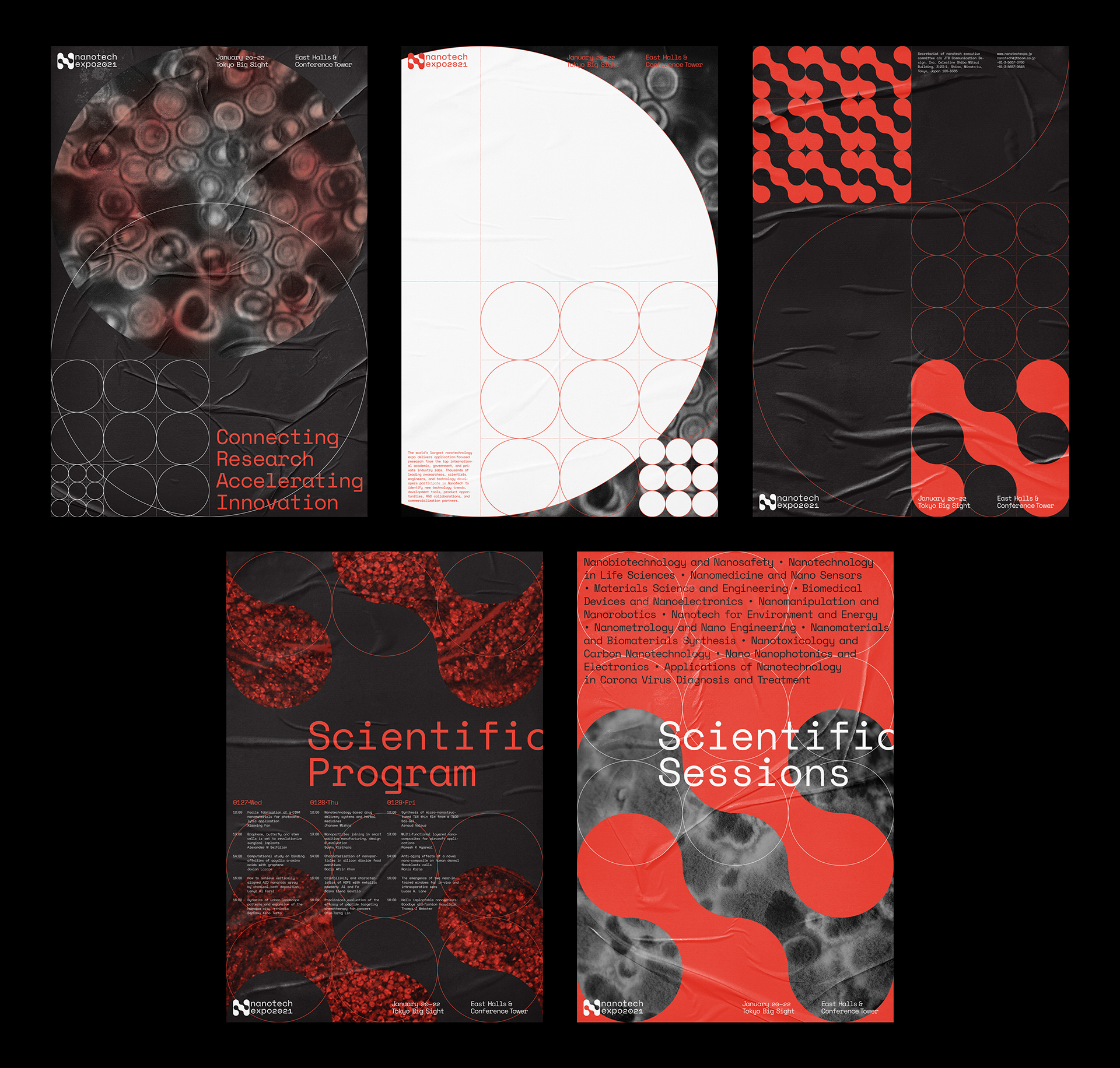 Nanotech Expo is the world's largest annual nanotechnology conference, gathering leading researchers, scientists, engineers, developers, and entrepreneurs to discuss the innovation and future of nanotechnology. The identity system of Nanotech Expo is based on the idea that nanoscale molecules interact with each other to bring innovation. Also, the new logo conveys the conference’s mission, connecting a wide range of experts to innovate the future of nanotechnology.