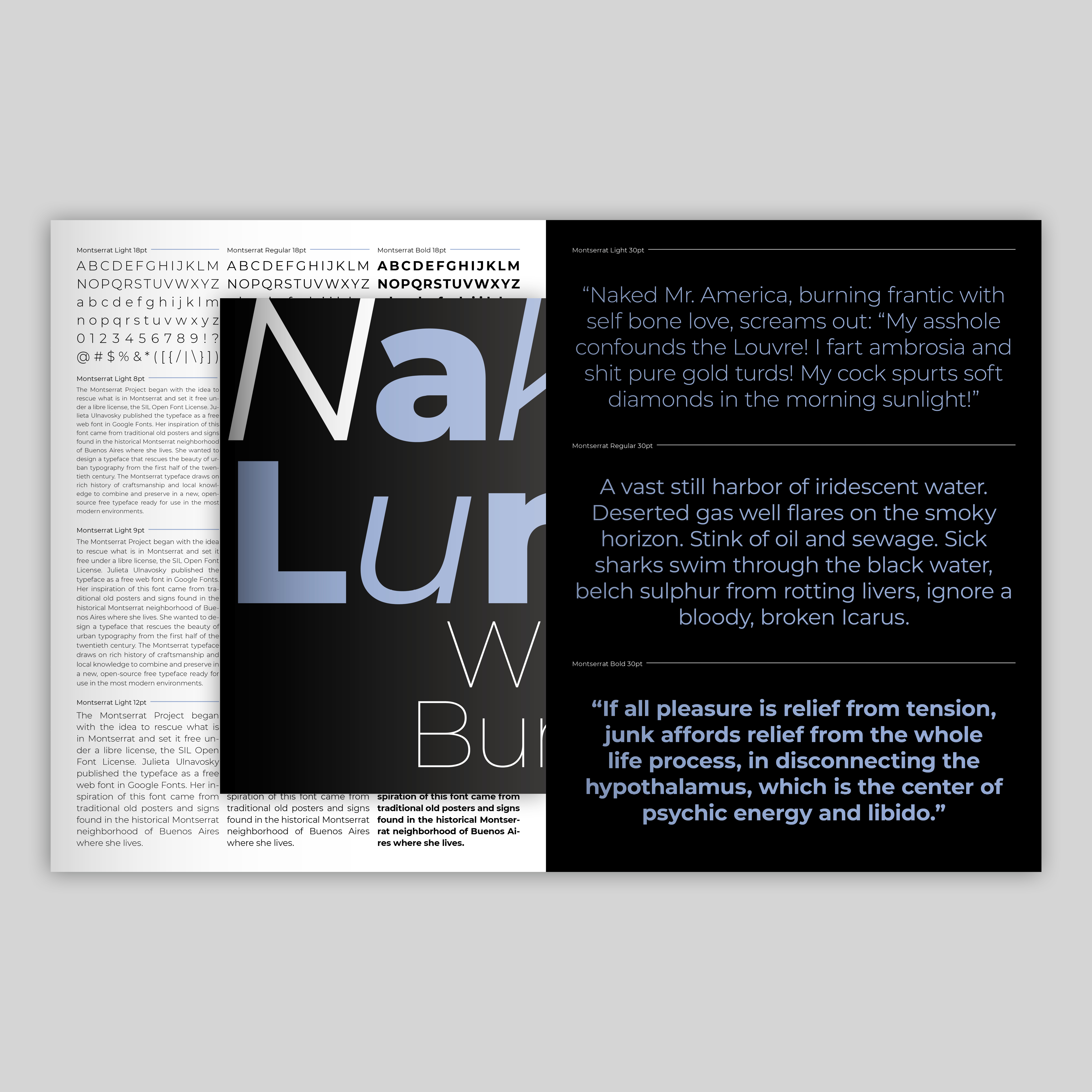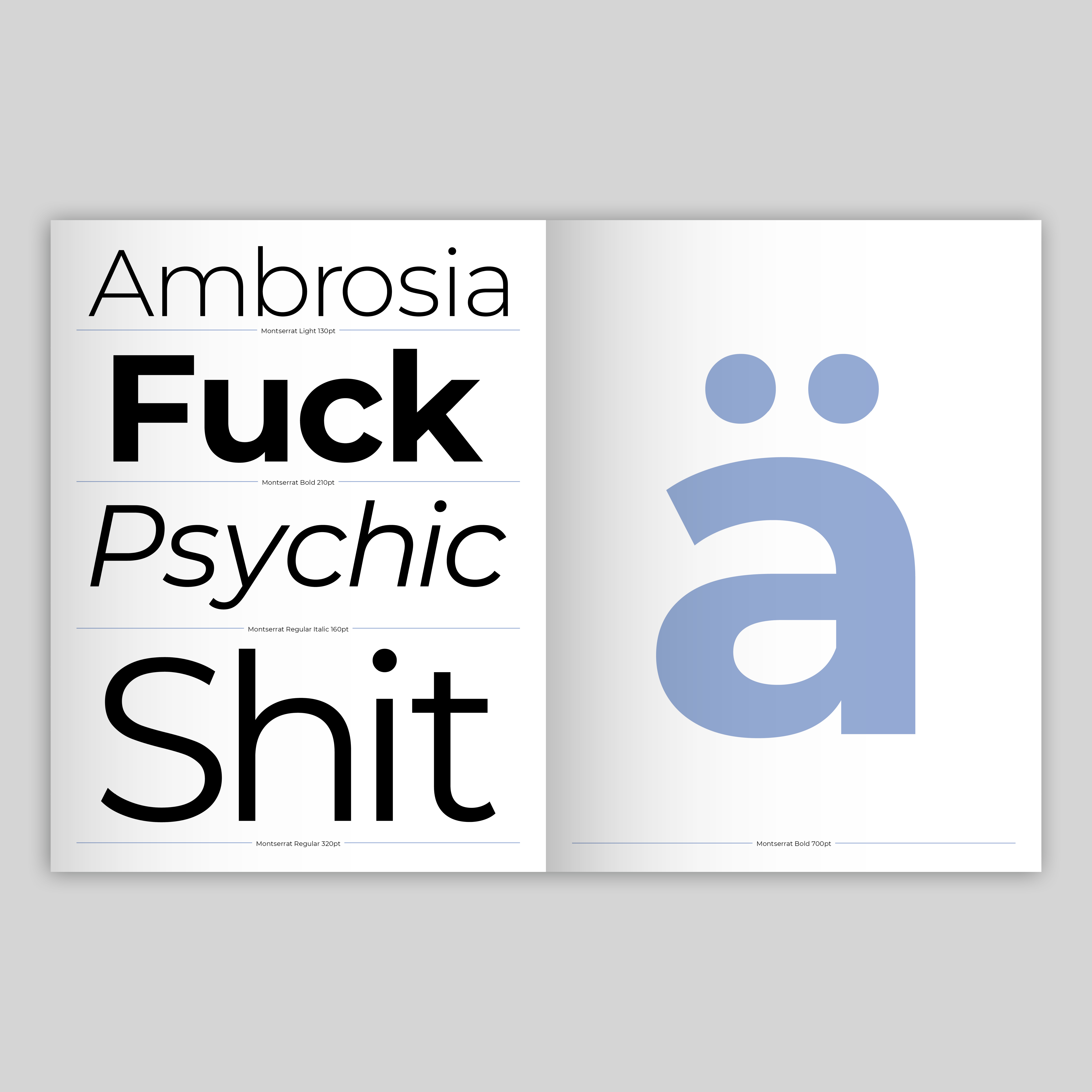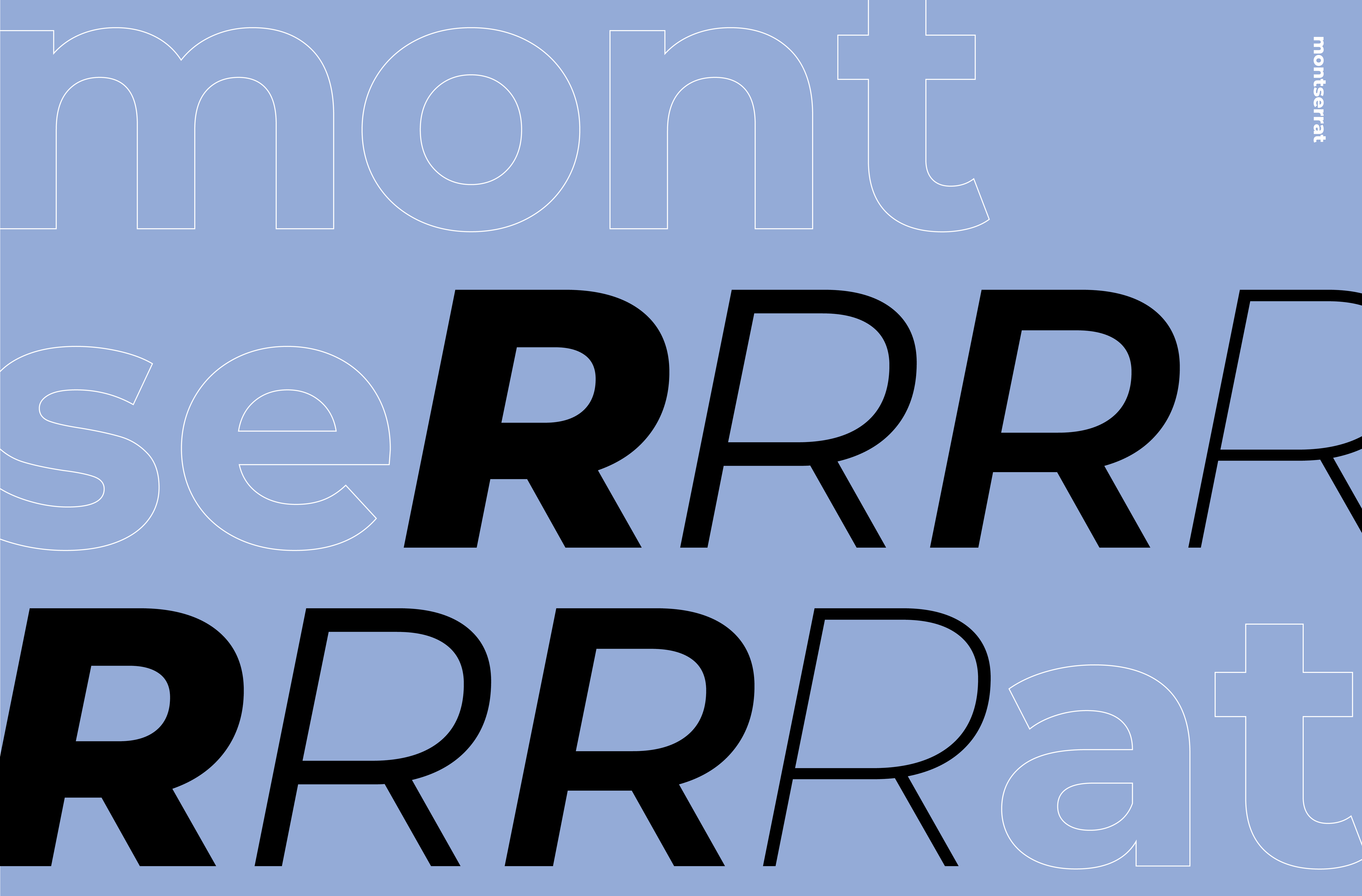 I picked a font from Google Fonts and designed a type specimen promotional booklet communicating the essential characteristics of a chosen typeface and the letterforms that reveal its unique properties. The designer, Julieta Ulanovsky made "Montserrat" inspired by the old posters and signs in the traditional Montserrat neighborhood of Buenos Aires. So For the cover of the booklet, I got inspired by how "R" is pronounced in Spanish. We can hear it sound like "Montserrrrat."