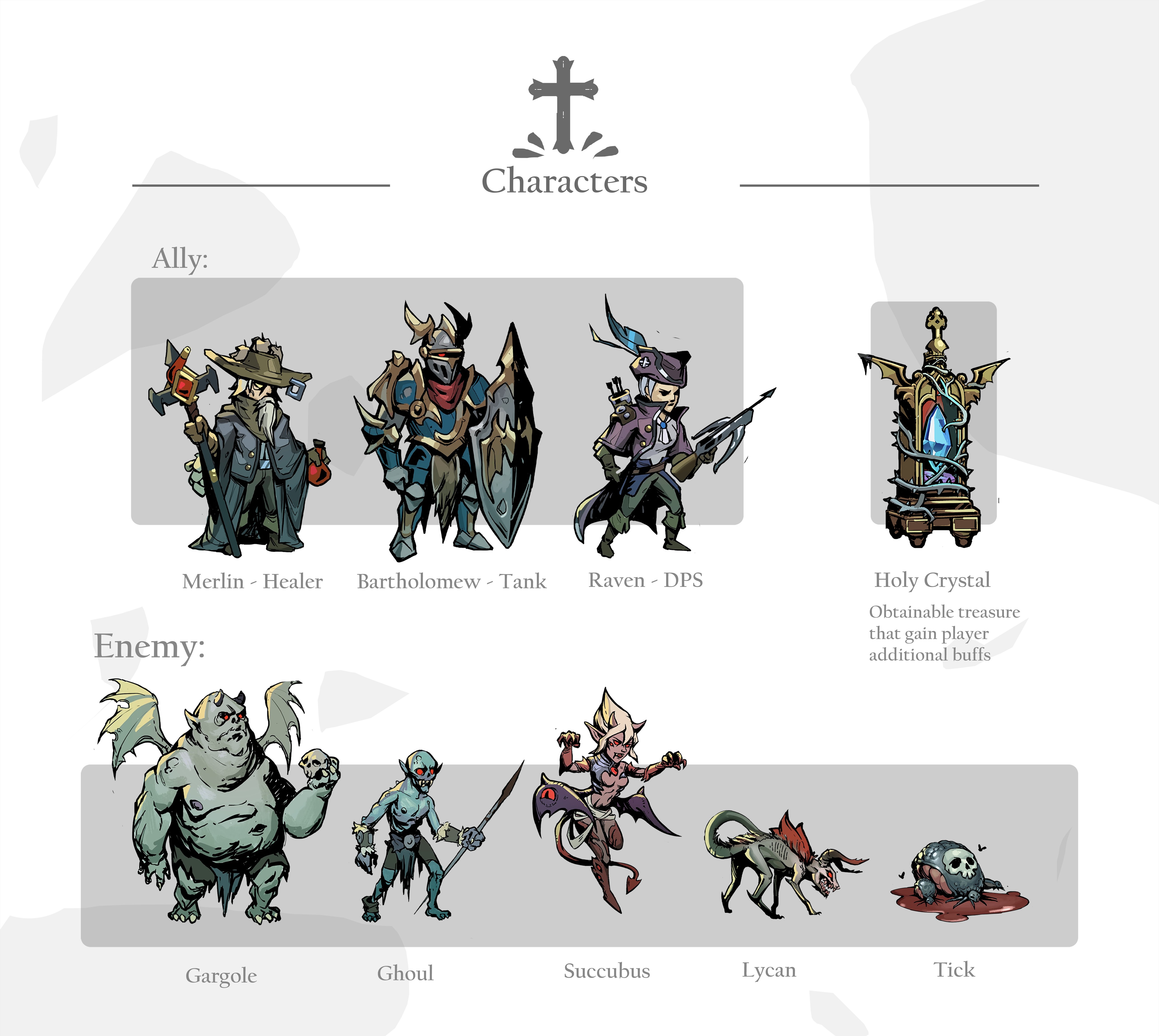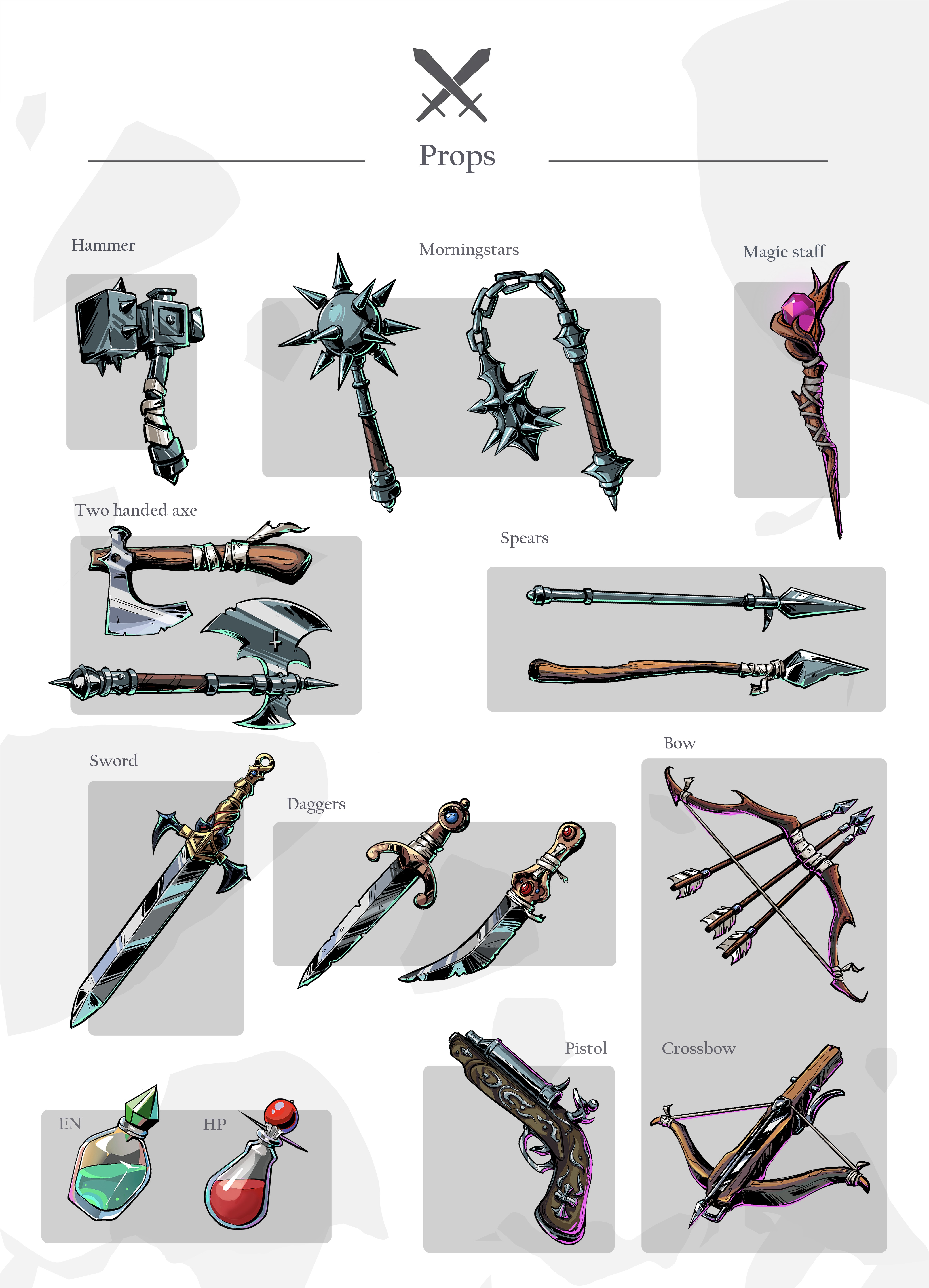 Got the opportunity to work on a board game group project with my fantastic group mates Nikita Magnitskiy, and Roxanne Ma, here are all the assests and design we worked on! I worked on the cover art, weapon designs, and some characters!
