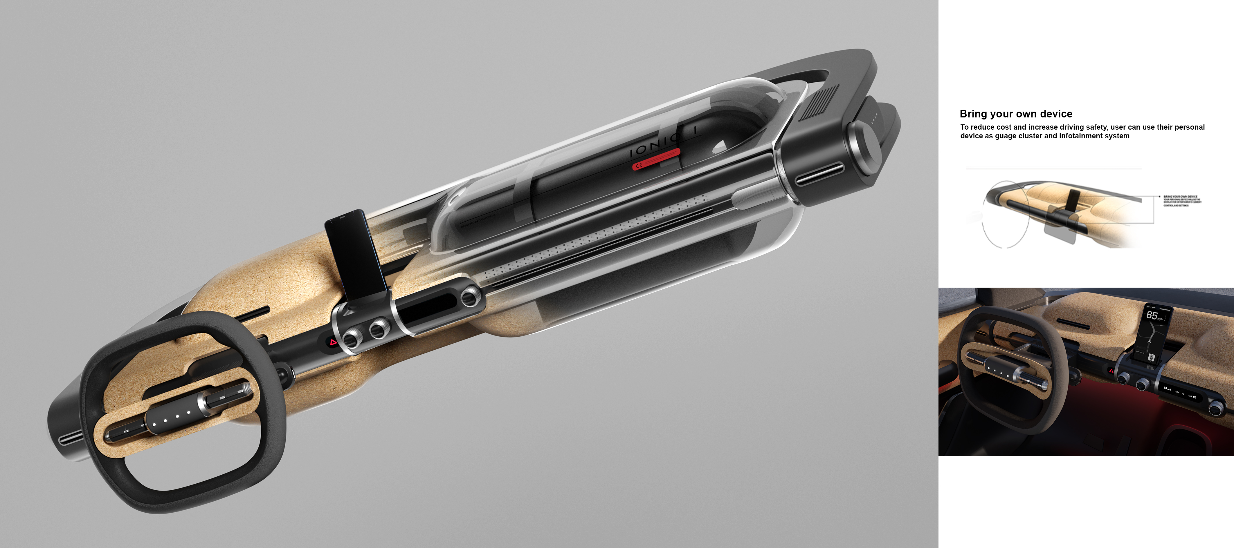 This is my personal project from my internship at Hyundai, where I reimagine the possibility of a cost effective manufacturing process that allows for the most affordable city car while embracing affordable material, design aesthetics, and maintain usability