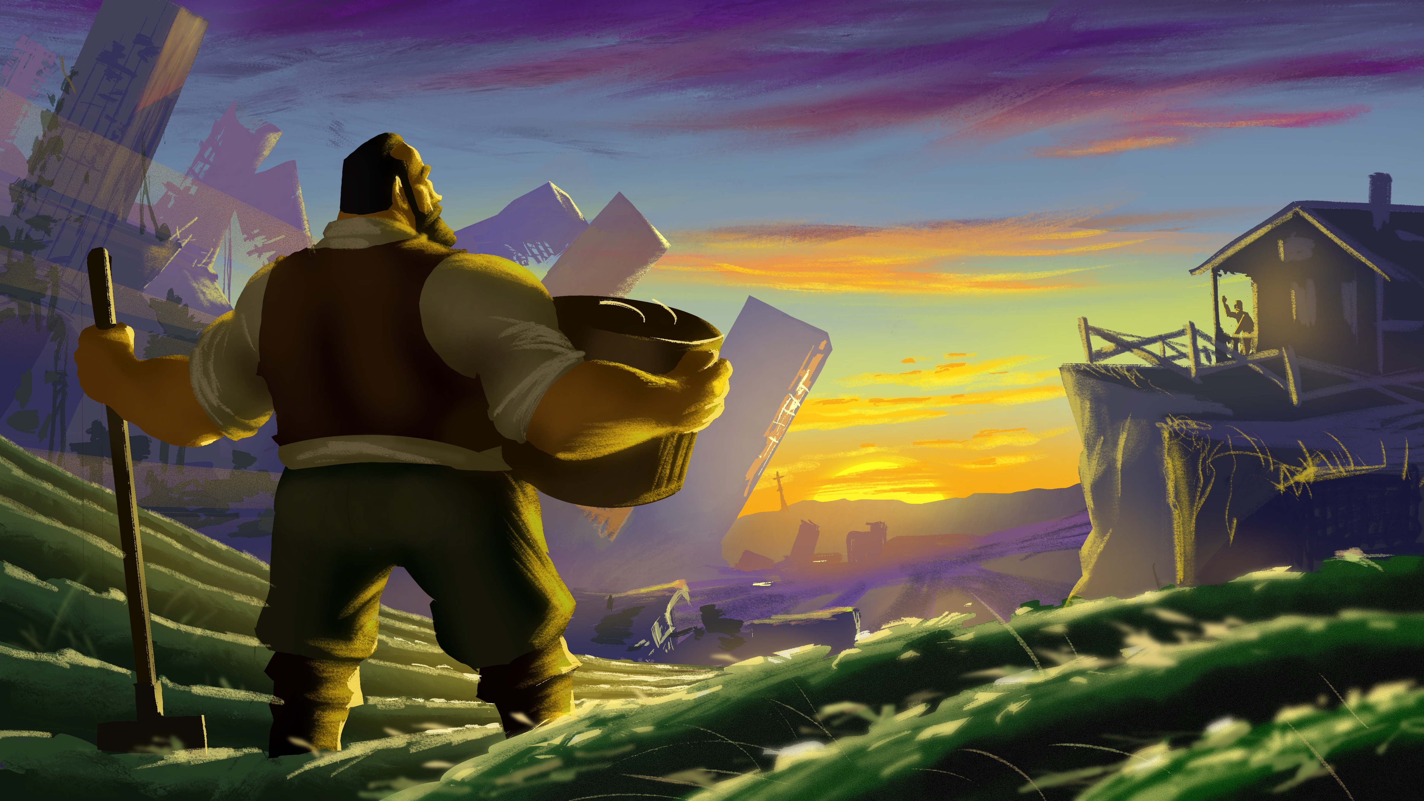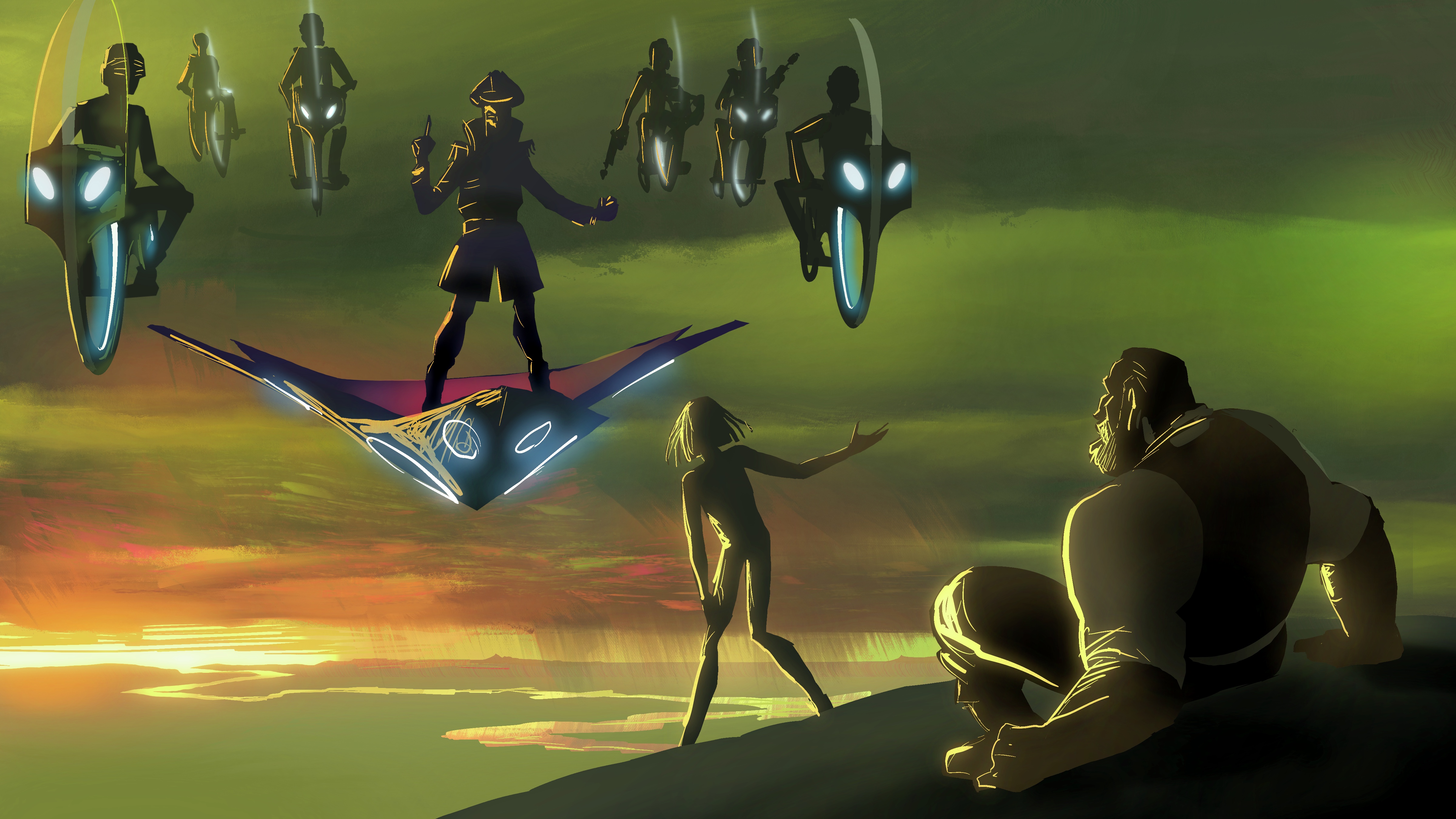 Story beat concept art for a short film set in a future utopia that arose from the ruins of civilization.