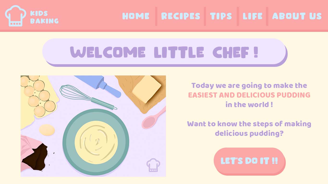 I want to make a website about "how to make the best and easiest creme brulee in the world". I draw some illustrations by myself as pictures, using colorful and light color schemes. The audience for my website is children, who may be interested in baking but can't handle desserts that are too difficult. The simple "four-step pudding" is a good choice. And the colorful and cartoon style can arouse the interest of children.