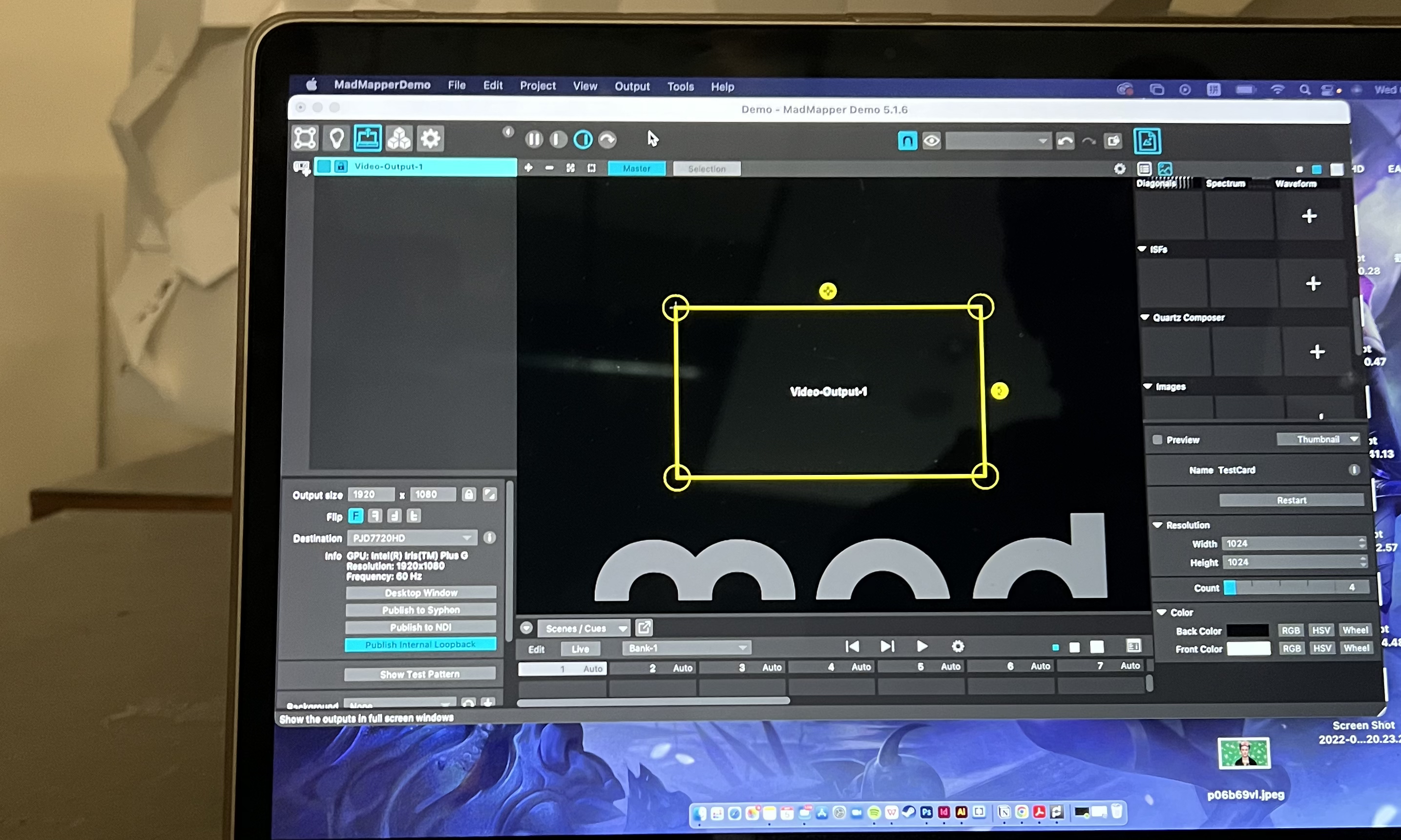 First I learned how to use the Madmapper software, which is the most basic and most important. Second I learned how to use different materials and set up the device. I know how to use motion and music to bring people a more shocking experience.