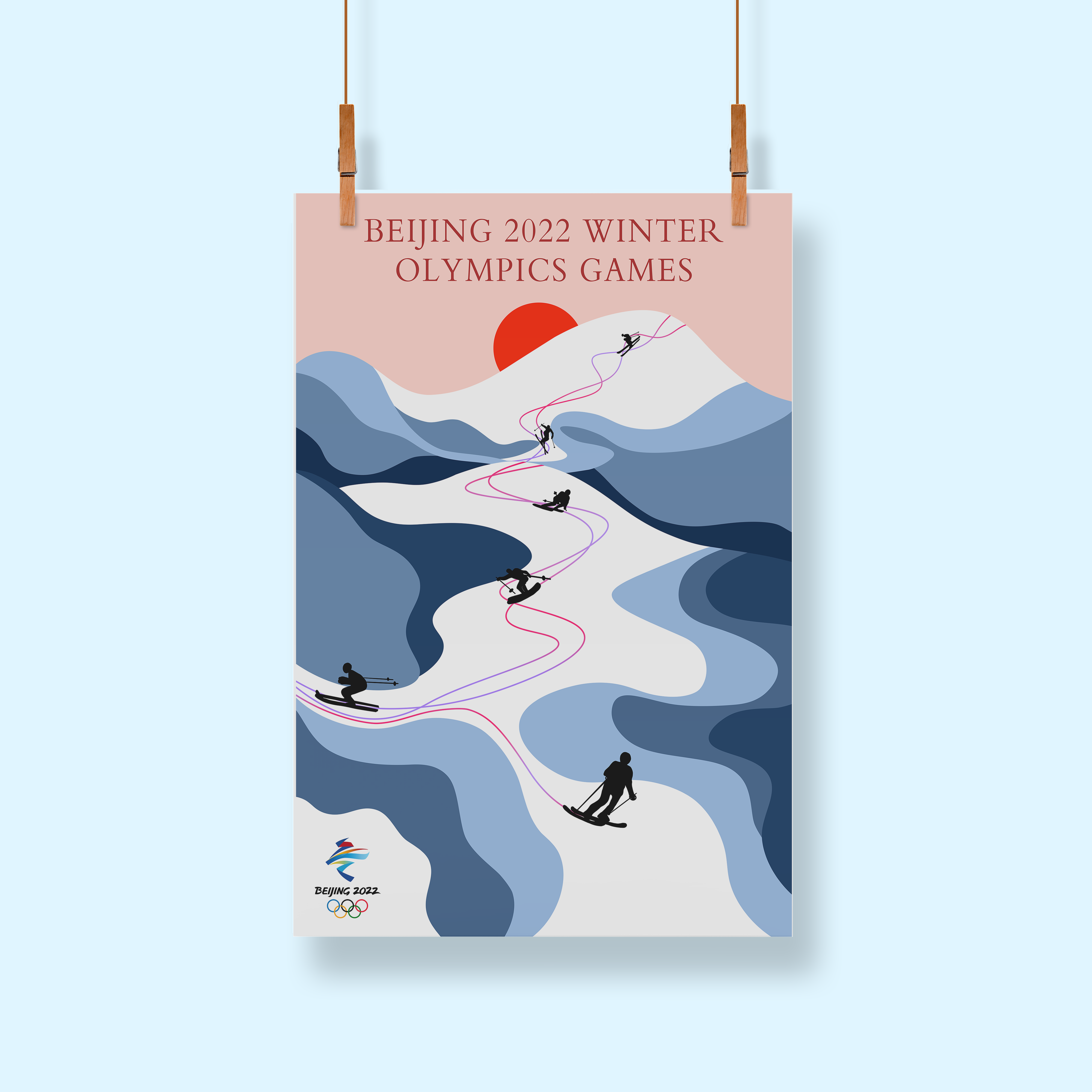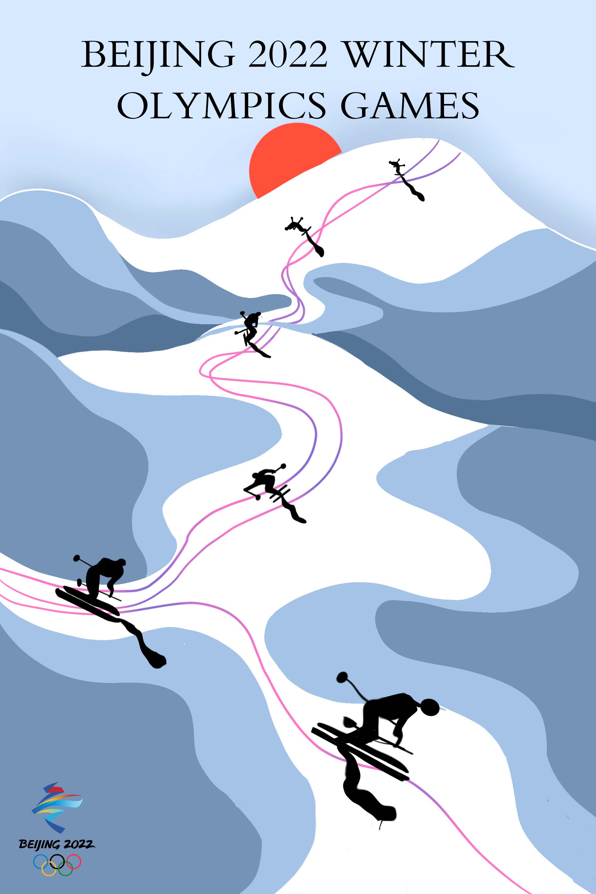 This is a poster showing the project of alpine skiing. I used overlapping peaks, ski trails, and people at different stages to show the stance and emotions of the runners at different stages of alpine skiing.