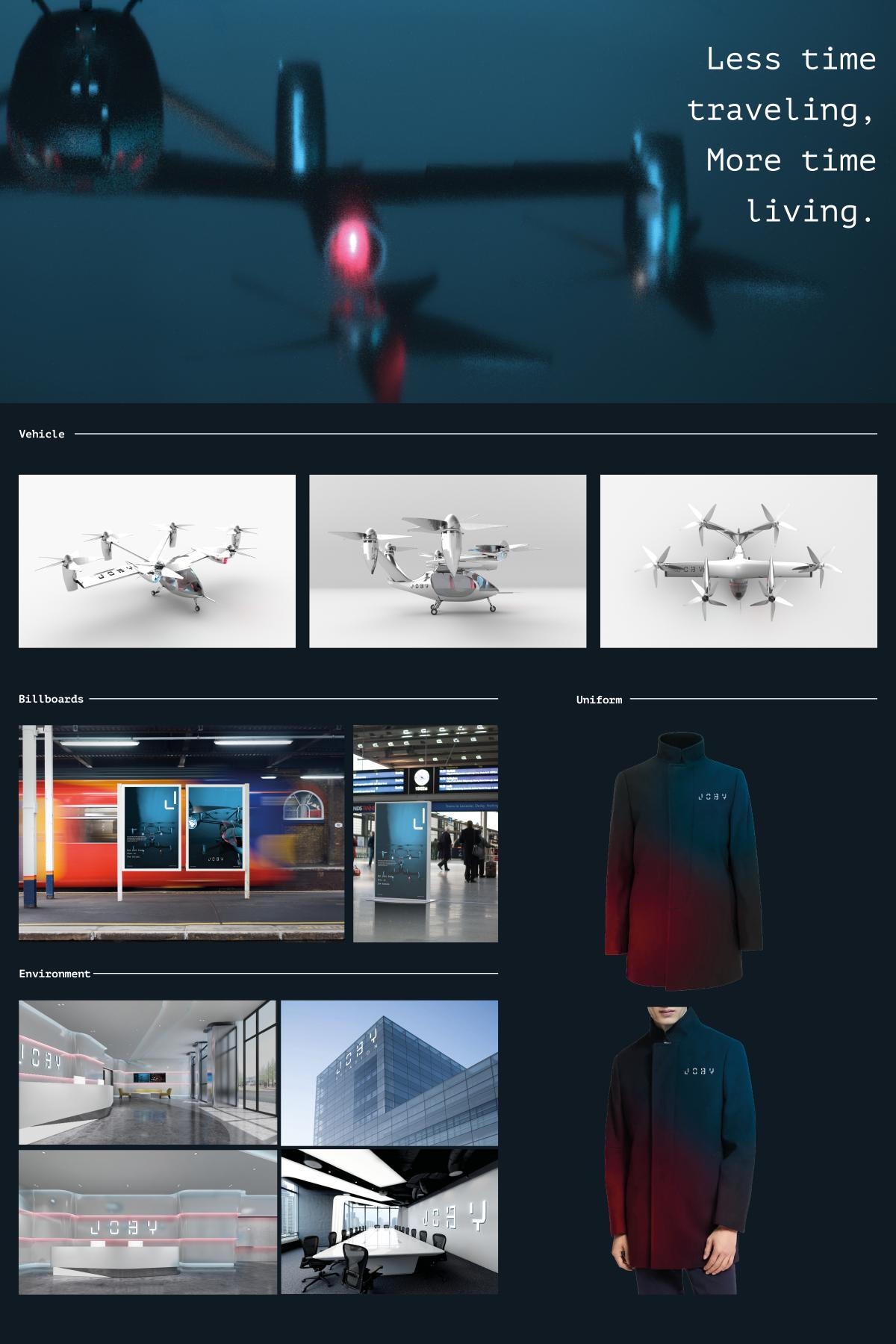 This is a rebranding for Joby Aviation's brand identity and visual system. The new identity system is focused on youth user and a city lifestyle.