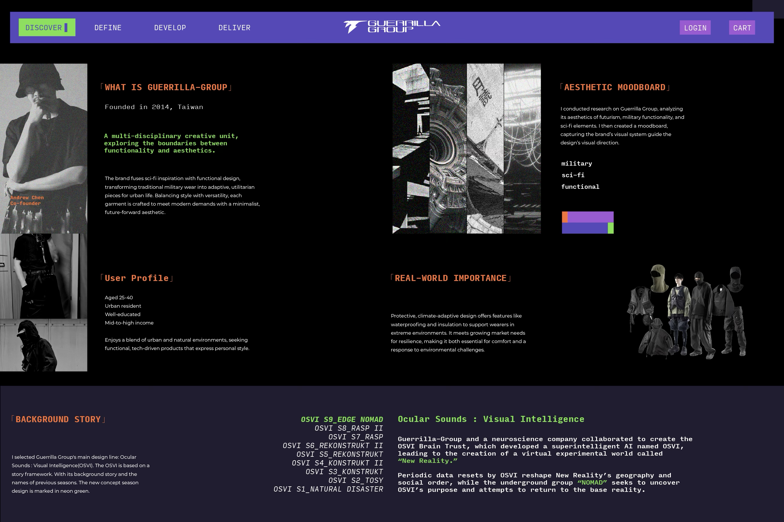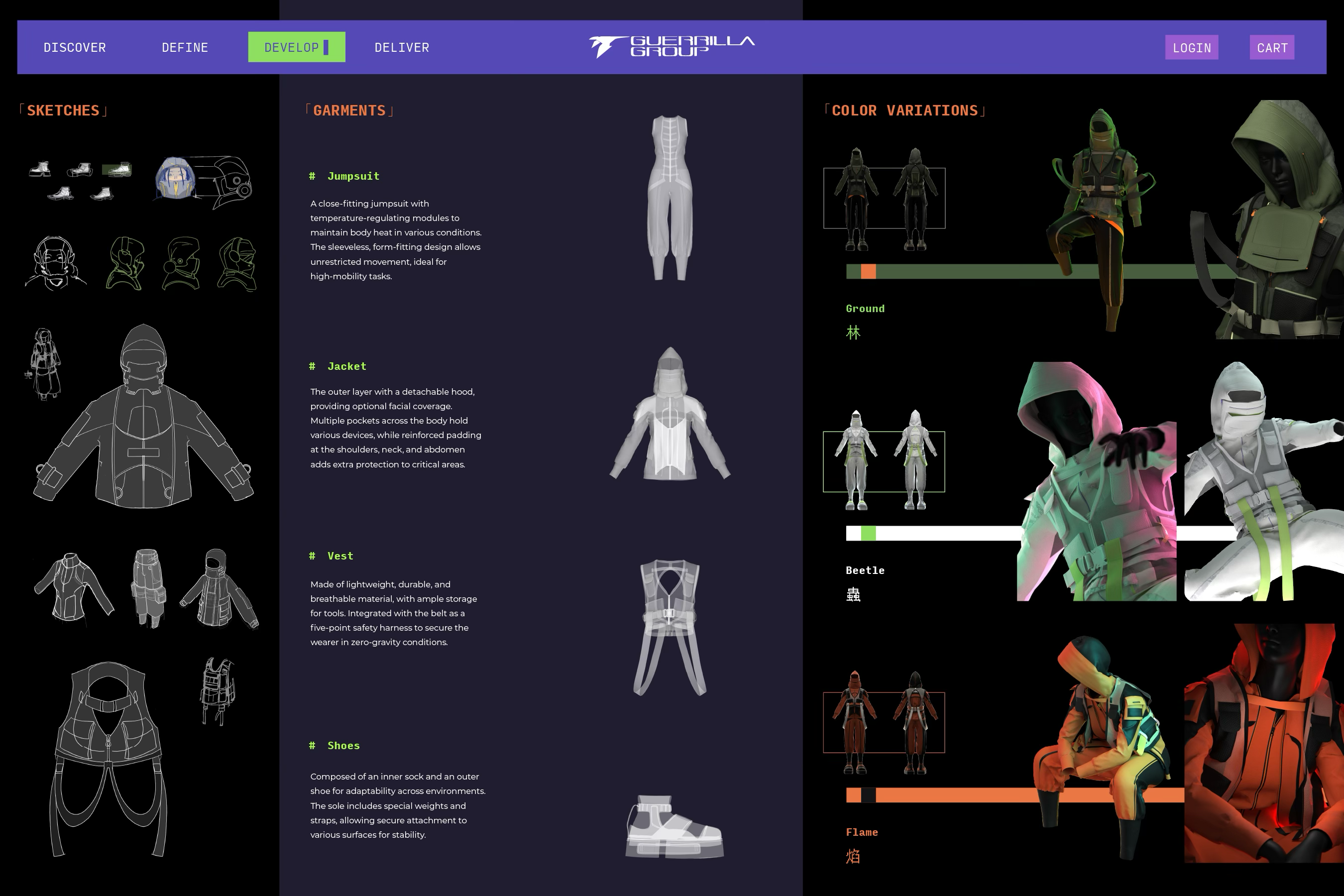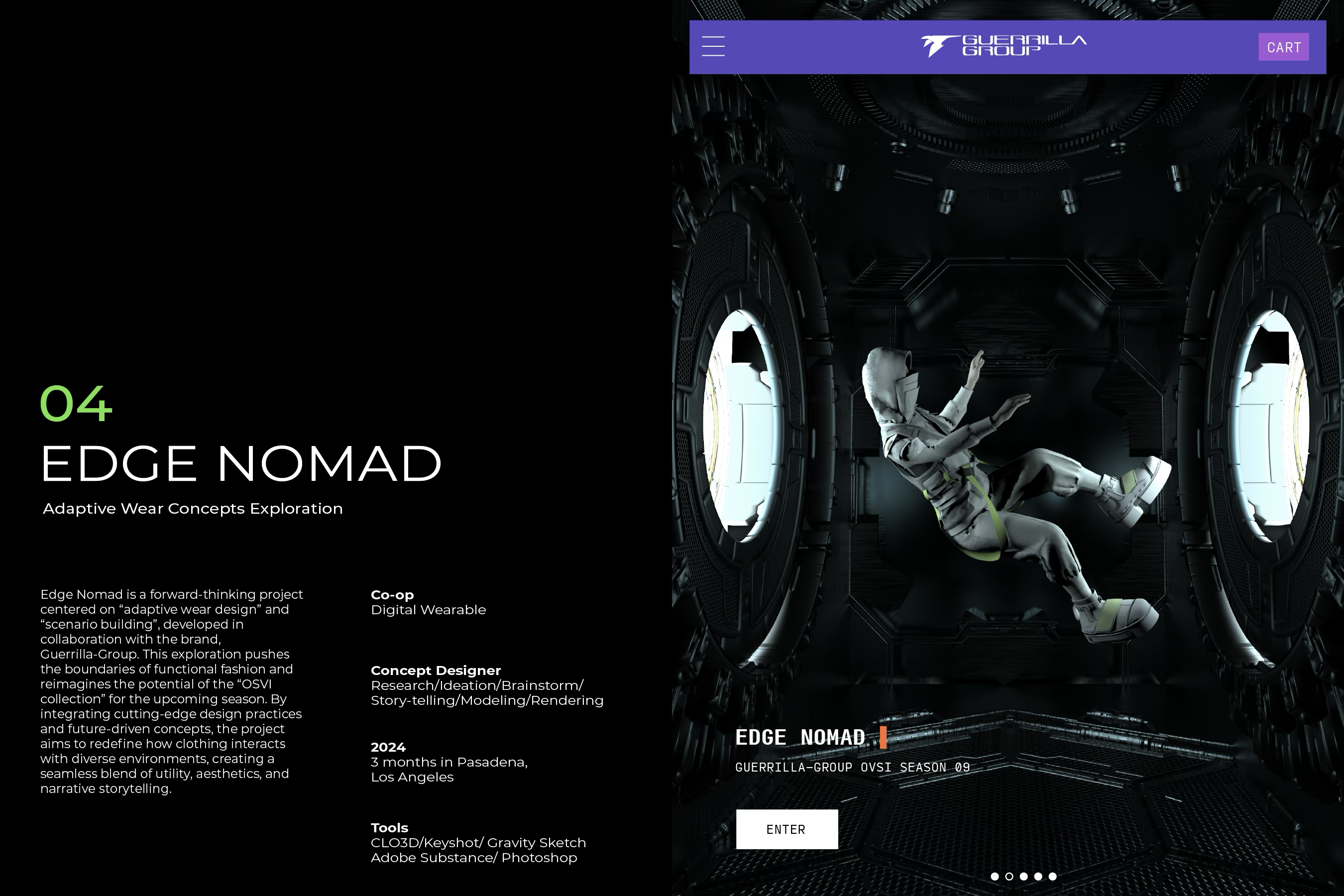 Edge Nomad explores adaptive wear through future-driven scenarios, developed with Guerrilla-Group. The project reimagines tactical fashion as a narrative system that responds to extreme and shifting environments. By combining speculative thinking with 3D prototyping, it blends utility, aesthetics, and storytelling into wearable concepts for the OSVI collection.
