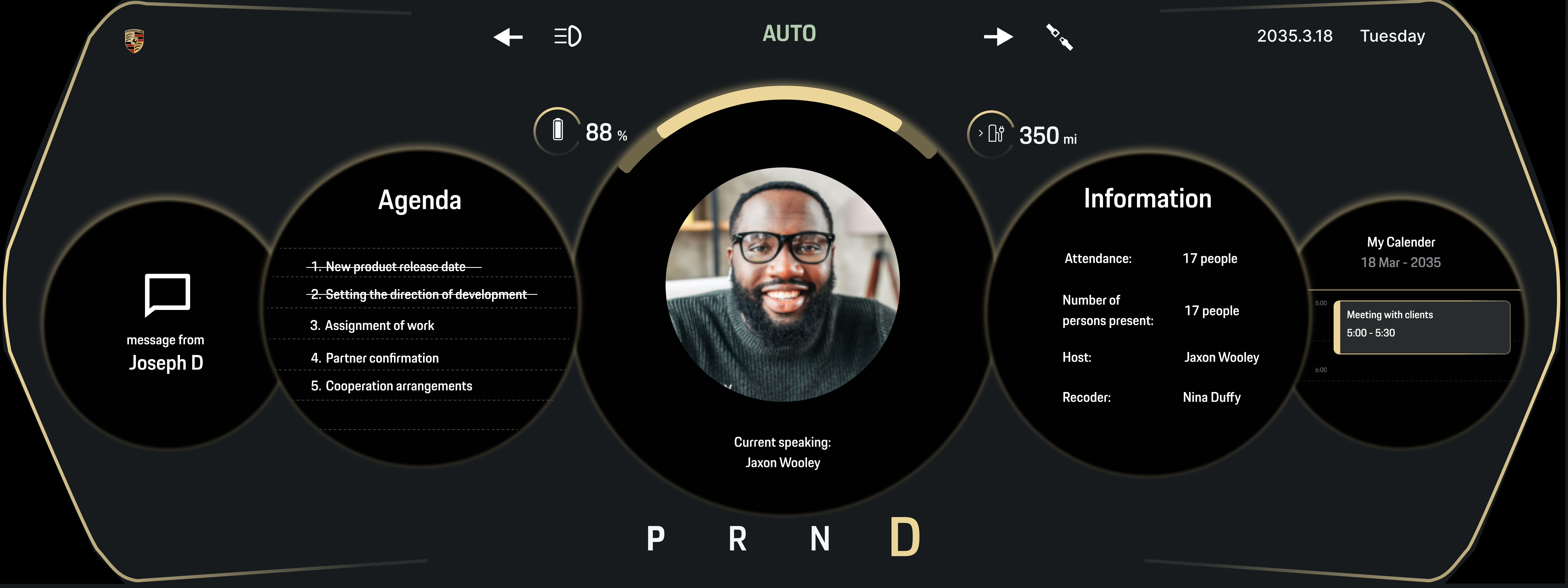 In small groups, we explored how Porsche’s technological advancements will redefine user convenience by 2035. Our vision is to infuse the Porsche racing spirit into everyday experiences—creating a future where technology fosters a deeper, more personal connection between people and the brand.