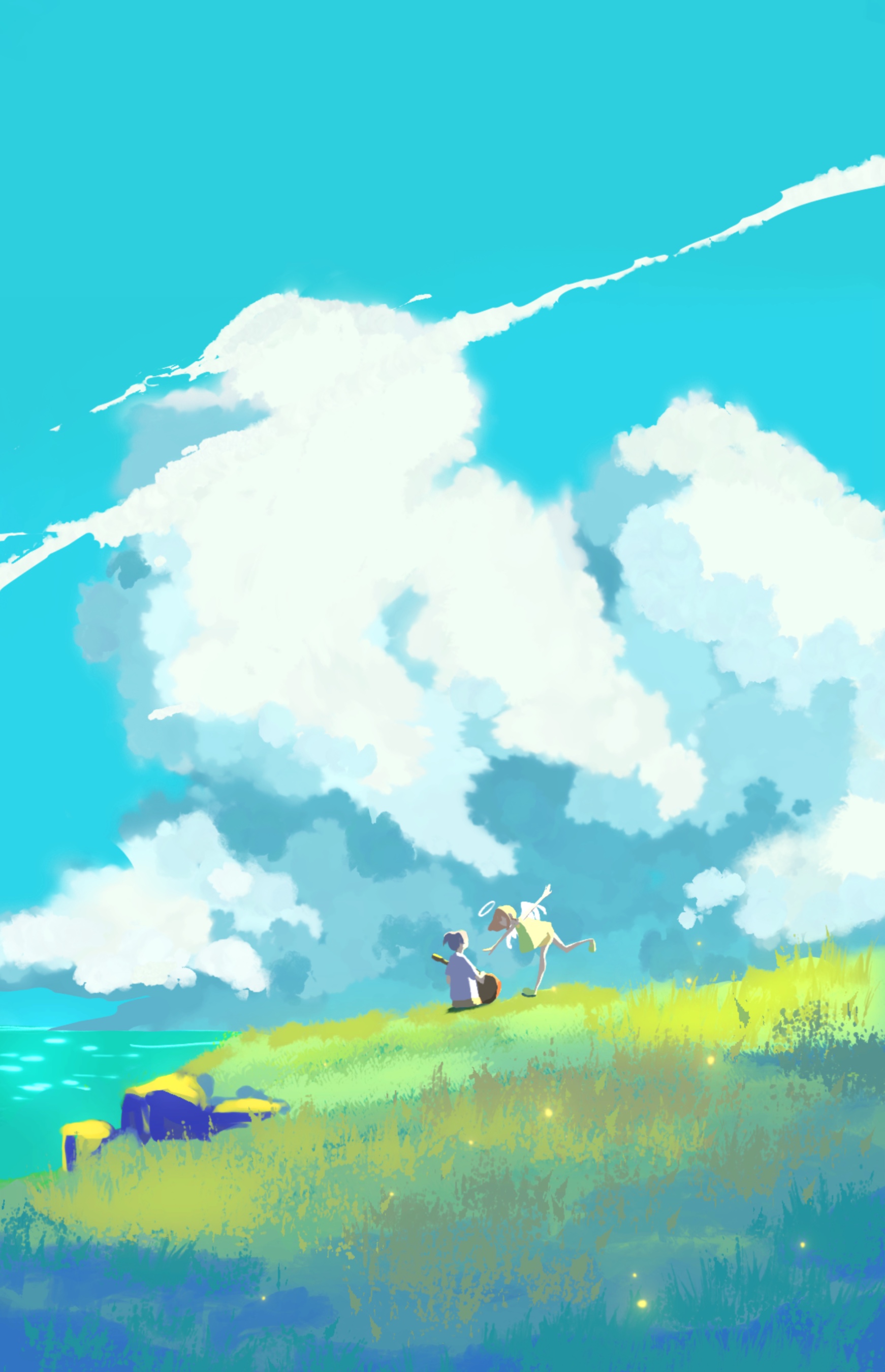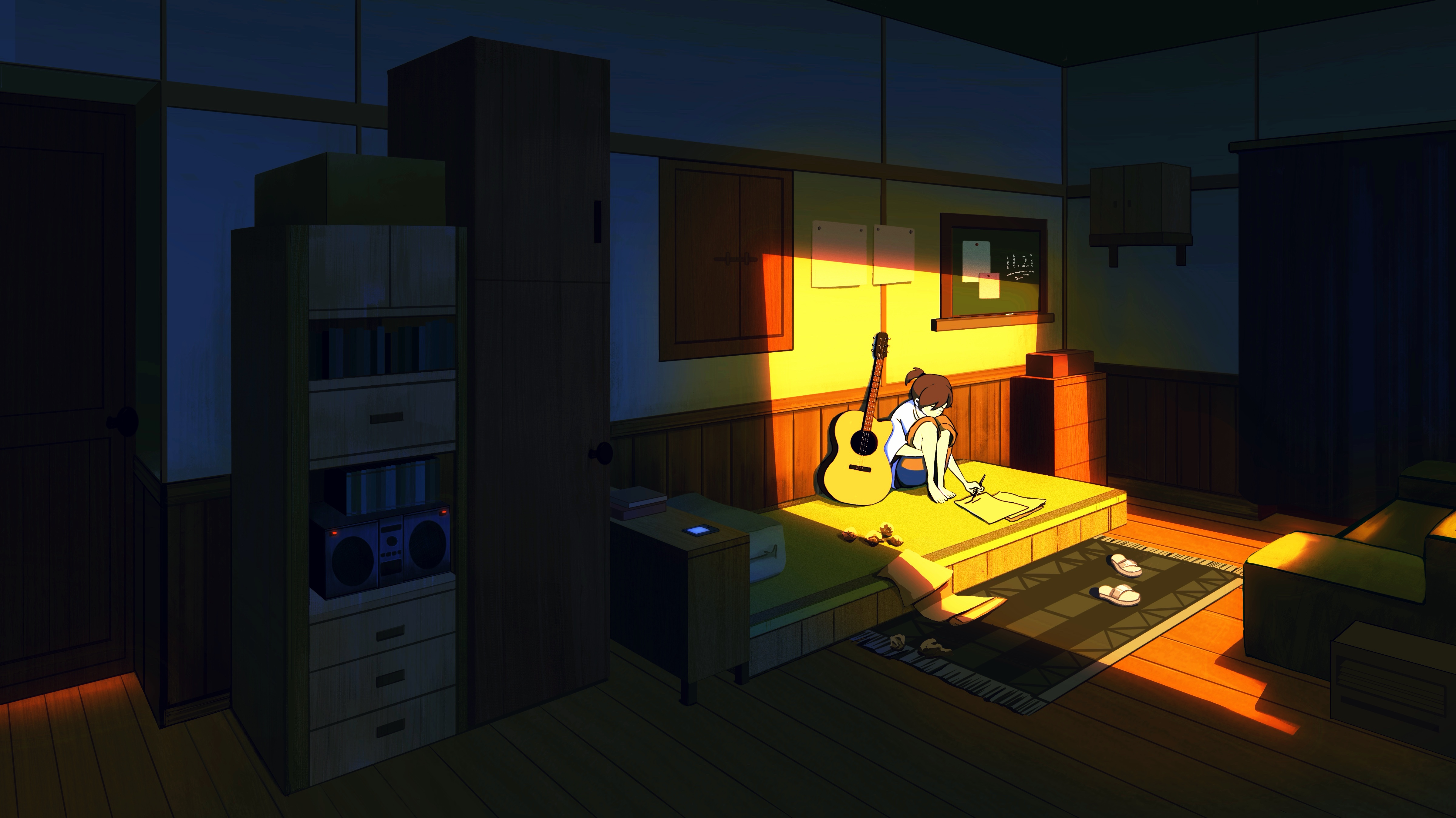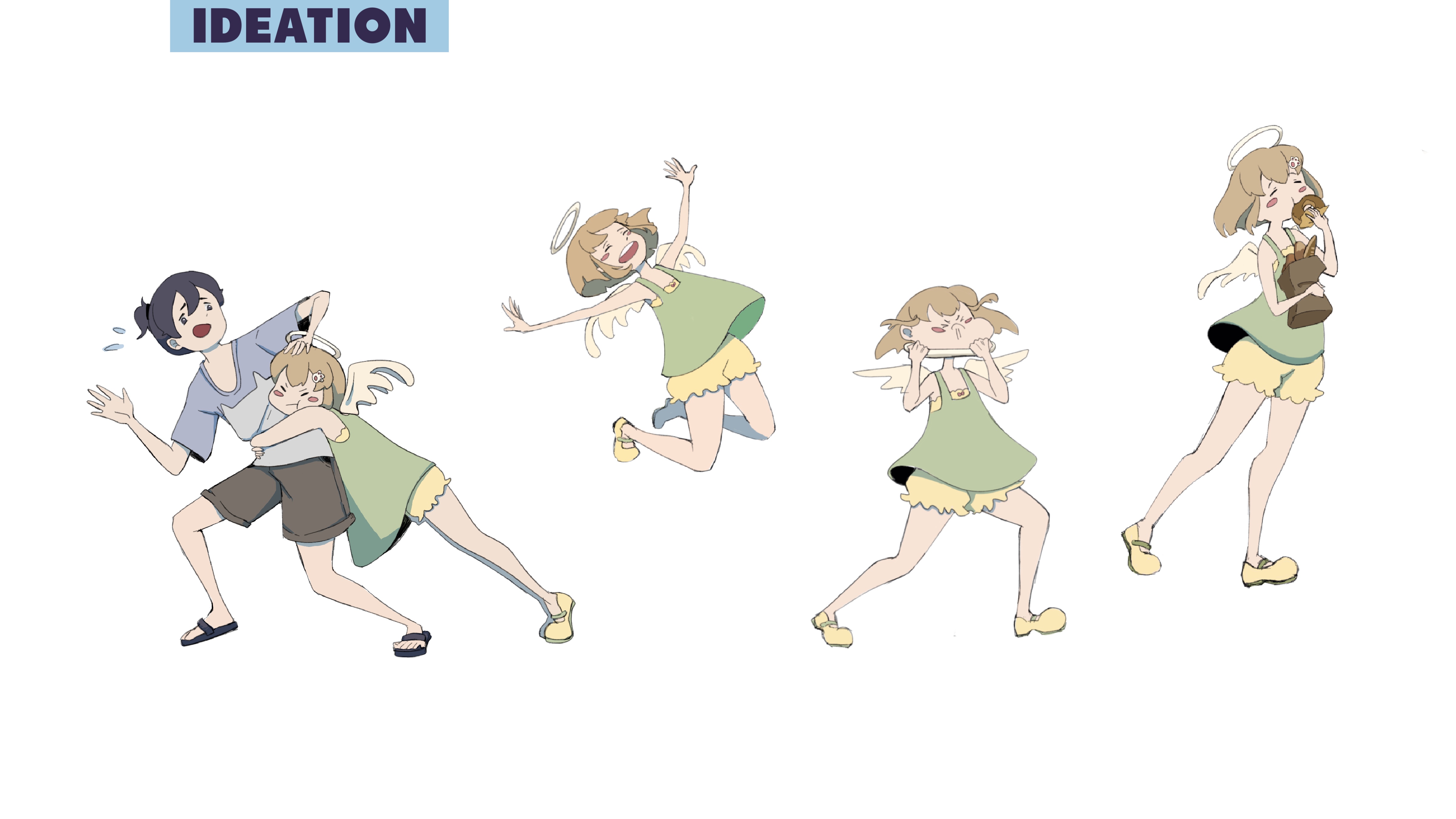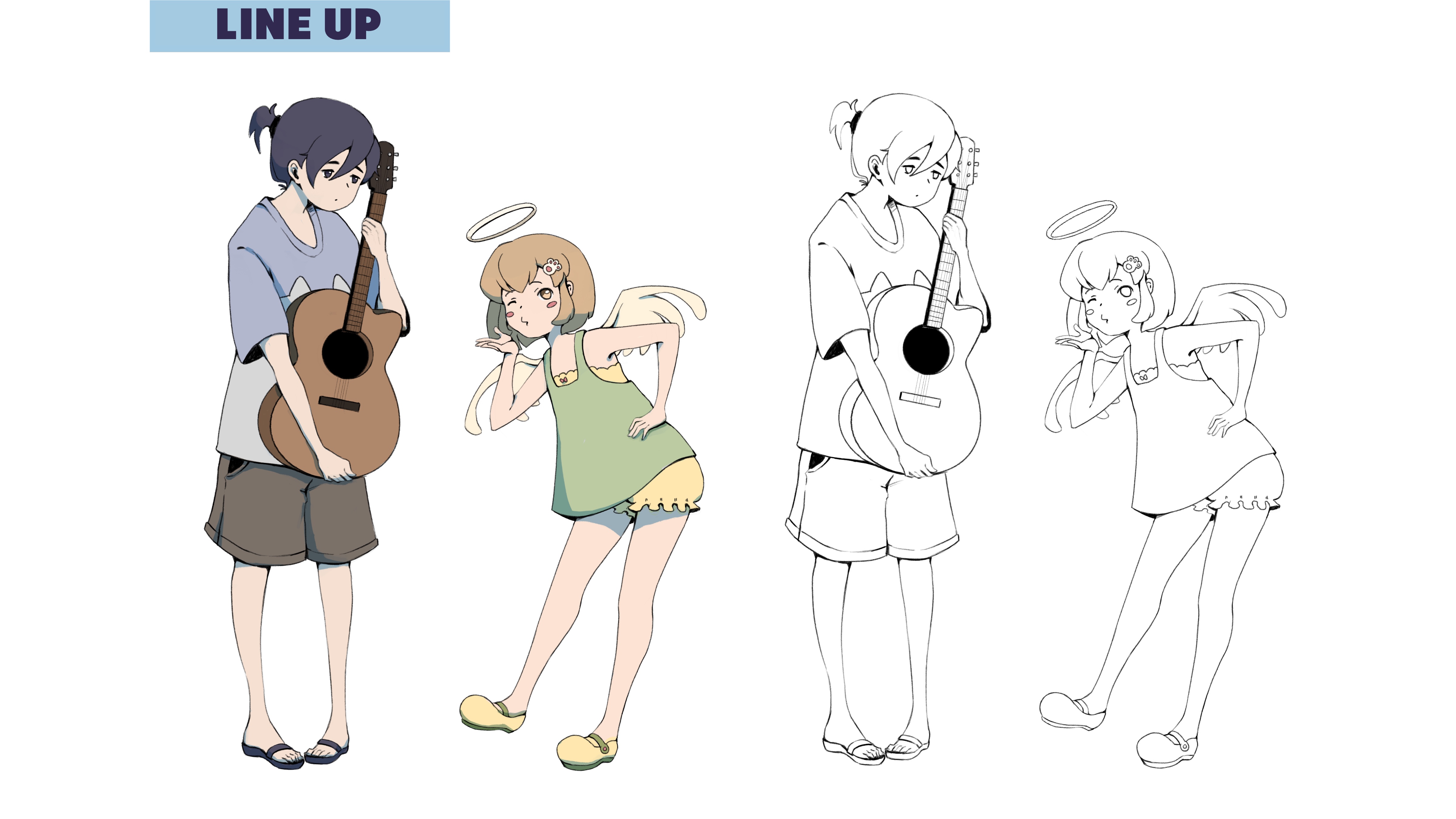 One story I created with a healing theme: A shy, lonely girl is guided by a lively angel who helps her step out of the darkness and bravely follow her dream of playing guitar.