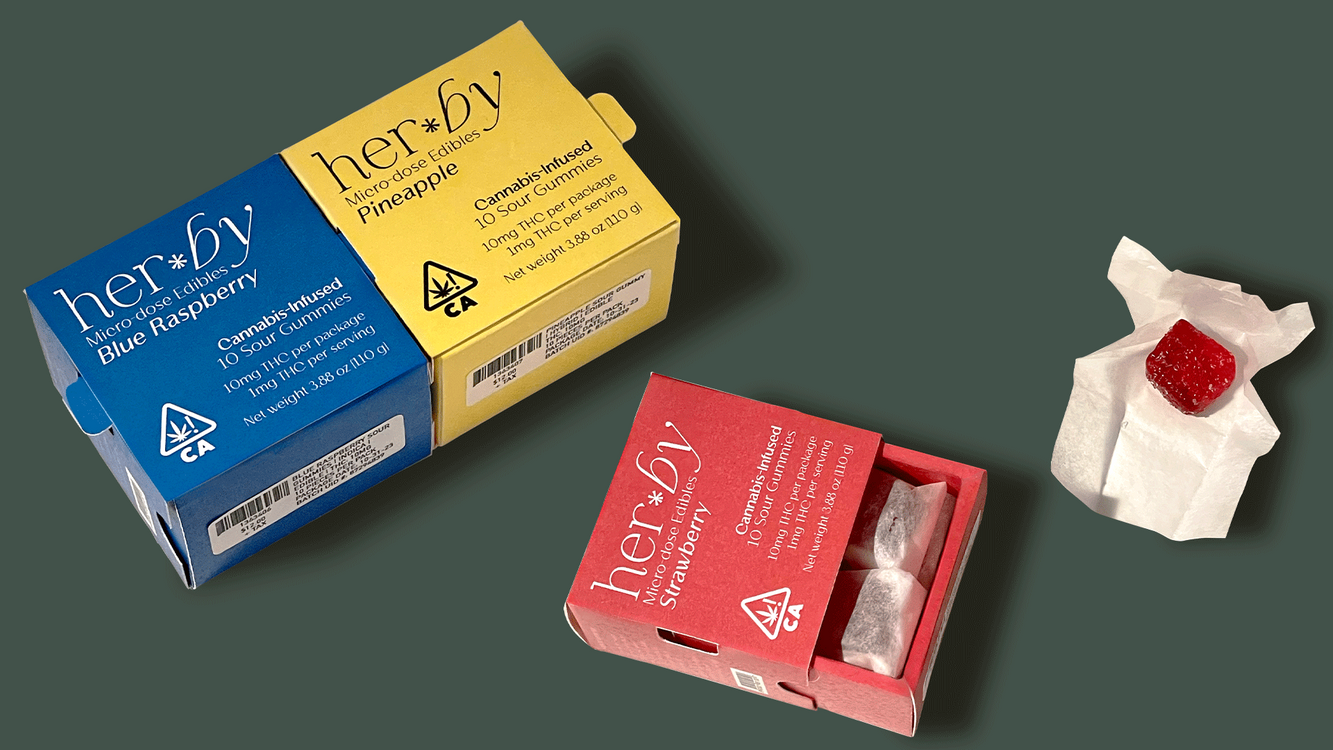 A cannabis-infused edible brand her*by, founded by a female entrepreneur, offers a range of micro-dose edibles for enhanced functionality and a mild, relaxing experience, with minimal side effects.