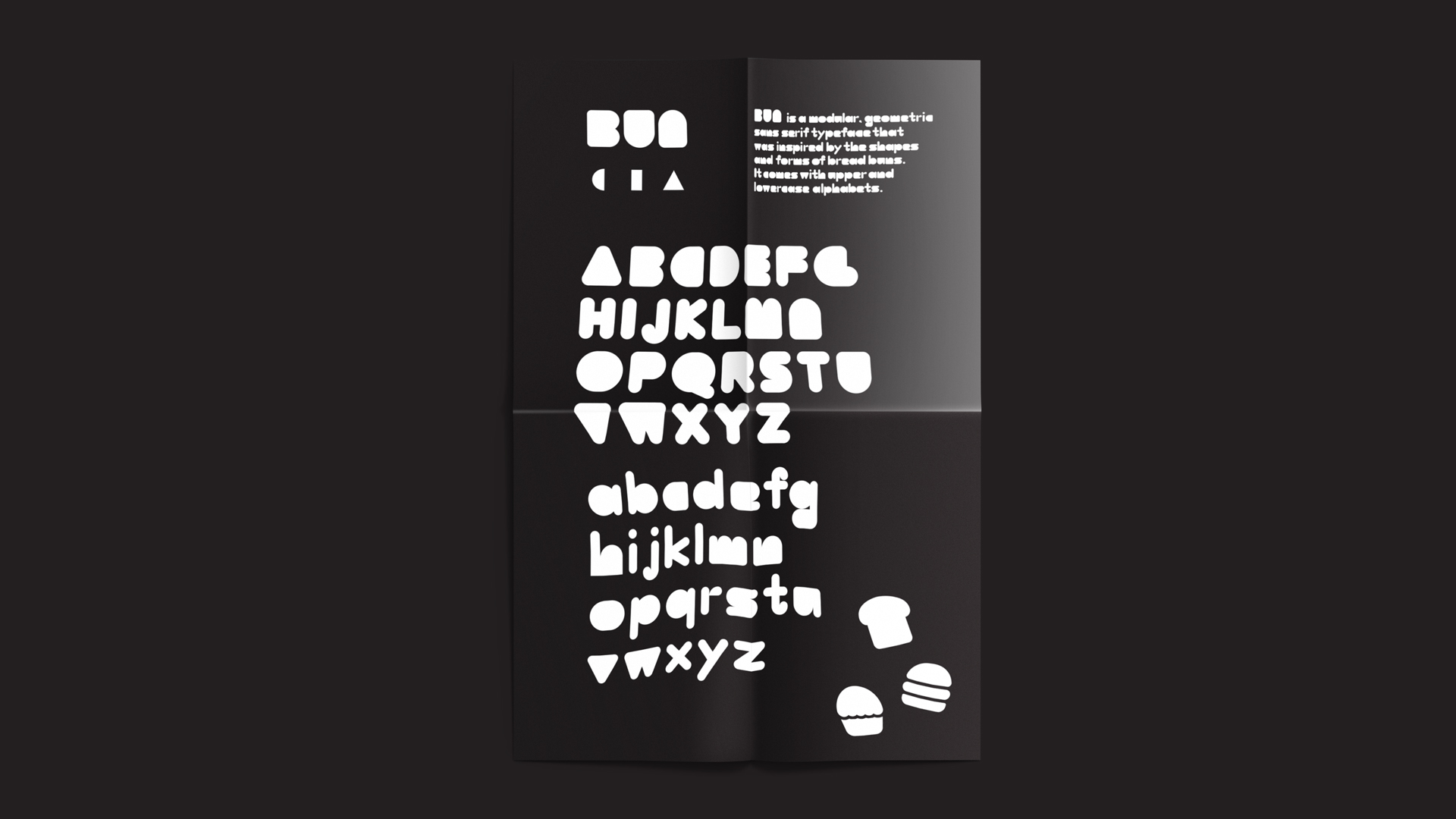 I was assigned to design a basic uppercase and lowercase alphabet (A–Z, a–z) using modules built from the primary forms (●, ▲, ■) and combinations thereof. My ideation began by building a modular concept design typeface named BUN, as it is inspired by the shapes and forms of bread buns.