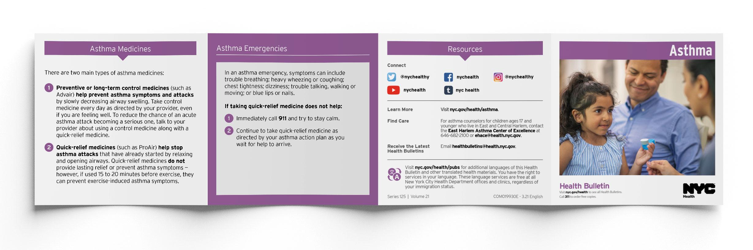I was assigned to create the health bulletin for NYC Department of Health. The Health Bulletin includes information guides and factsheets geared towards the general public and health providers. Also, Users with access to online publications are available from the NYC Department of Health and Mental Hygiene.