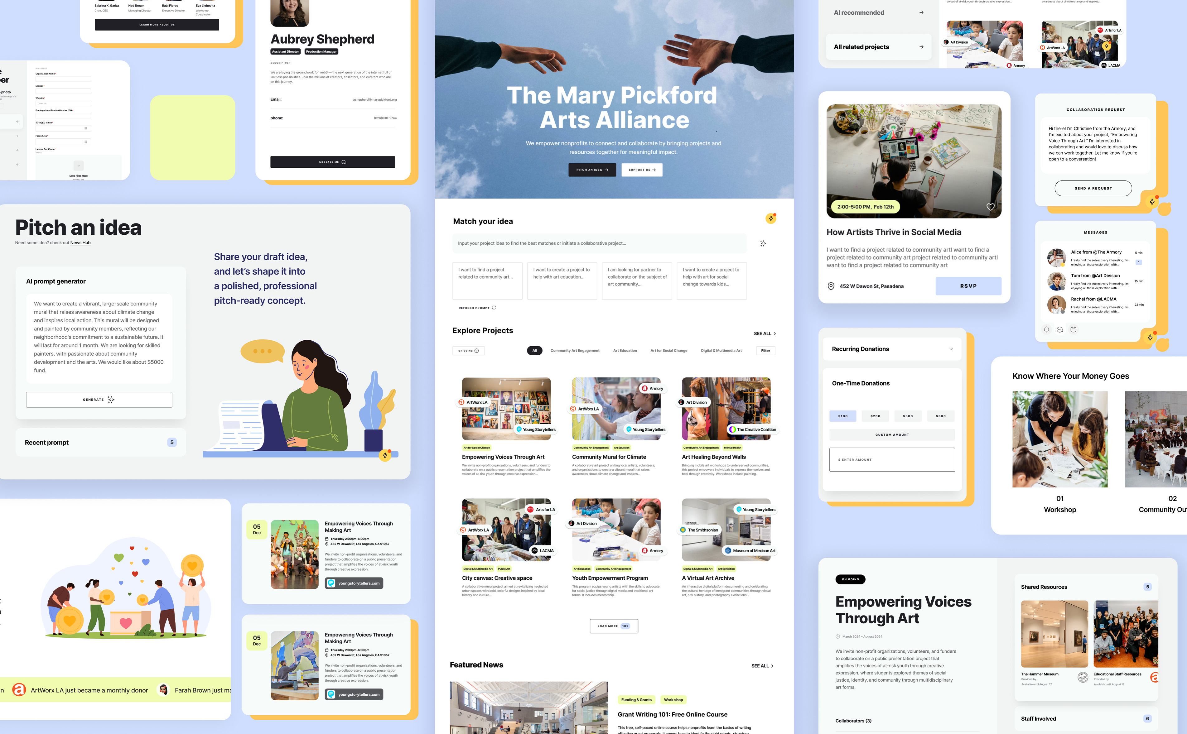 We designed a unified platform for The Art Consortium LA to foster collaboration among non-profits and connect them in bringing impactful projects to life. This initiative aims to strengthen Los Angeles’ art community by empowering organizations to learn, grow, and amplify their impact, while cultivating a sustainable, long-term network for collective success. This project was a group collaboration with Sabrina Chen and Victoria Ren.