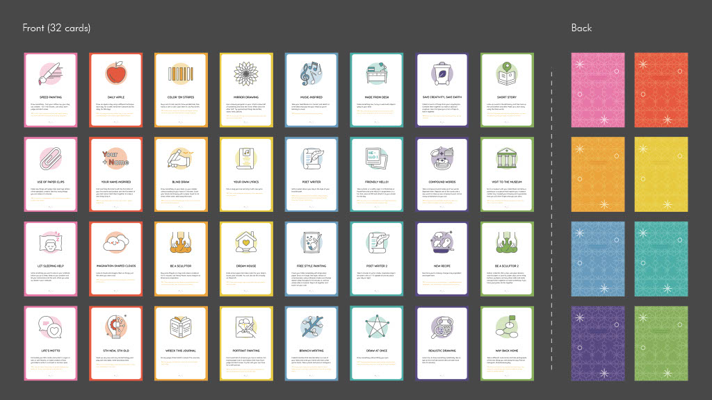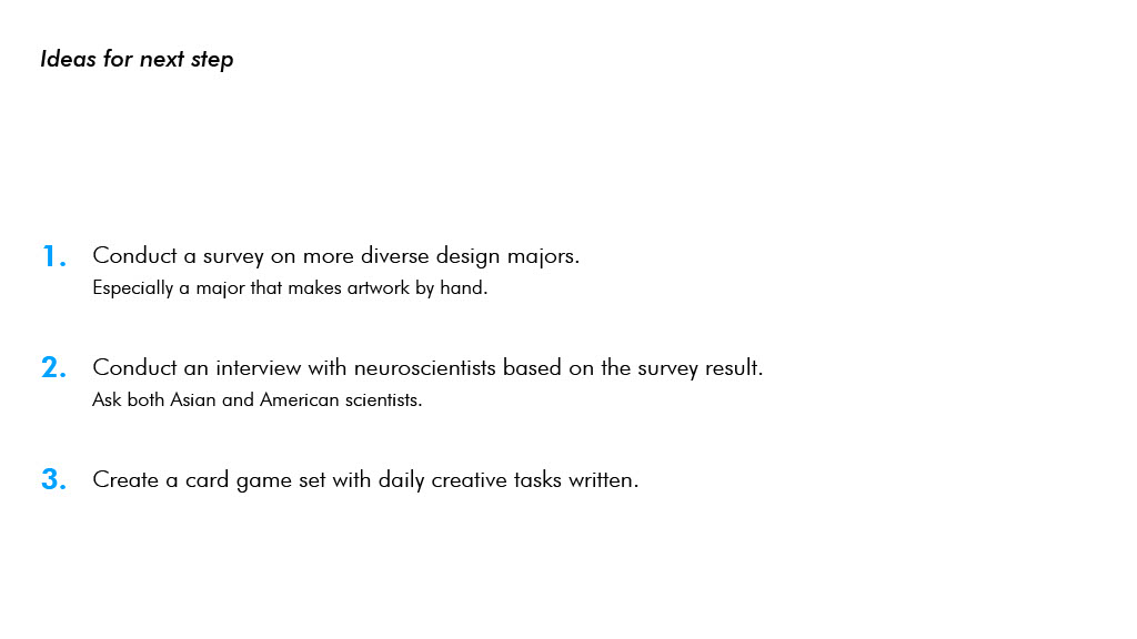 I've always been interested in neuroscience and its relation to creativity. So the hypothesis I set up for my final was 'our brain can gain creativity by effort'. And based on the research and survey, I created a deck of cards that will challenge users to 32 days of creativity training. There is space to write down the date and keep track of which creativity card they solved and when. Programs used: Adobe Photoshop, Adobe Illustrator (Class: Neurons Sparking) (2021 Spring: Term 3)