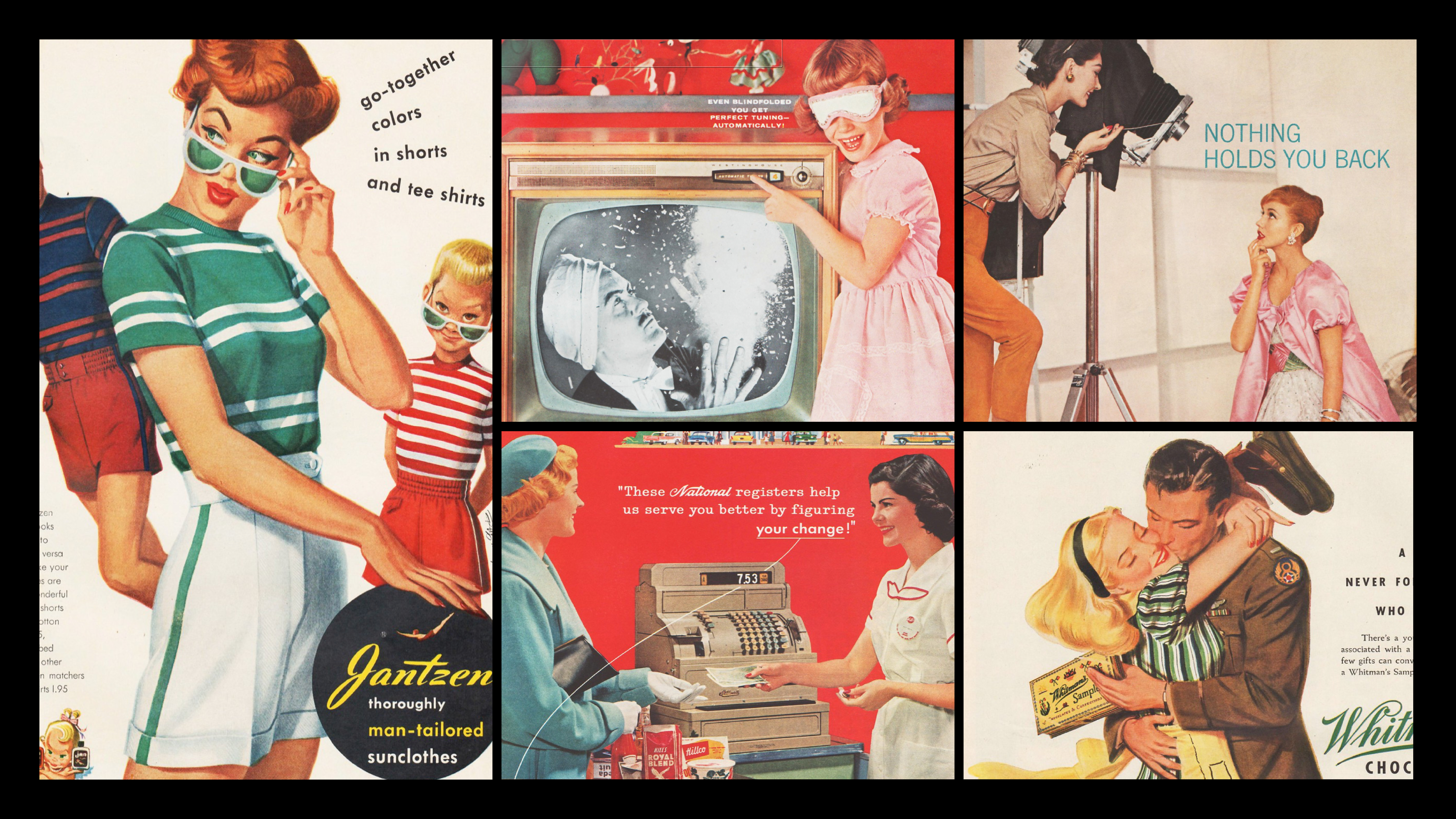 These are some photos that I used for my digital collage. I used the photographs of the vintage advertisement from 1930 to 1960; these advertisements introduce so many bias and inappropriate ideas that was normal back then. These advertisements were used to shape people's perception and perspective in a certain way which connects to the theme of brainwashing through media which was present in the time of Situationist International was active. By cutting away the characters from these advertisements, I can bring and give these characters a new characteristic that introduces the future of the music experience. The meaning of the image that was used for brainwashing can change into a character that focuses on the theme of music experience.