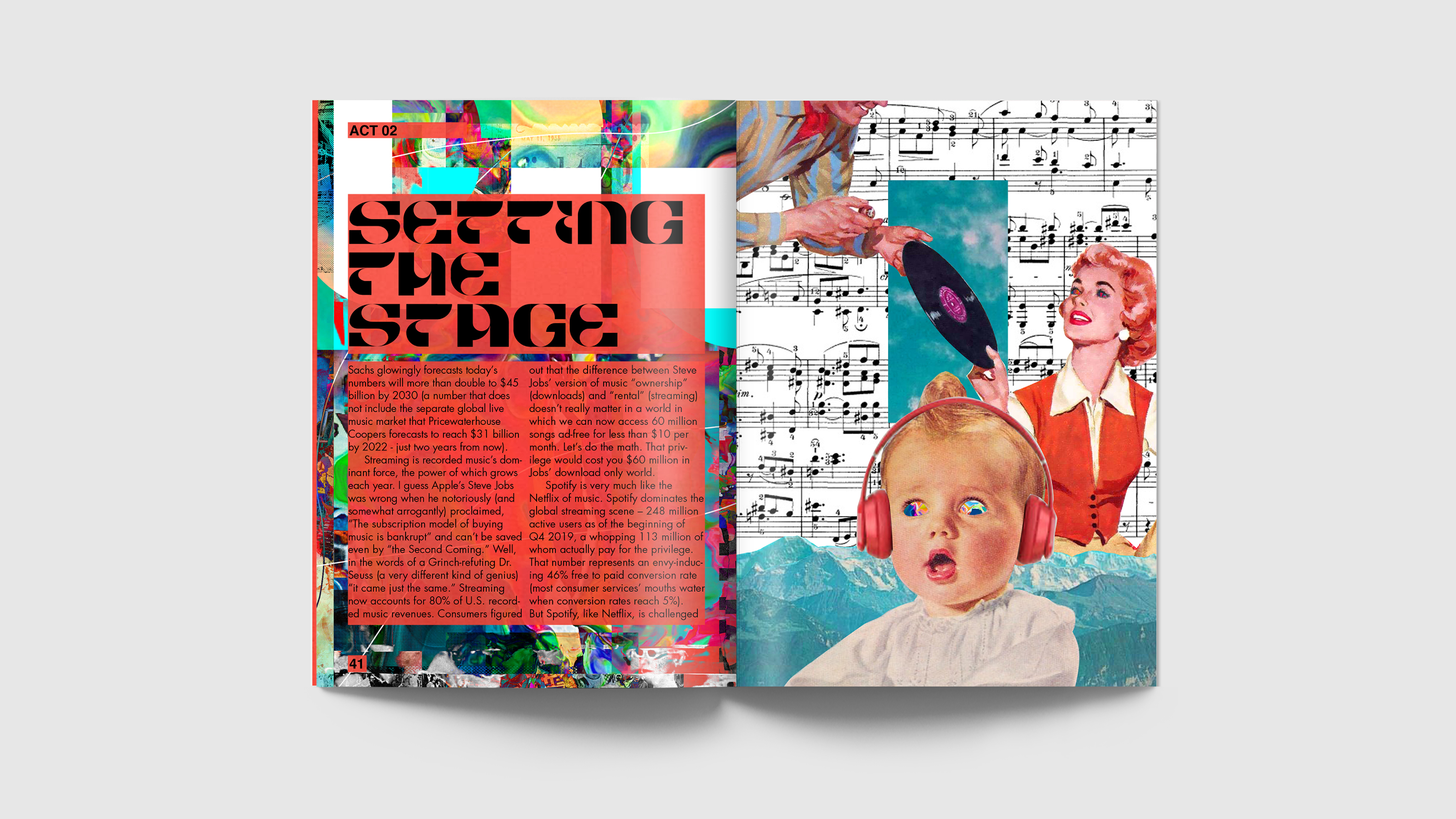 For this part of the assignment, I was assigned to make a short clip of a video that expresses the aesthetics and mood of the zine. Since my topic is the "future" of the music experience, I decided to make a cinematic short video that takes the audience to the future world. I decided to use cyberpunk taste as a theme of my video. Since many cyberpunk cities have screens everywhere in the city, I thought it was a good idea to show my animation of digital collage and typographies that focuses on the music experience onto the screens in the city. To create cinematic cyberpunk futuristic cities, I used photoshop to create the cityscape images of Tokyo and Hong Kong to make the futuristic cityscape. Adding onto that, I wanted to challenge myself to use 3D software. The scene where the rain is pouring on the ground is completely made with the 3D software called the Element 3D in After Effect. The experimentation of adding soundscape of people talking and raindrop sound added a mood of crowded busy cyberpunk city.