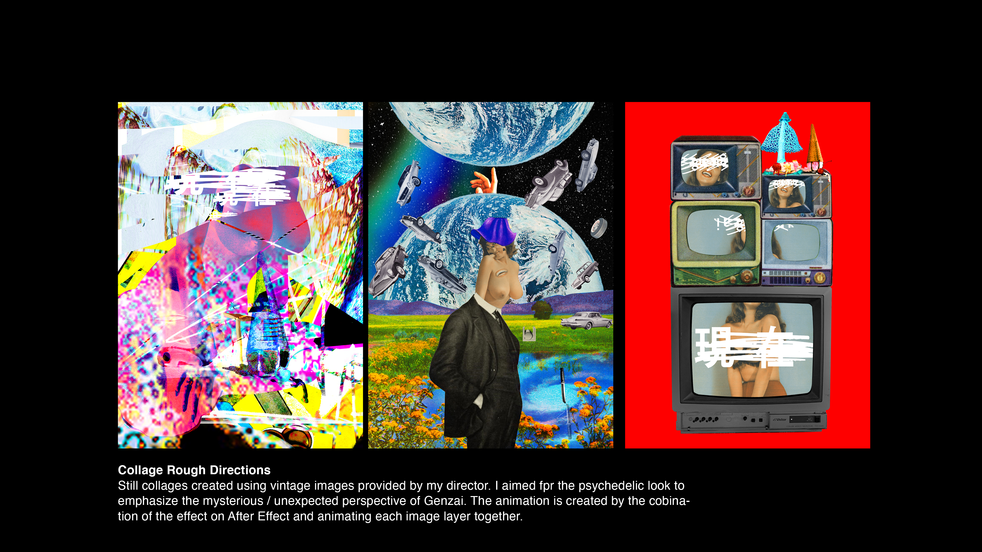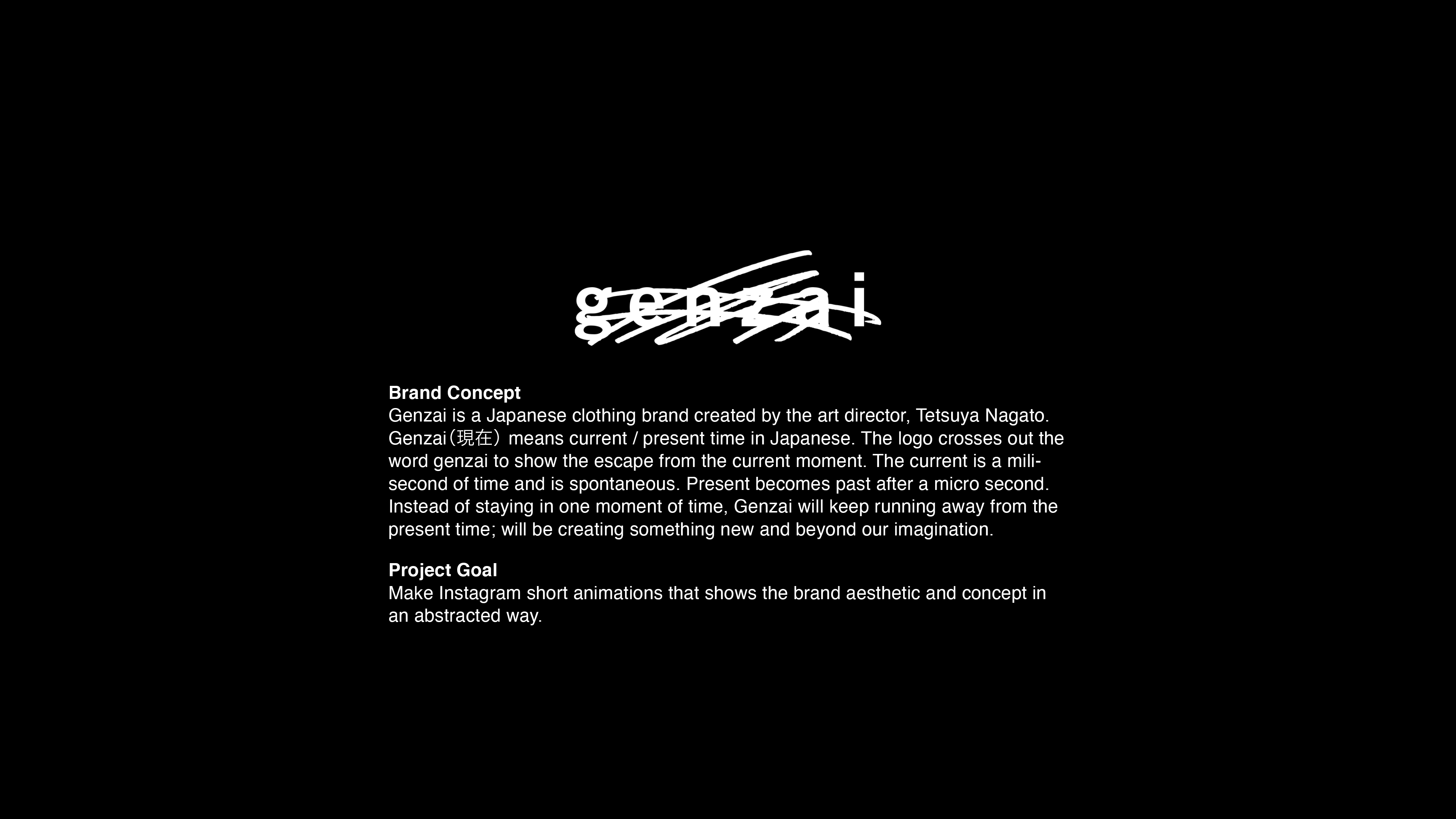 Genzai is a Japanese clothing brand created by the art director, Tetsuya Nagato. The main goal for this project is to make Instagram short animations that shows the brand aesthetic and concept in an abstracted way. This was executed by creating collage in Photoshop and animating in After Effect.