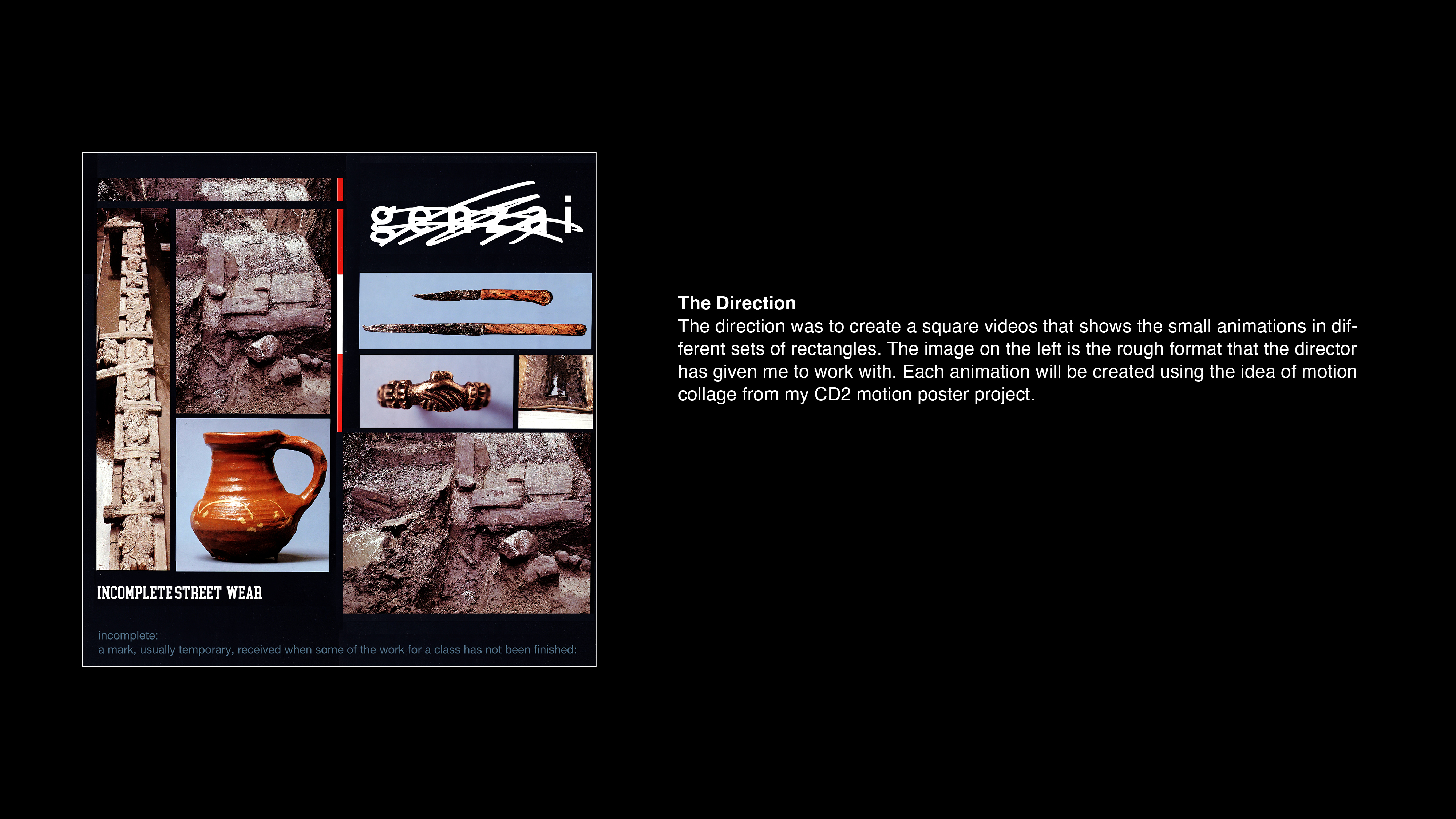 This was my first intern project with a director. The idea of motion collage originated from my CD2 project and I was glad that my skills helped this brand to grow. It was interesting to hear his perspective on my collage and animation. From his feedback, I was able to develop my piece in a short period of time.