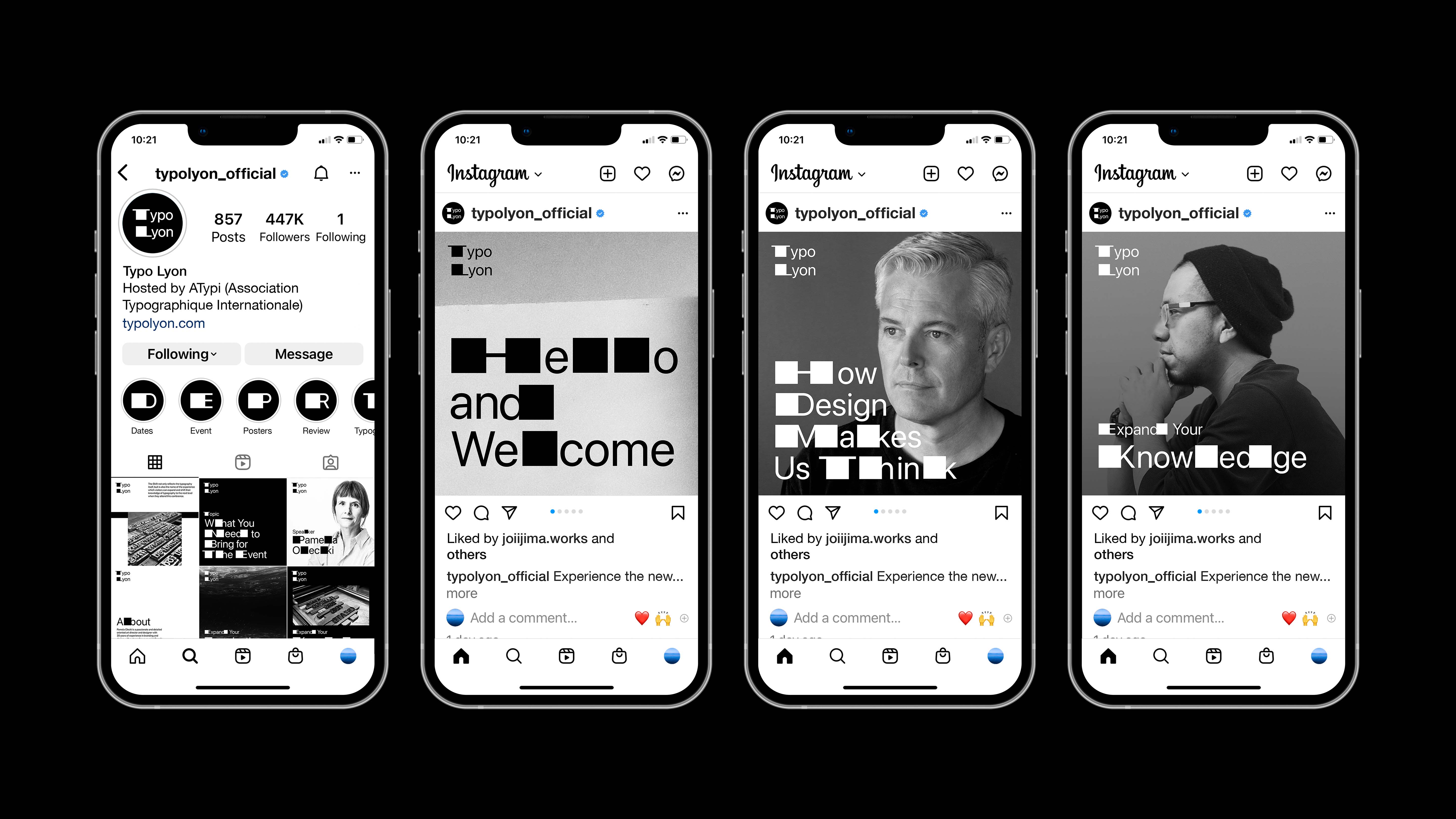 The logo extends the stems of T and L and a typographic system named "The Shift" expands the stems of all letters in the alphabet. This typographic system not only reflects the anatomy of the typography itself but also is used for the name of the experience which visitors can "expand" and "shift" their knowledge of typography. Different letter combinations create unexpected shifts throughout the identity system, providing dynamic visuals at the conference.