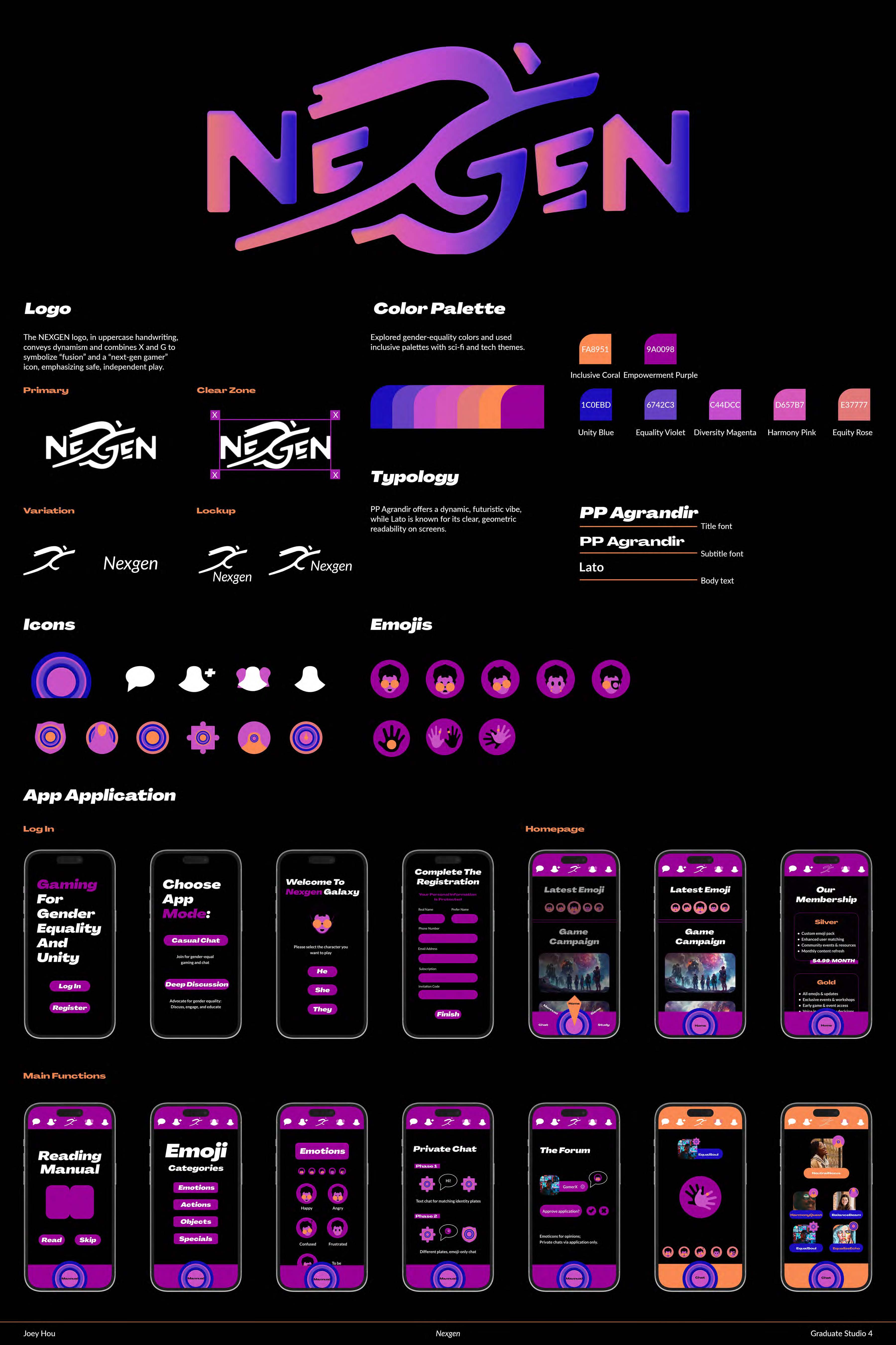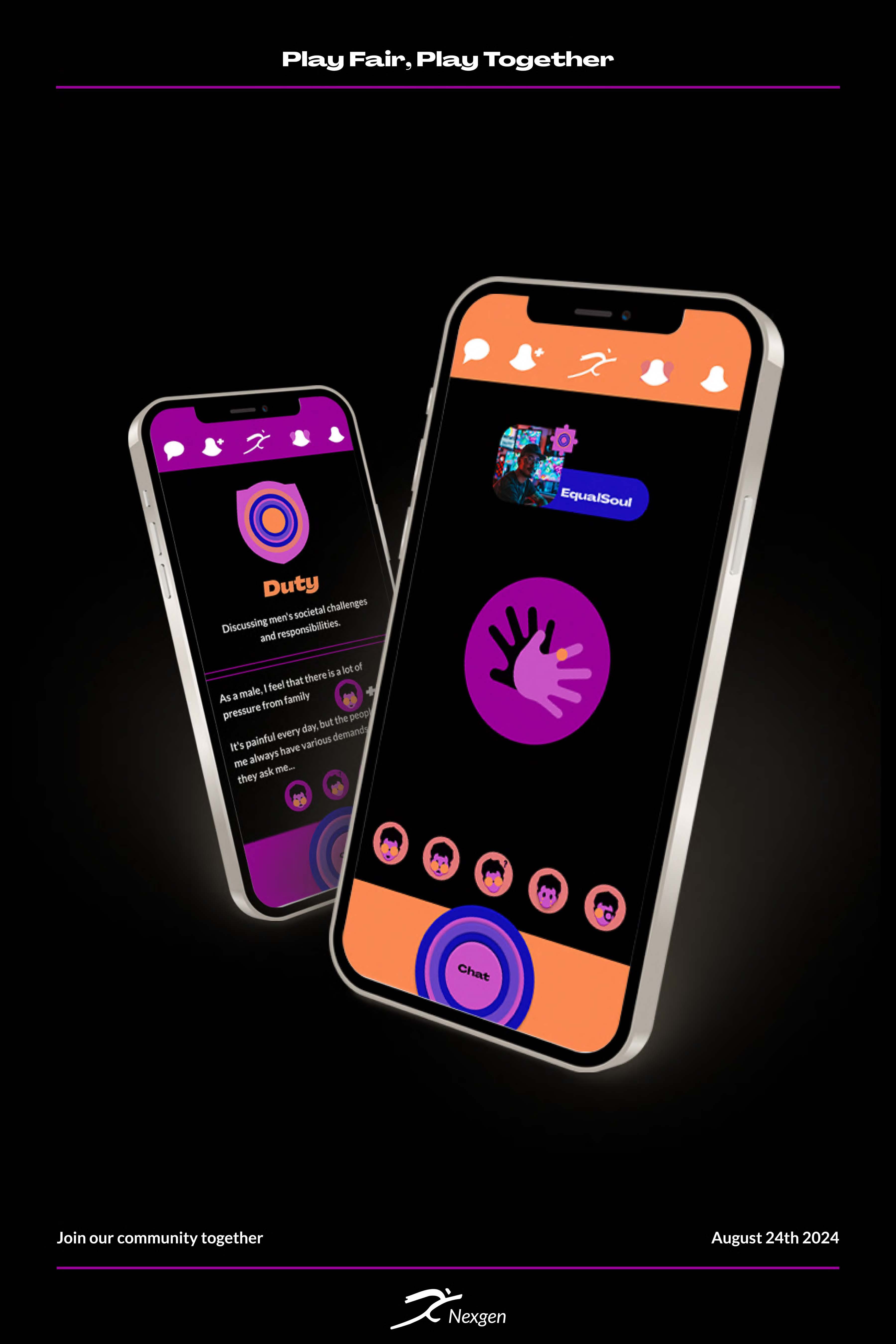 Nexgen is an inclusive gender platform designed to support gender equality among gamers. Currently, it operates primarily as a mobile application. Our aim is to integrate gender-equal gaming with relevant education and information, creating a medium dedicated to fostering an inclusive dialogue on gender equality. In this project, I have experimented with a unique communication method, utilizing emojis to minimize the potential for gender bias in language.