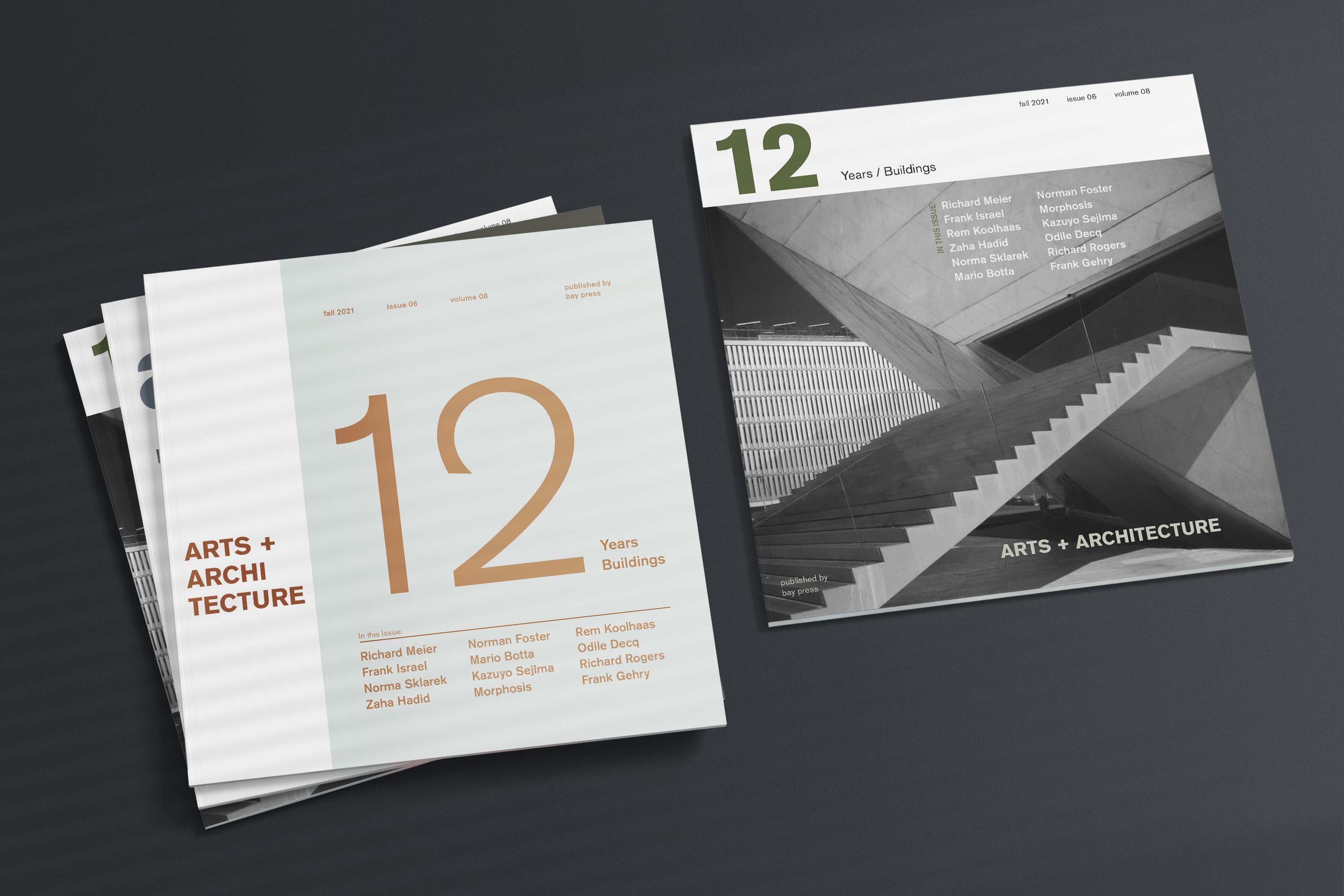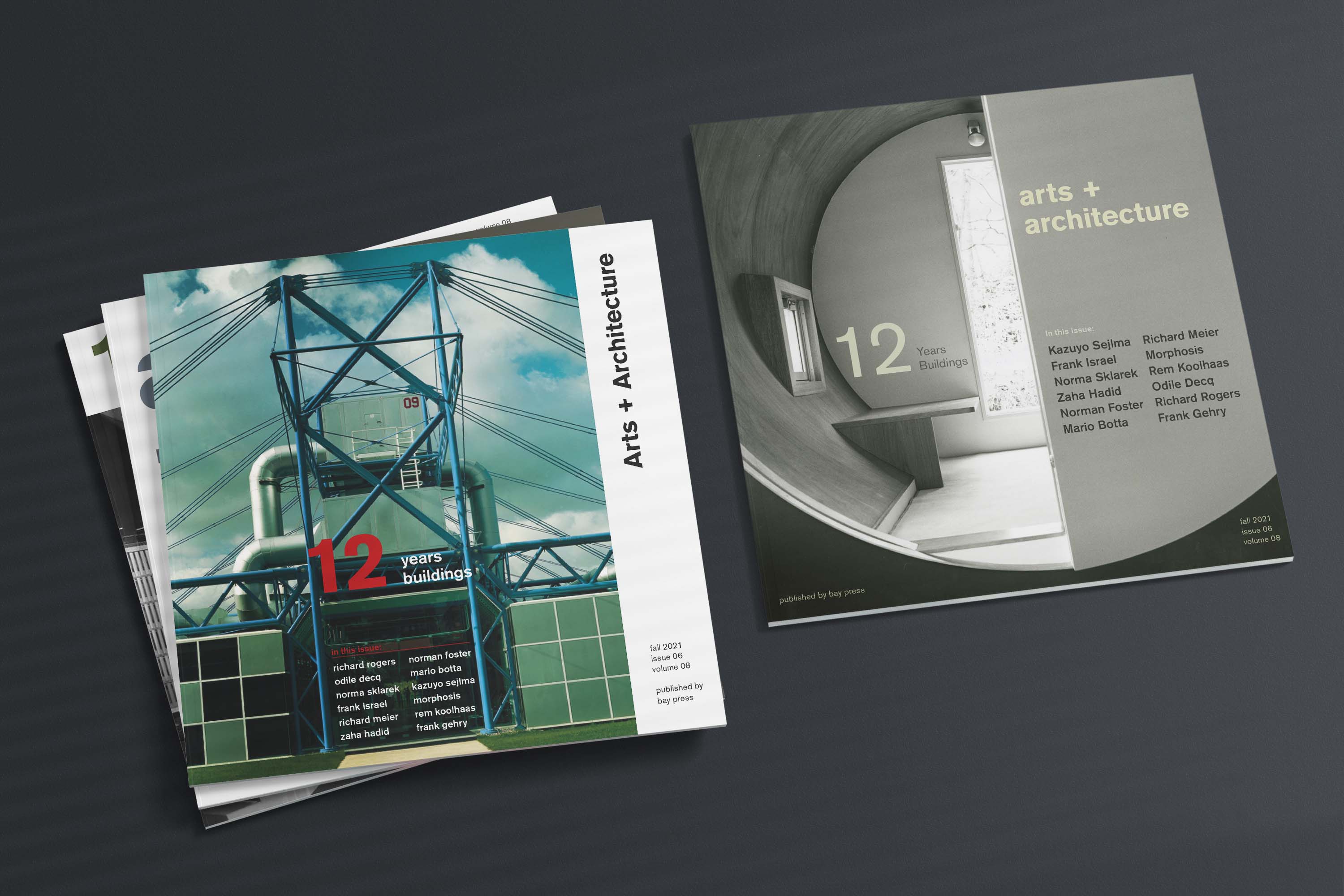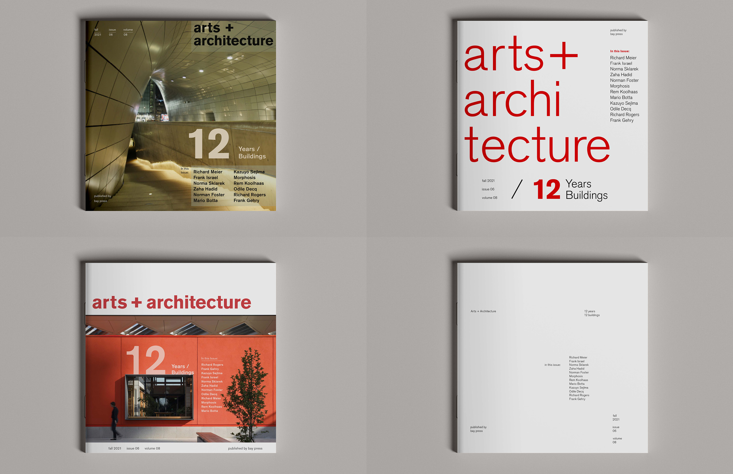 I created 20 different cover layouts to design an architecture magazine called Arts + Architecture. Given texts is including title, subtitle, architects, dates, and publication. We created 20 different layout designs using different weights, colors, sizes, rules, bars, and photos each week.