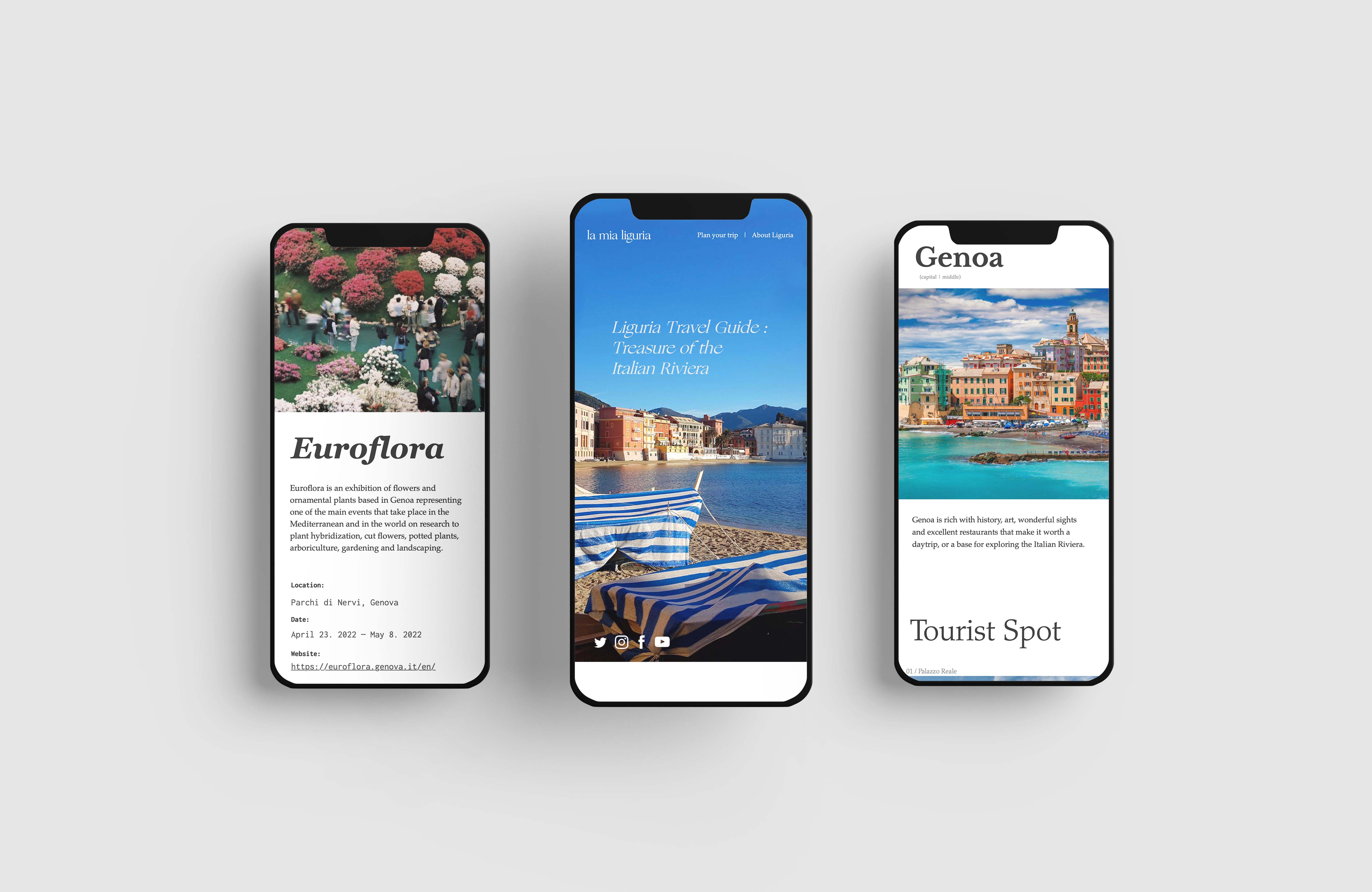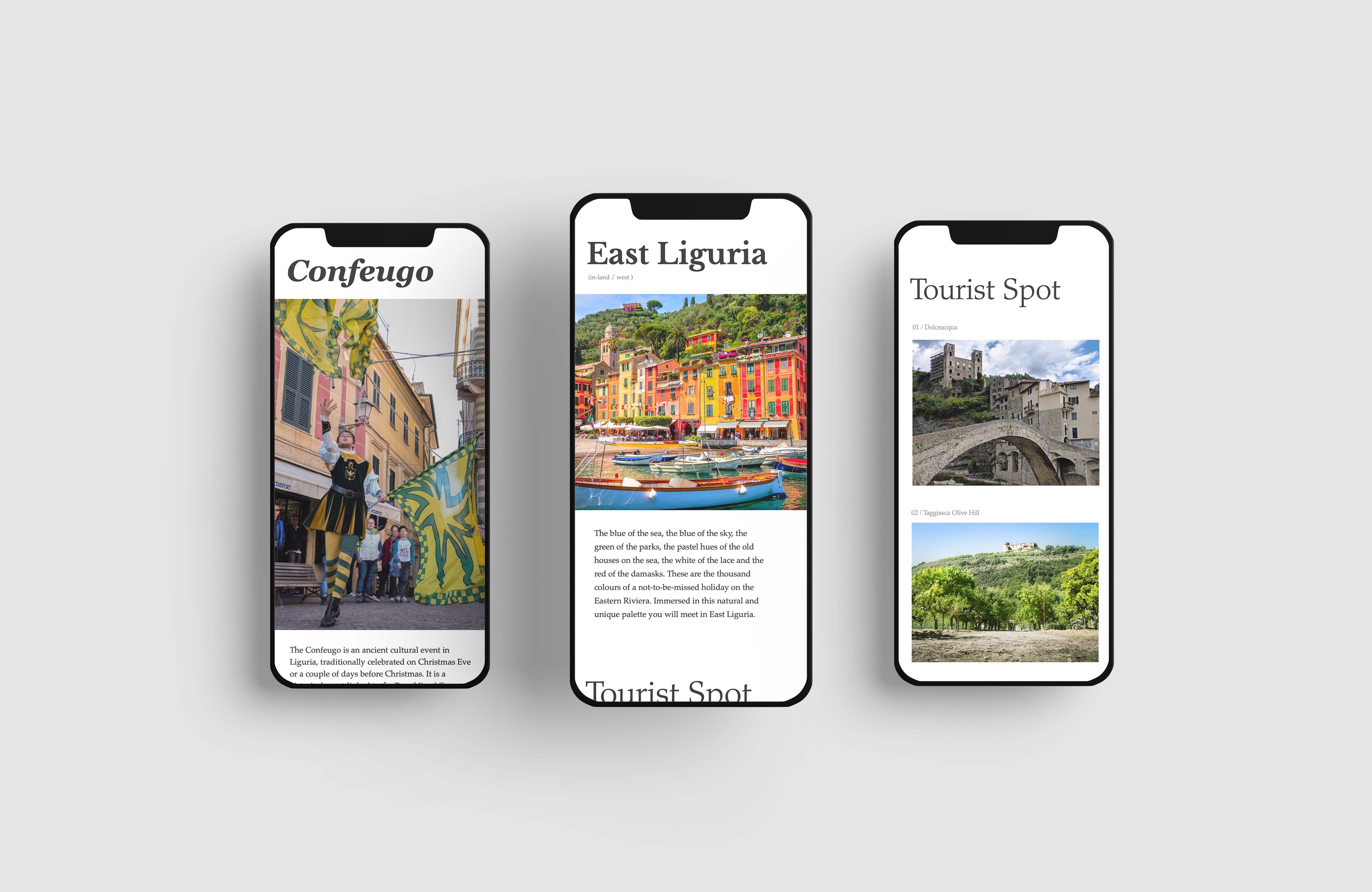 For this project, I redesigned La Mia Liguria website which is a promotional website for Liguria province. Since the website is not attracting the audience to visit the province with the poor design, I tried to focus on the picturesque scene of the Liguria and the clean layout shows the beauty of the Liguria.