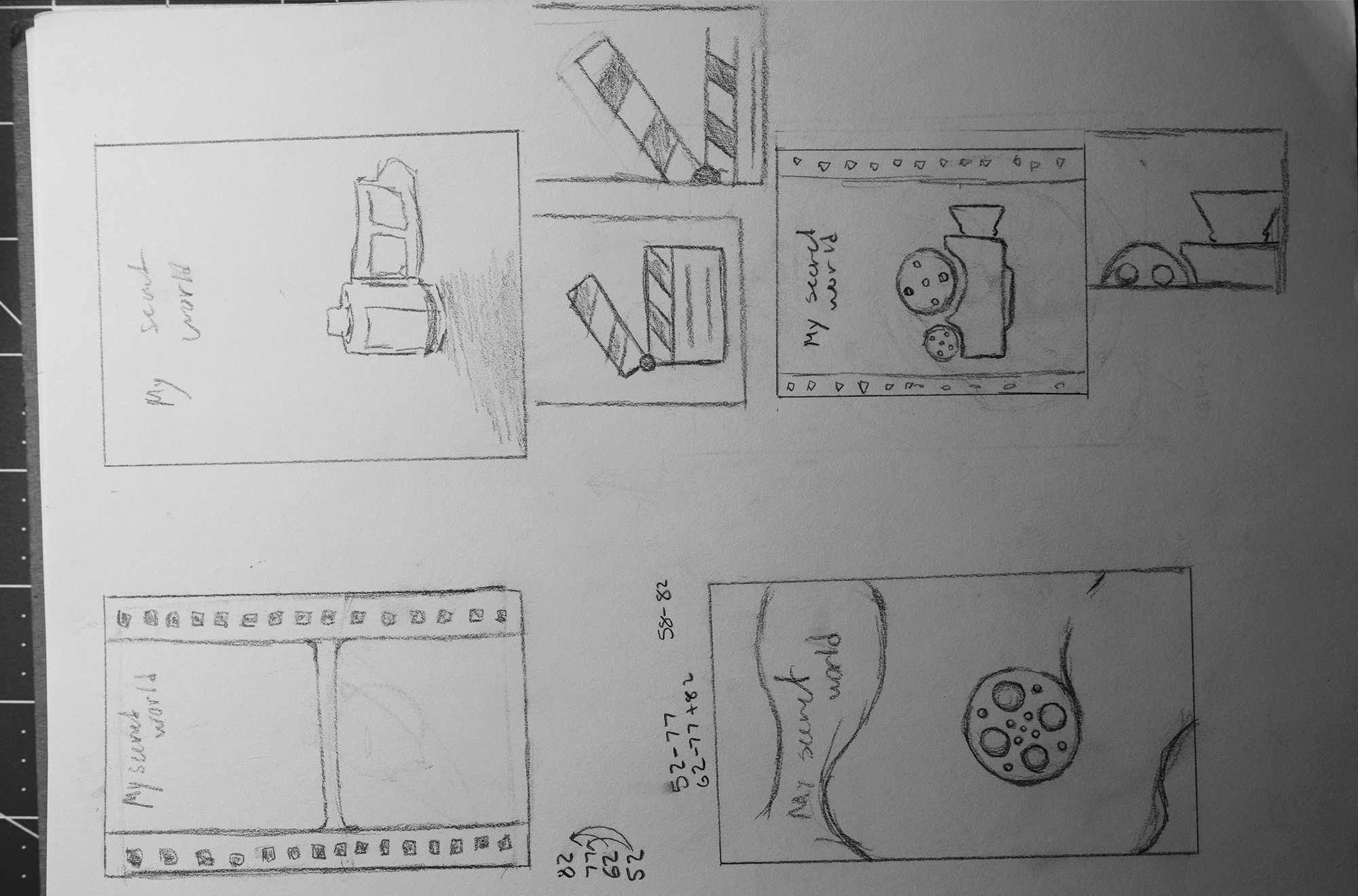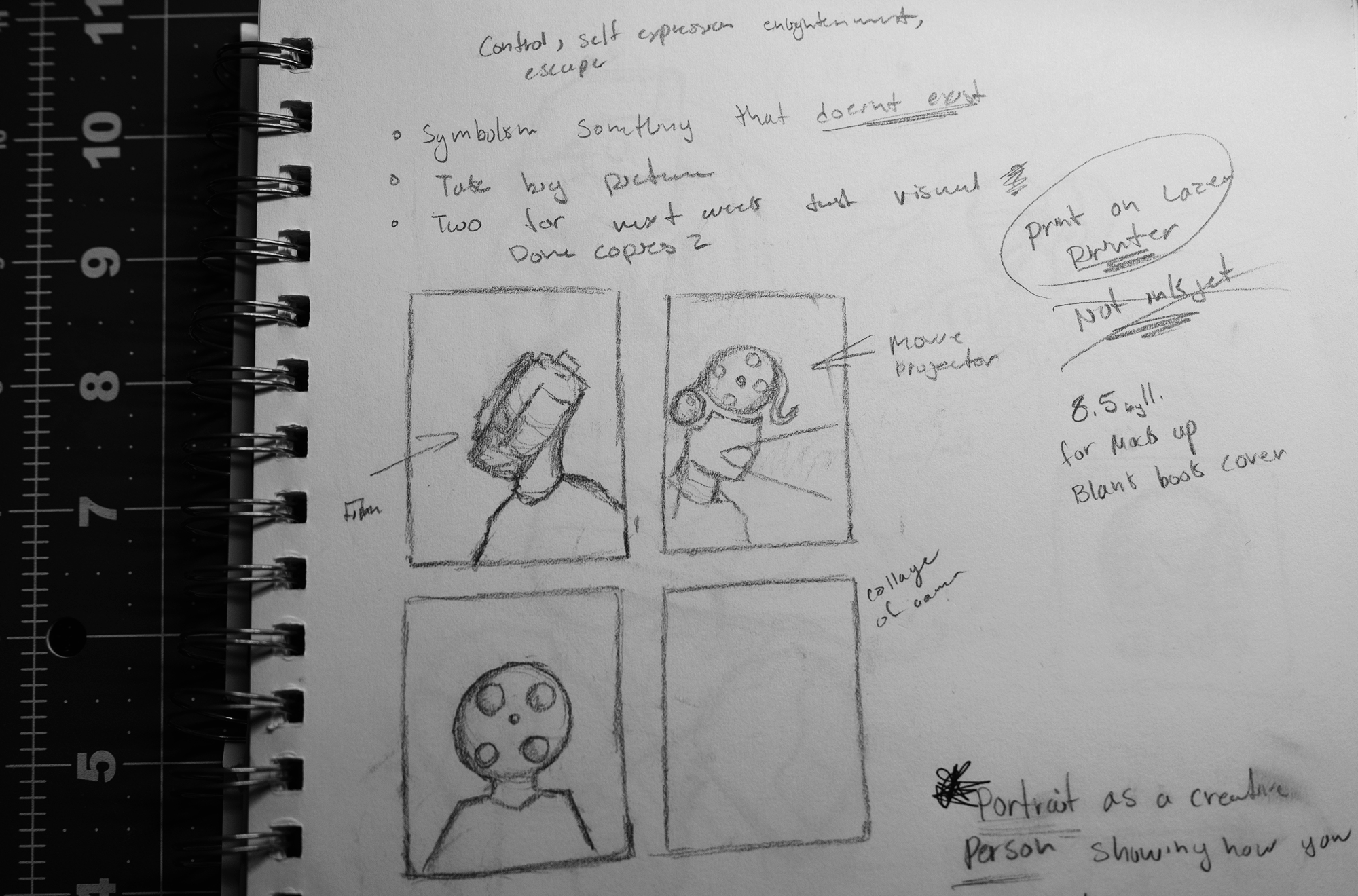I took multiple side profiles and portraits of film canisters to get a good composition where you can see the film canister blending in with my skin using the stamp took to make it look natural. I created multiple digital renditions because I was having trouble deciding what looked best. Having everything next together make it easier to pick from the group.