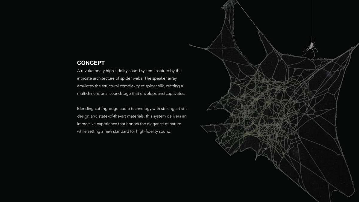 Inspired by the delicate artistry of spider webs, this hi-fi speaker merges elegance with precision engineering. Its design reflects nature’s balance of beauty and strength, creating a sculptural piece that delivers impeccable sound while embodying the seamless fusion of art and innovation.