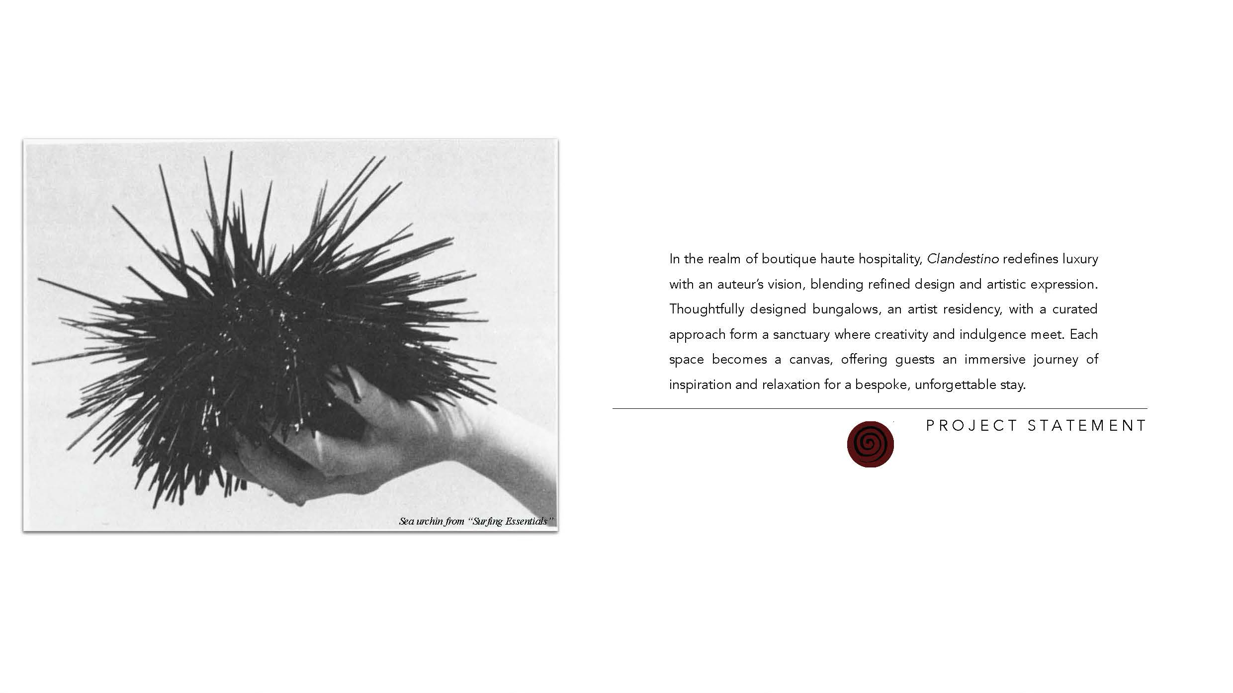 In the realm of boutique haute hospitality, Clandestino redefines luxury with an auteur’s vision, blending refined design and artistic expression. Thoughtfully designed bungalows, an artist residency, with a curated approach form a sanctuary where creativity and indulgence meet. Each space becomes a canvas, offering guests an immersive journey of inspiration and relaxation for a bespoke, unforgettable stay.