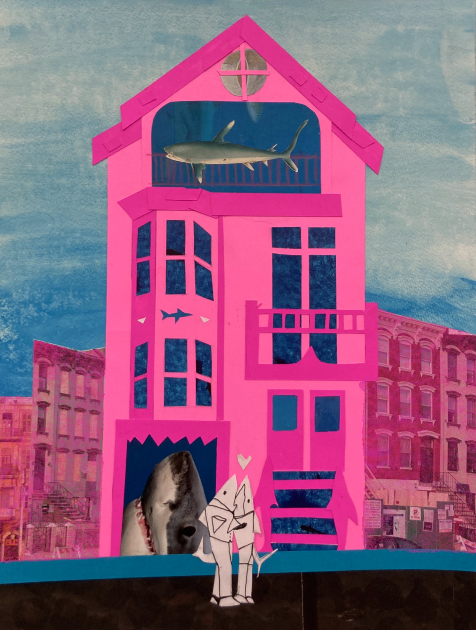 SAN FRANCISCO LOVERS - The first time I visited SF I was so struck by the pink houses! I was still playing in the shark world and I just thought about what a shark themed San Francisco Townhouse might look like. I also wanted to celebrate San Francisco's queer identity, thus our main characters are kissing.
