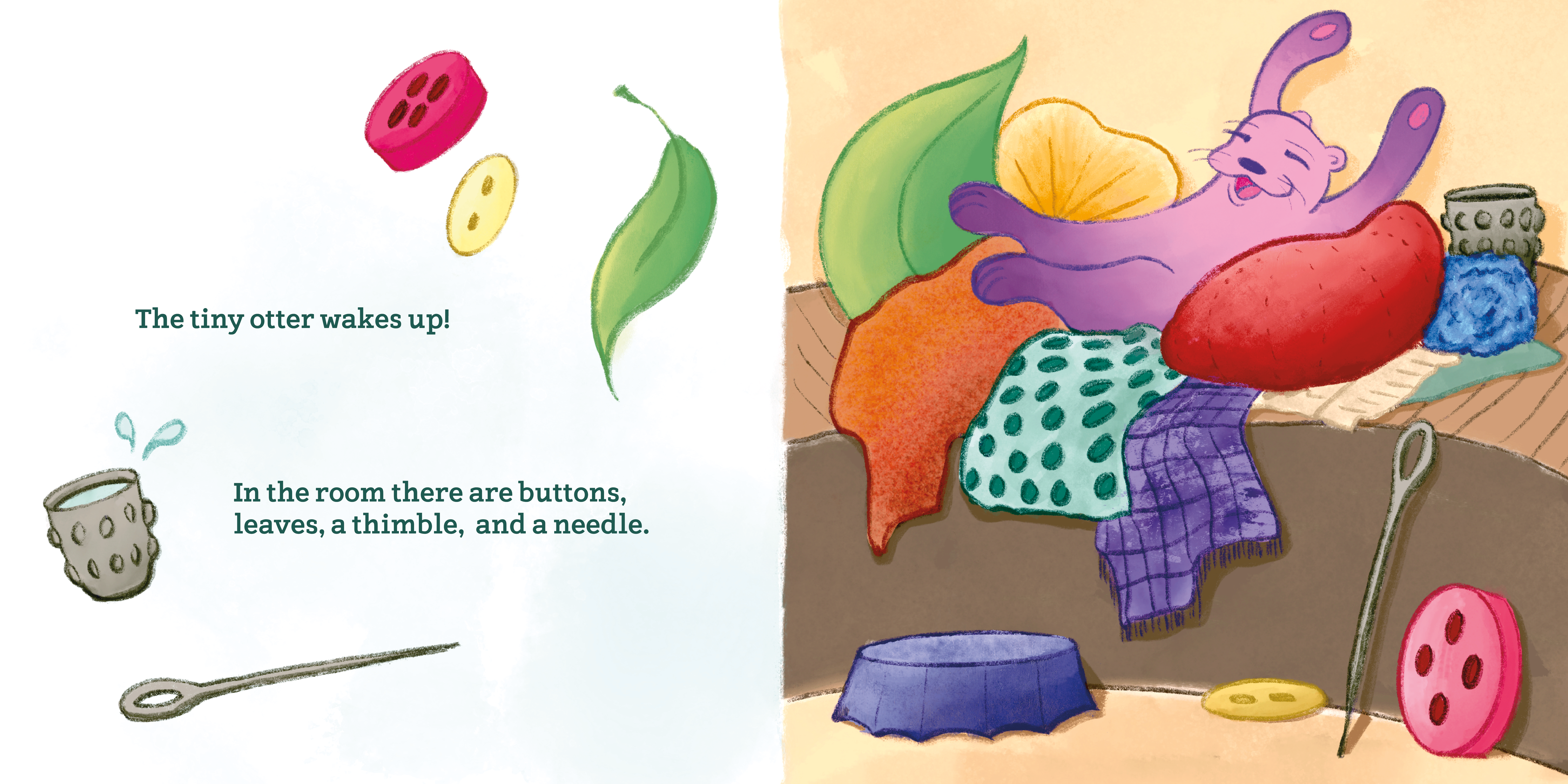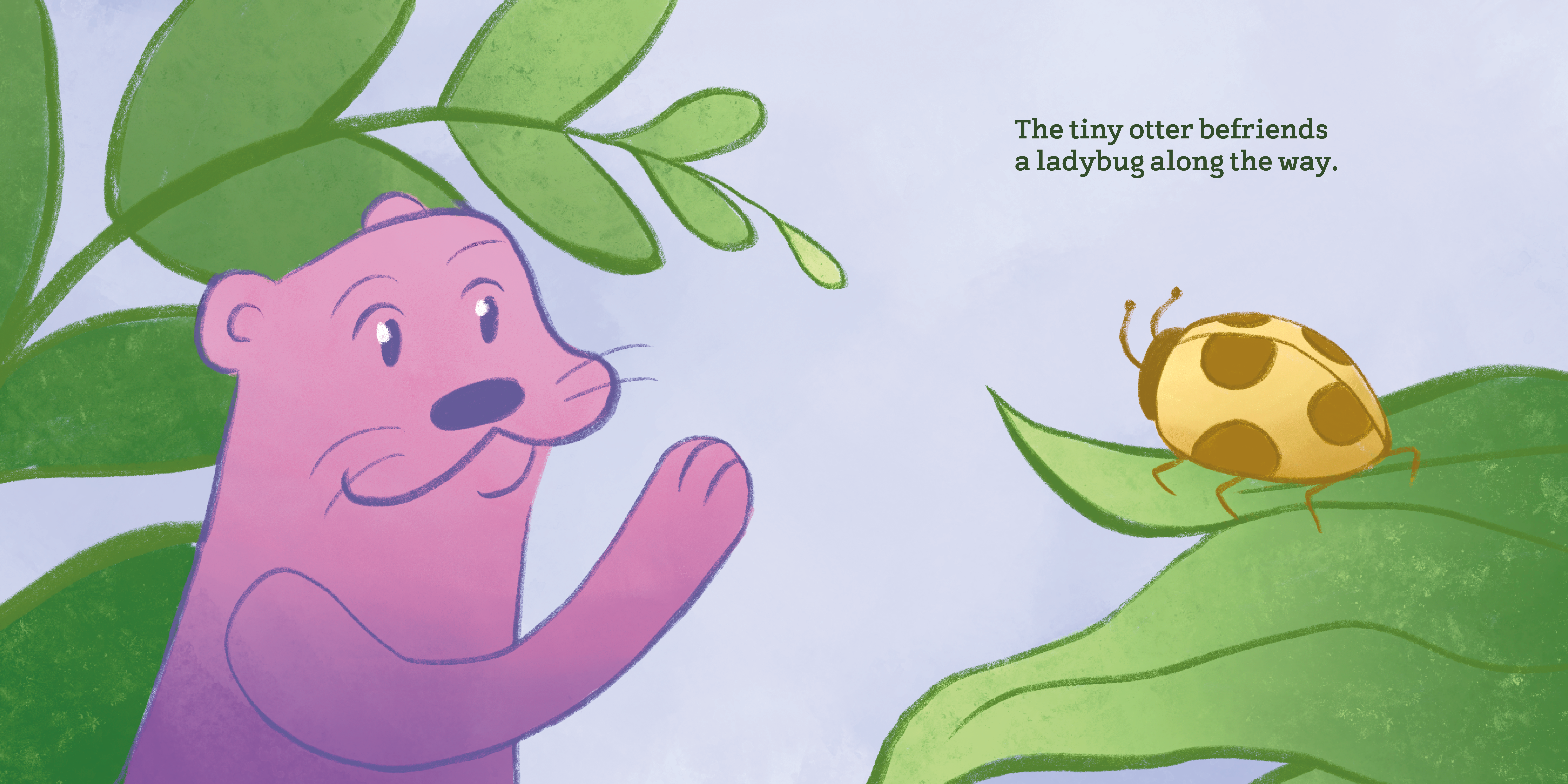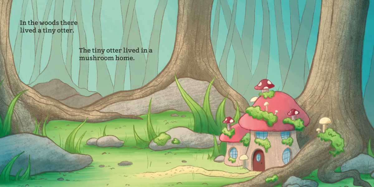 The second spread, introducing the tiny otter.