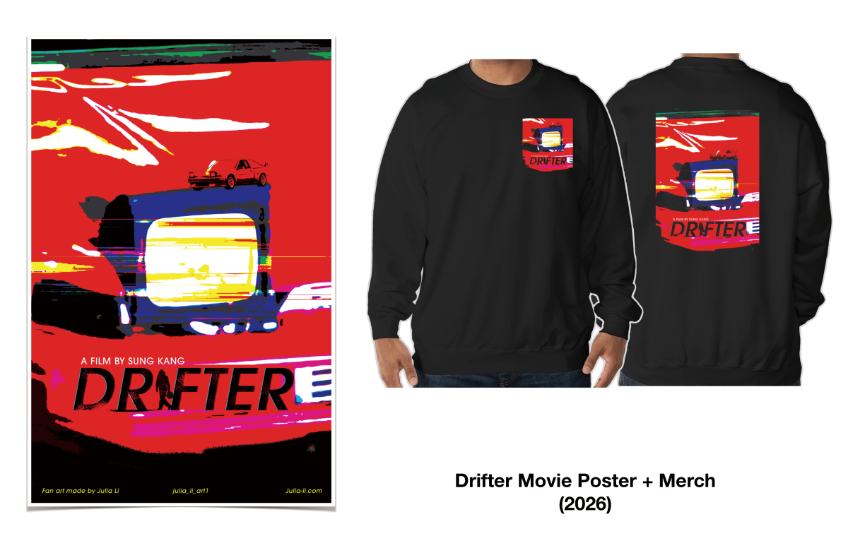 I made this poster as a gift to the Drifter movie team, for the main producers as well as the director and star of the film, Sung Kang. His team loved it so much when I was gifting it to them in person during the panel. I had fun designing for something that was purely based on my passion, as a side project, yet, had such an amazing outcome and turnout.