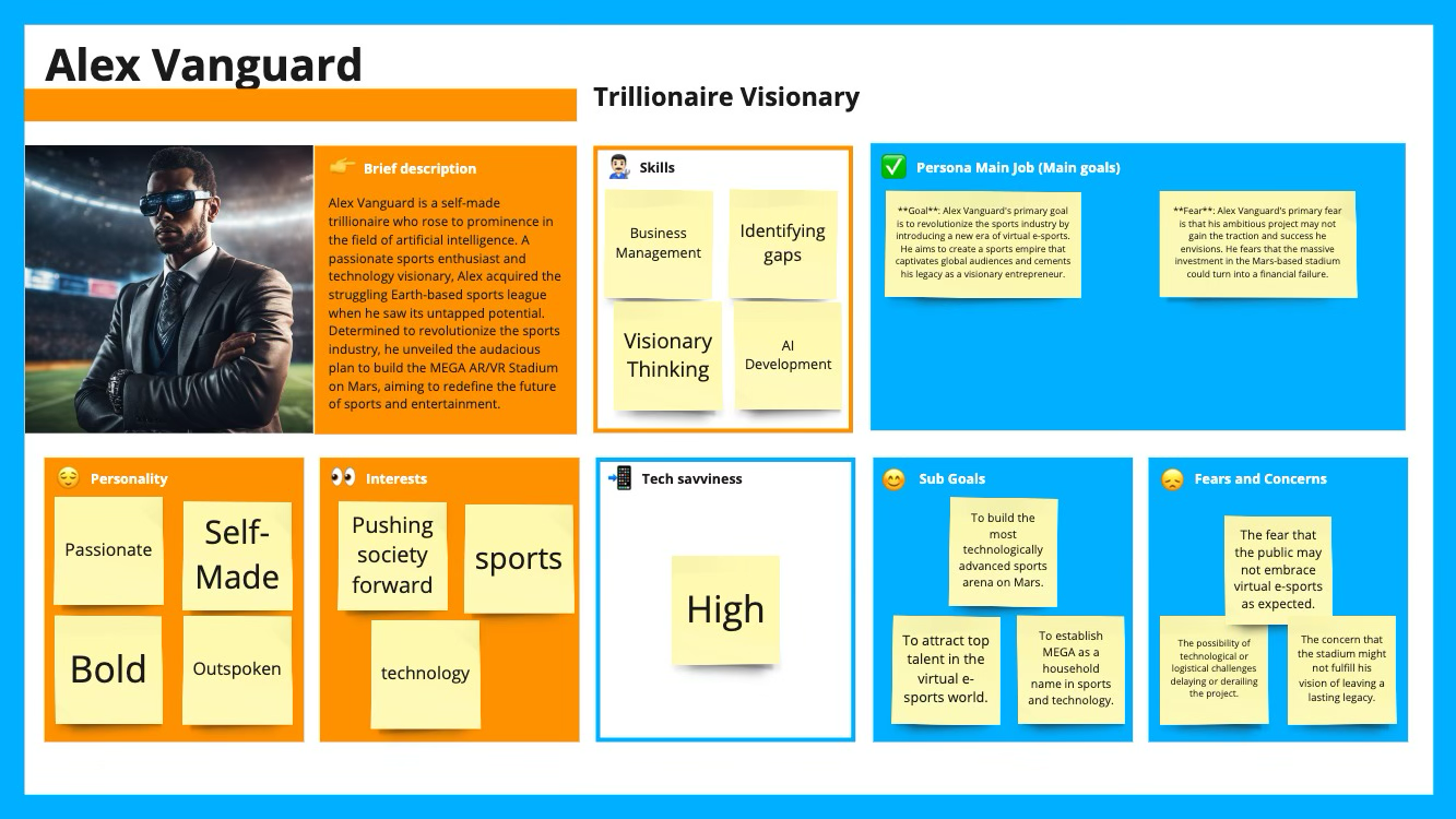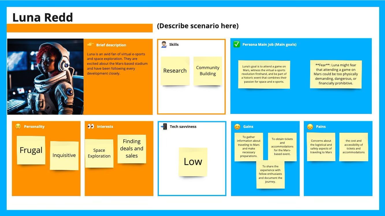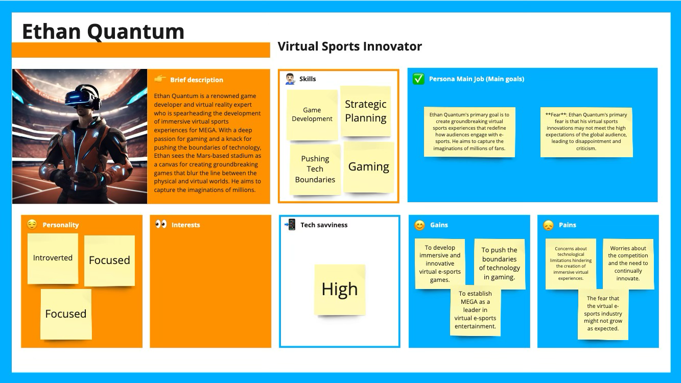 Brand Research Strategy for a Martian eGames Association. Deliverables: Brand Story and Name, Competitive Analysis, Persona Development, Potential User Journeys, and Potential Customer Interviews. Sports Team: An Earth based sports team, with a bad record gets bought out by a Trillionaire that made their fortune with an AI company that colonized mars.