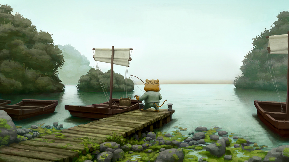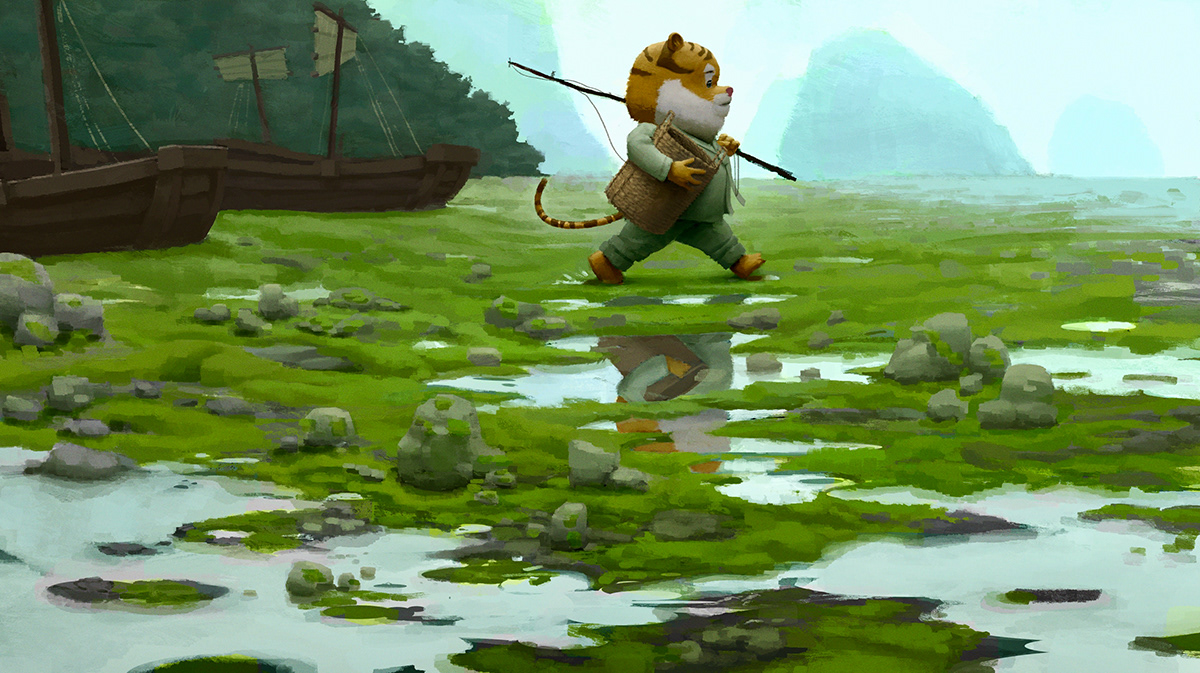 Rang is a series of keyframe paintings with a character based on an original story. The narrative follows a tiger who sets out to fish but becomes lost in the boundless expanse of the ocean.