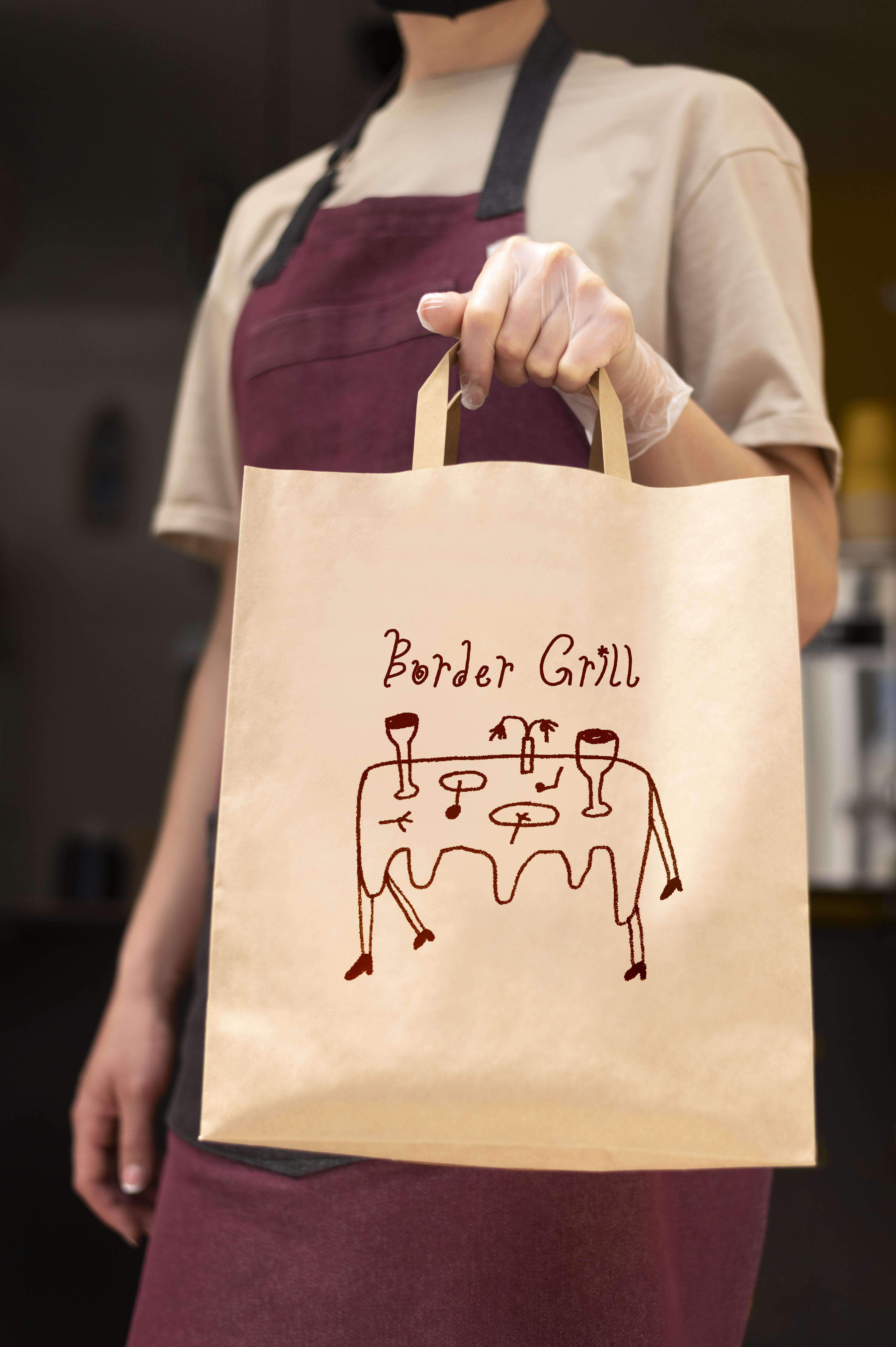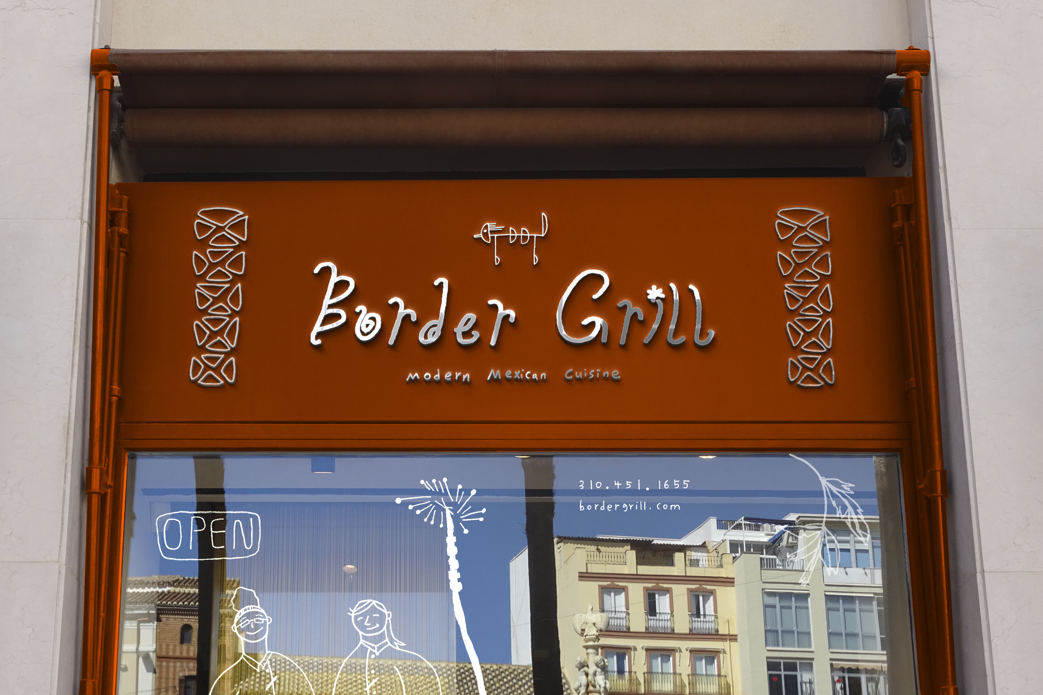 For the Modern Mexican Cuisine - Border Grill, my project shares a fresh perspective with my illustrations and hand letterings to be applied in the interior and outdoor, logo, menu, packages, business cards and hand painted plates.