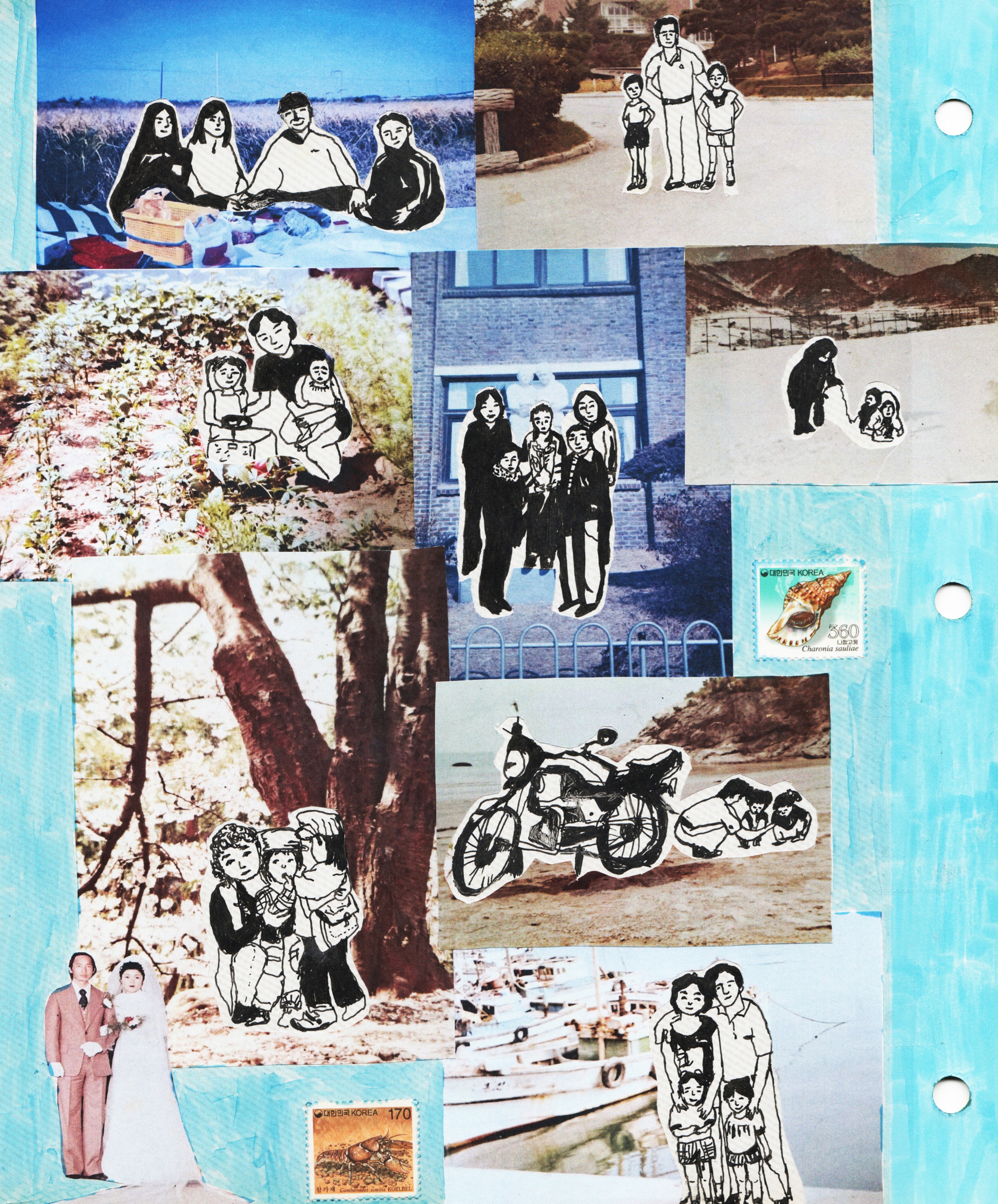 I explored to depict 3 moments of my grandfather (Working in Saudi Arabia, Military and present) by using mixed media, found photos, and handwriting on the old photo album. Please find the link below to read a full story.