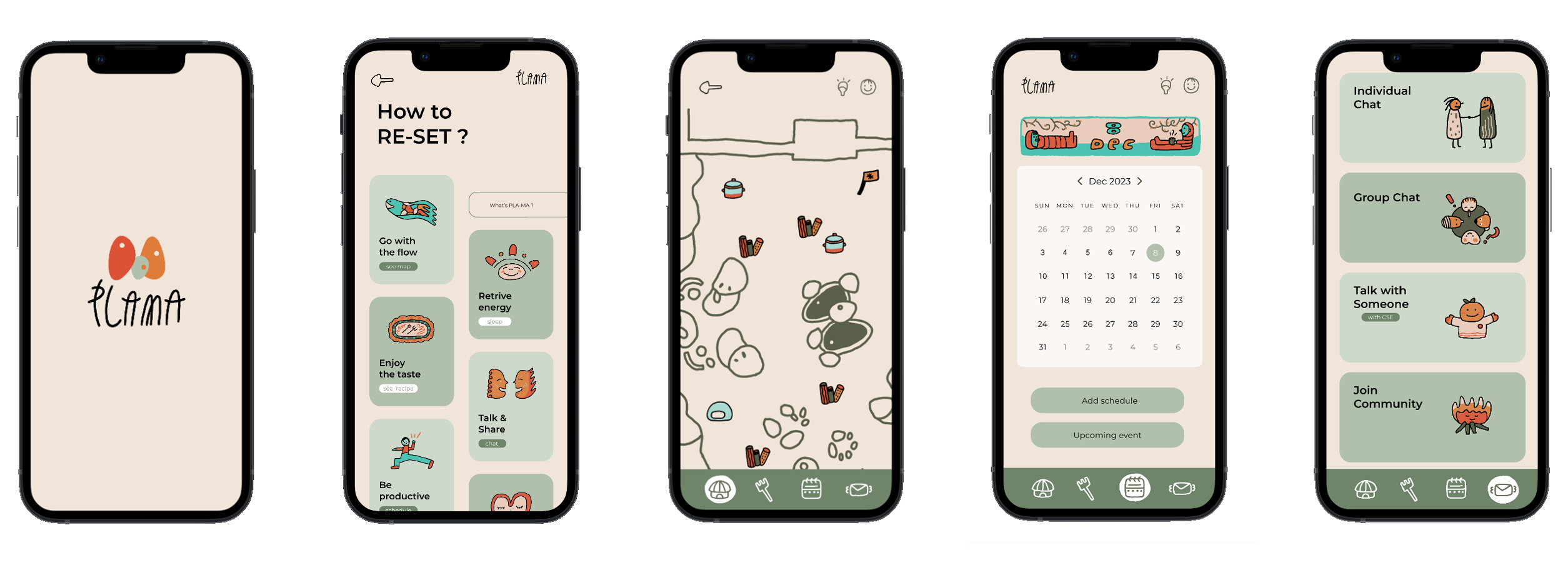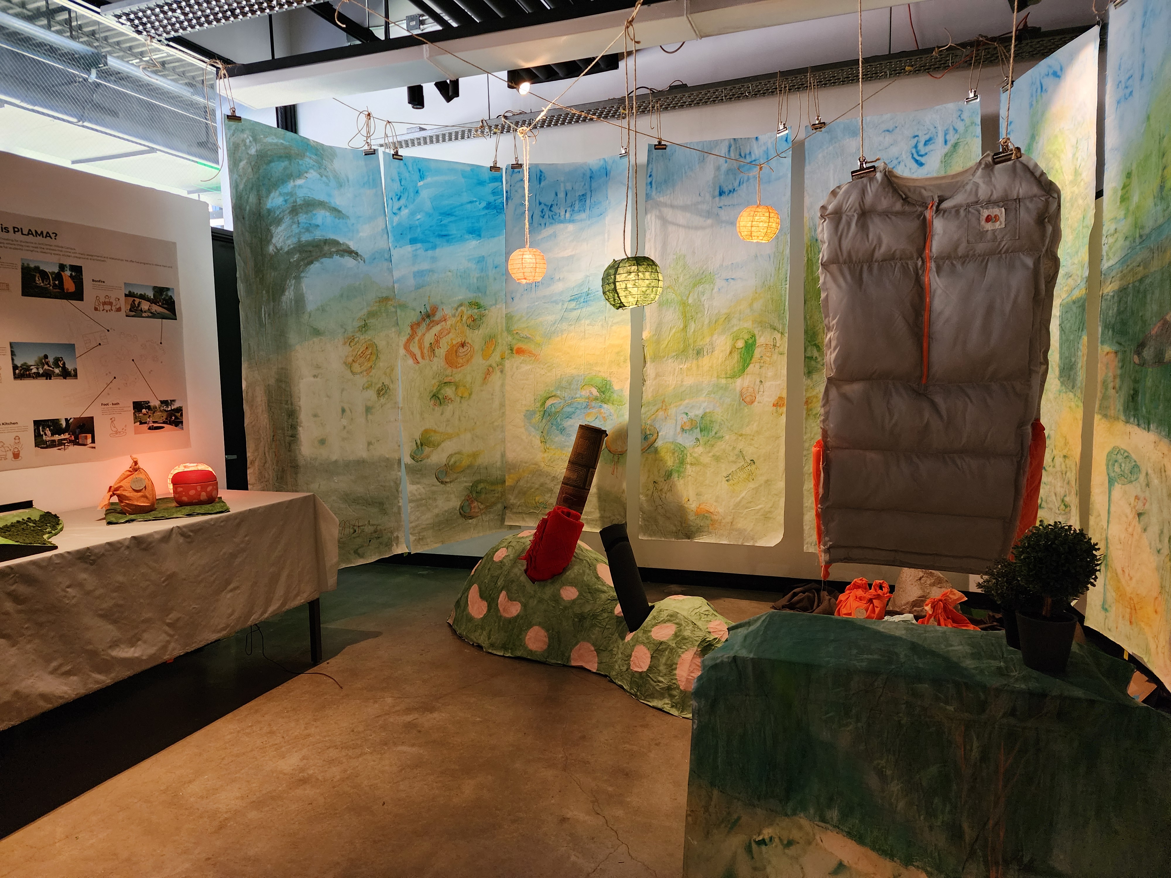 The group was able to produce the programs (open kitchen, footbath, playground, bonfire, nap), self kits, app, illustration, motion, and posters for the final presentation.