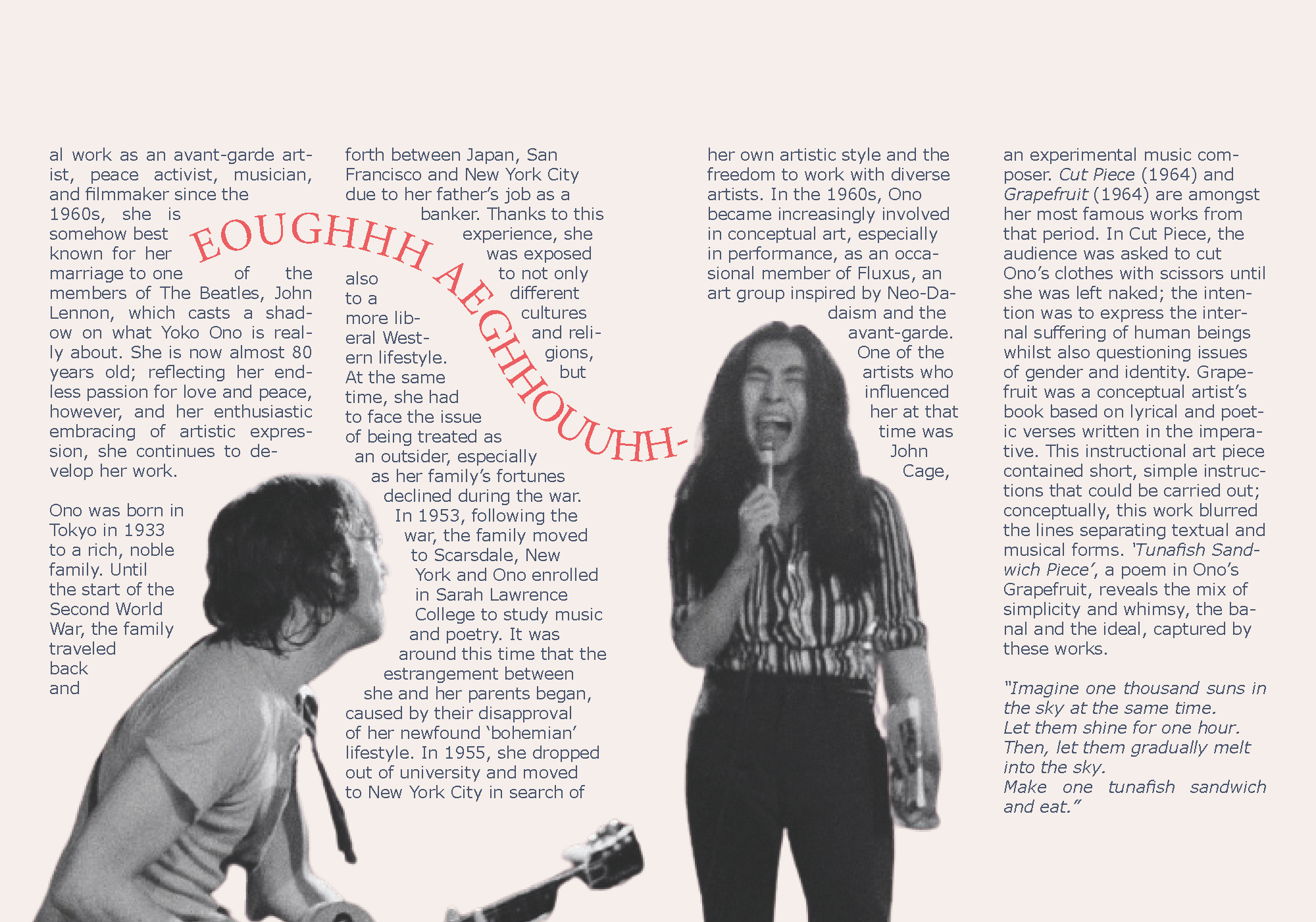 Yoko Ono Filter Demo - Created on Facebook's Spark AR Studio This is another music video that I created that contrasted with Billie Eilish. Unlike her, Yoko Ono is older and does not have a form of synesthesia so I added a voice bit crusher to add a rustic feel and a box television. The filter is also in black and white to contrast the other filter I created.
