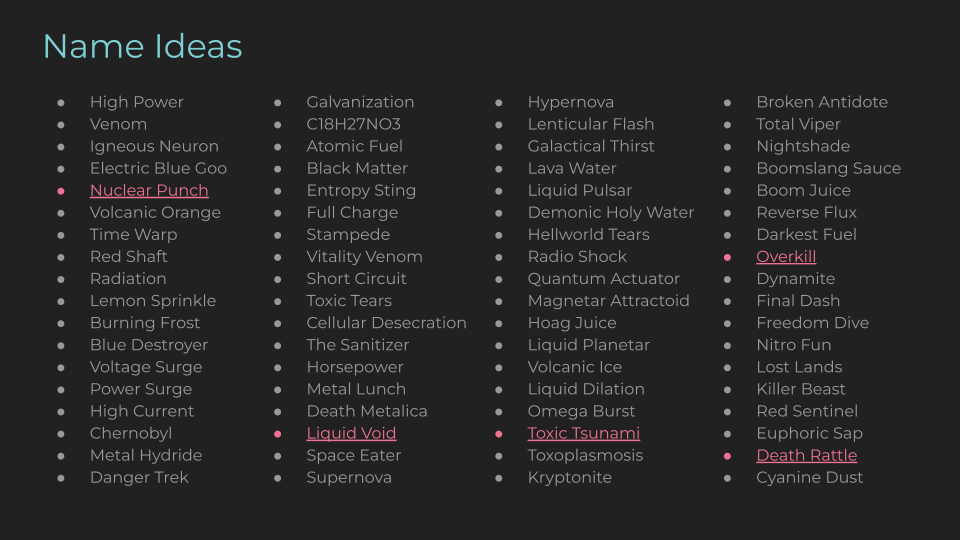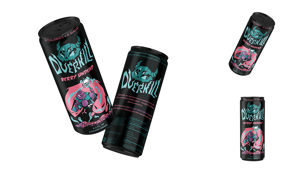 This is an energy drink influenced by the skateboard & underground lifestyle, as well as the punk rock and hardcore culture and game character design. I found that many energy drinks lack design and excitement so I made a fun illustration to go against the norms.