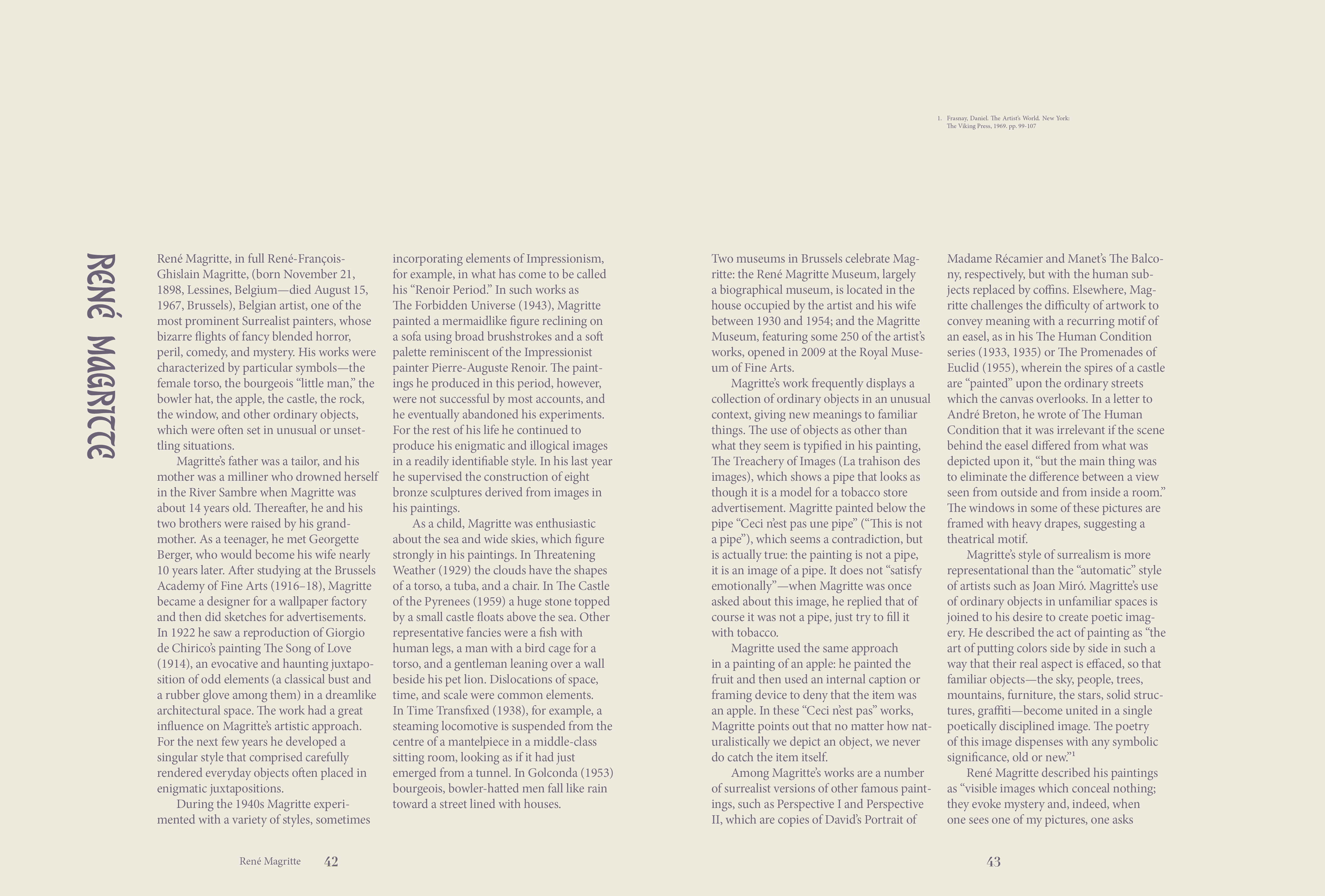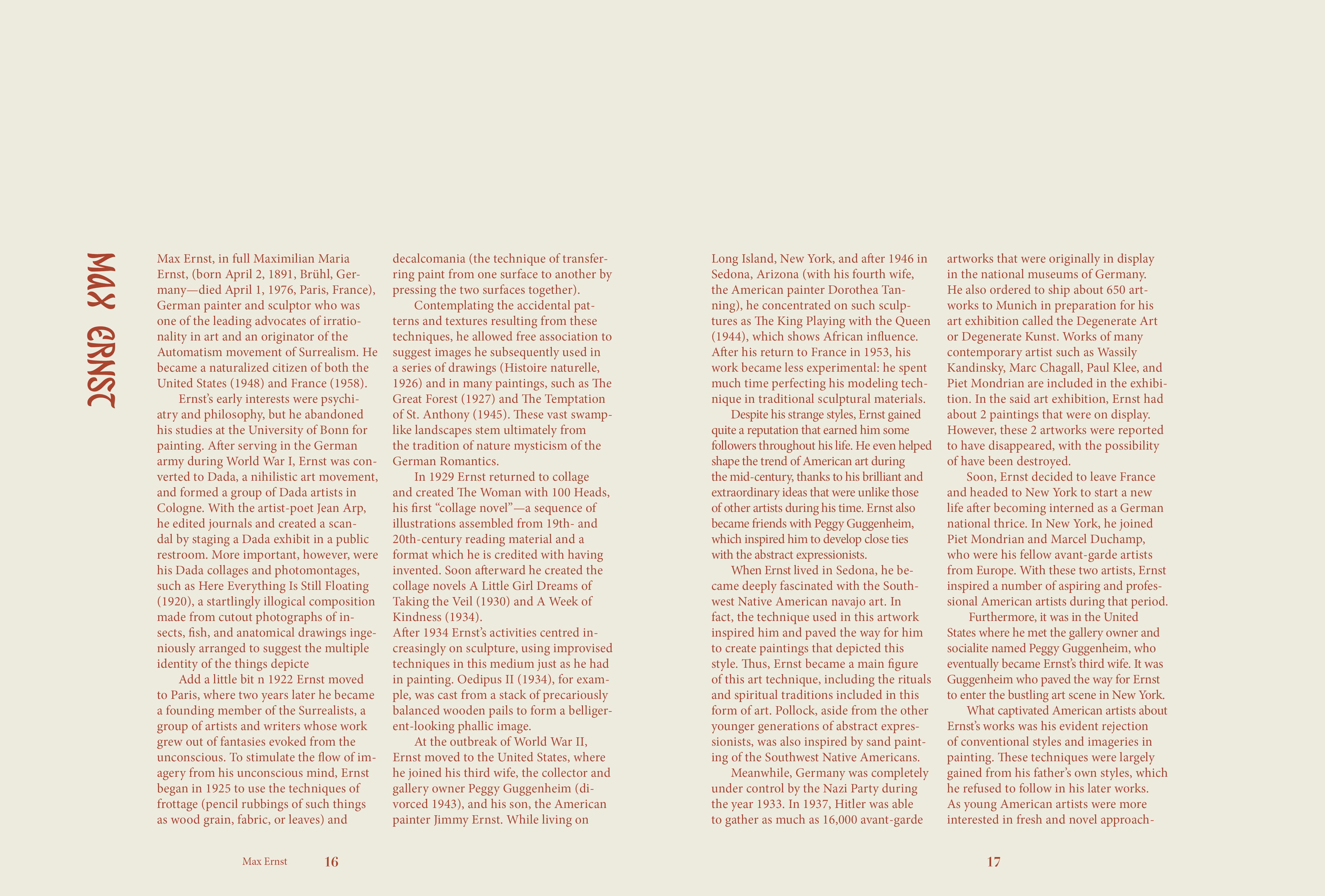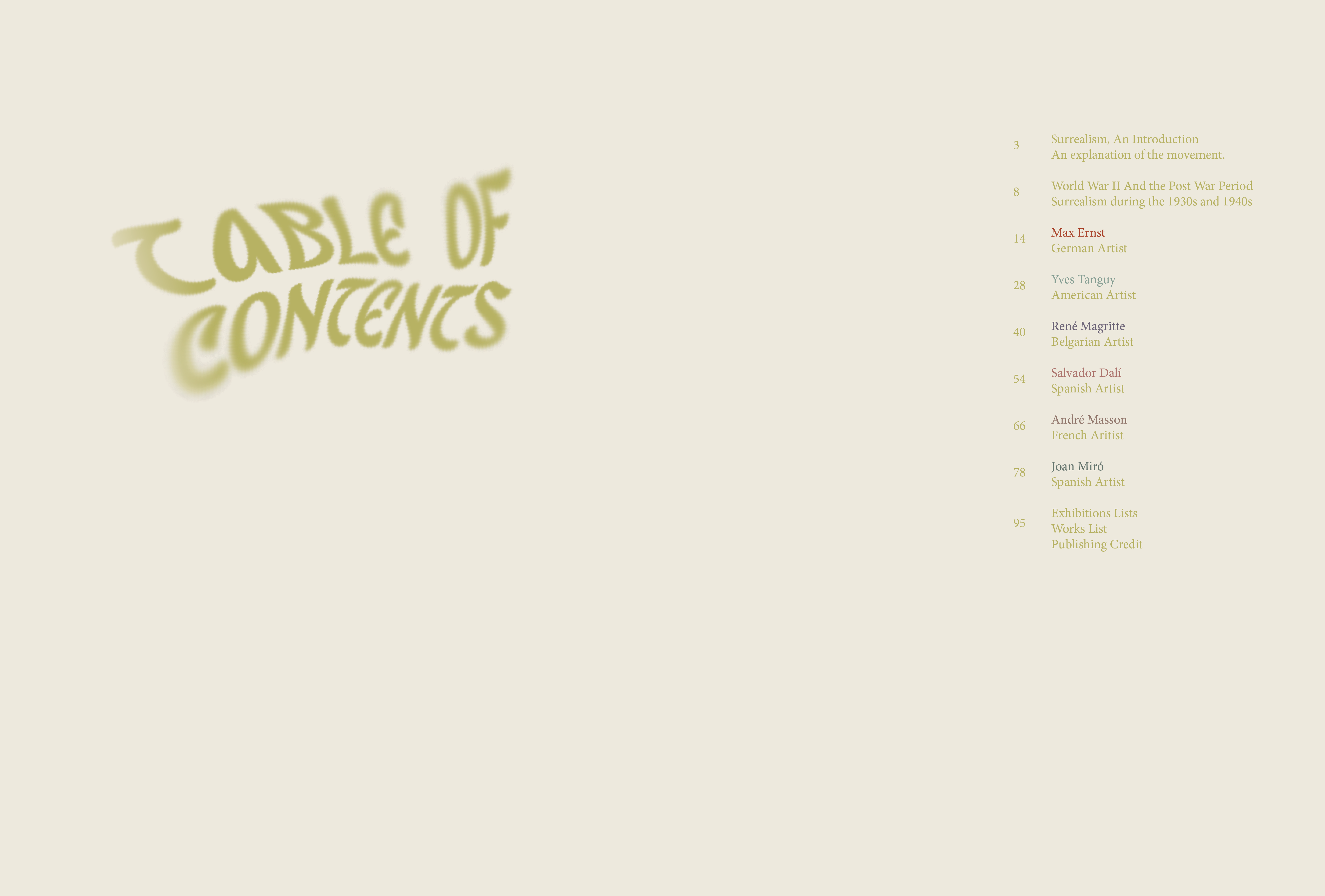 Creating this exhibition meant I had to make a system of ideas to consistently go with all of my products such as the booklet and exhibition wall to go with the surrealism theme. The challenge was creating the booklet system and guide to have a layout that was set through all pages and flow through the book all the way. I learned what list of details to include within the selected exhibition list and the credit needed for each artist.