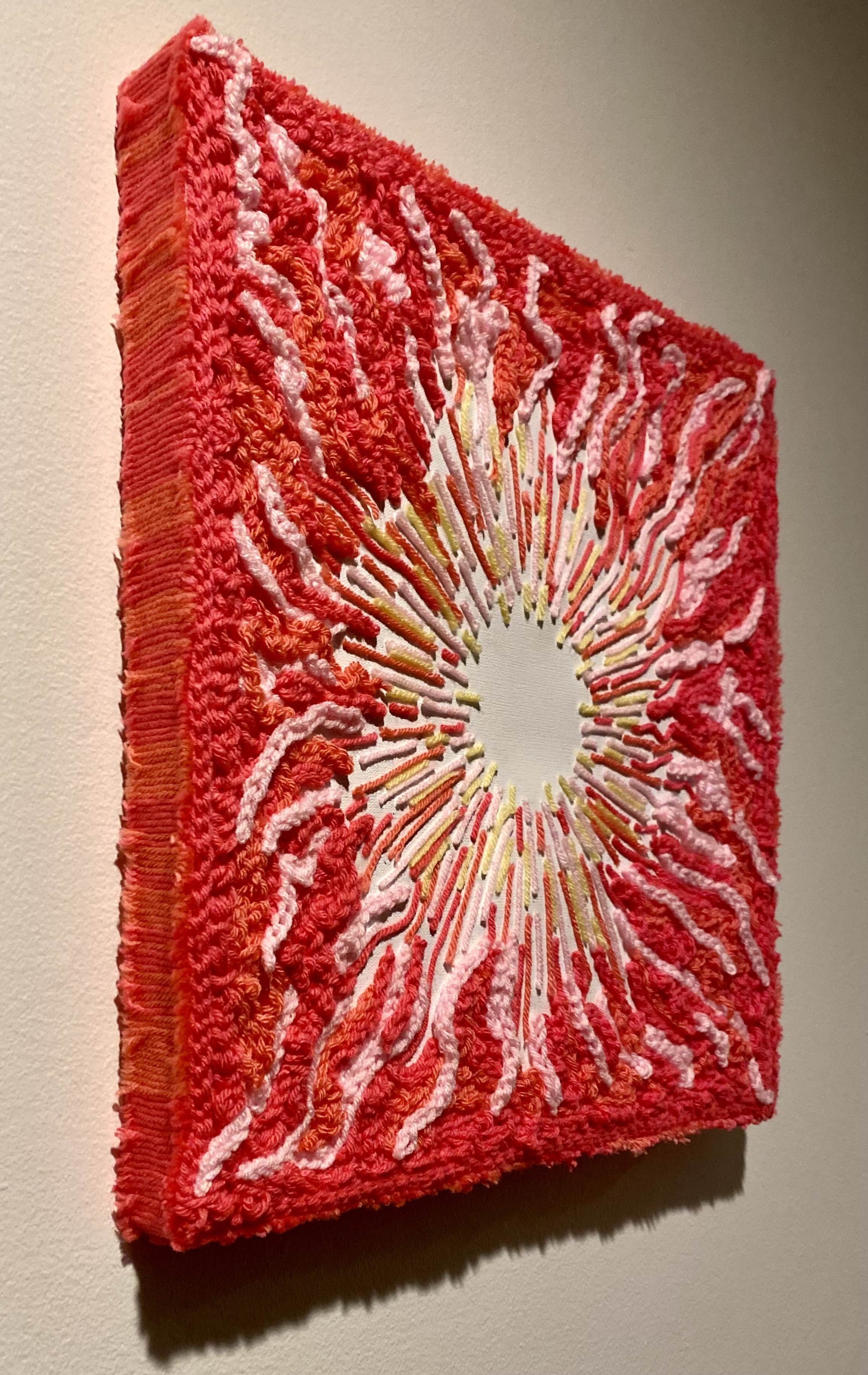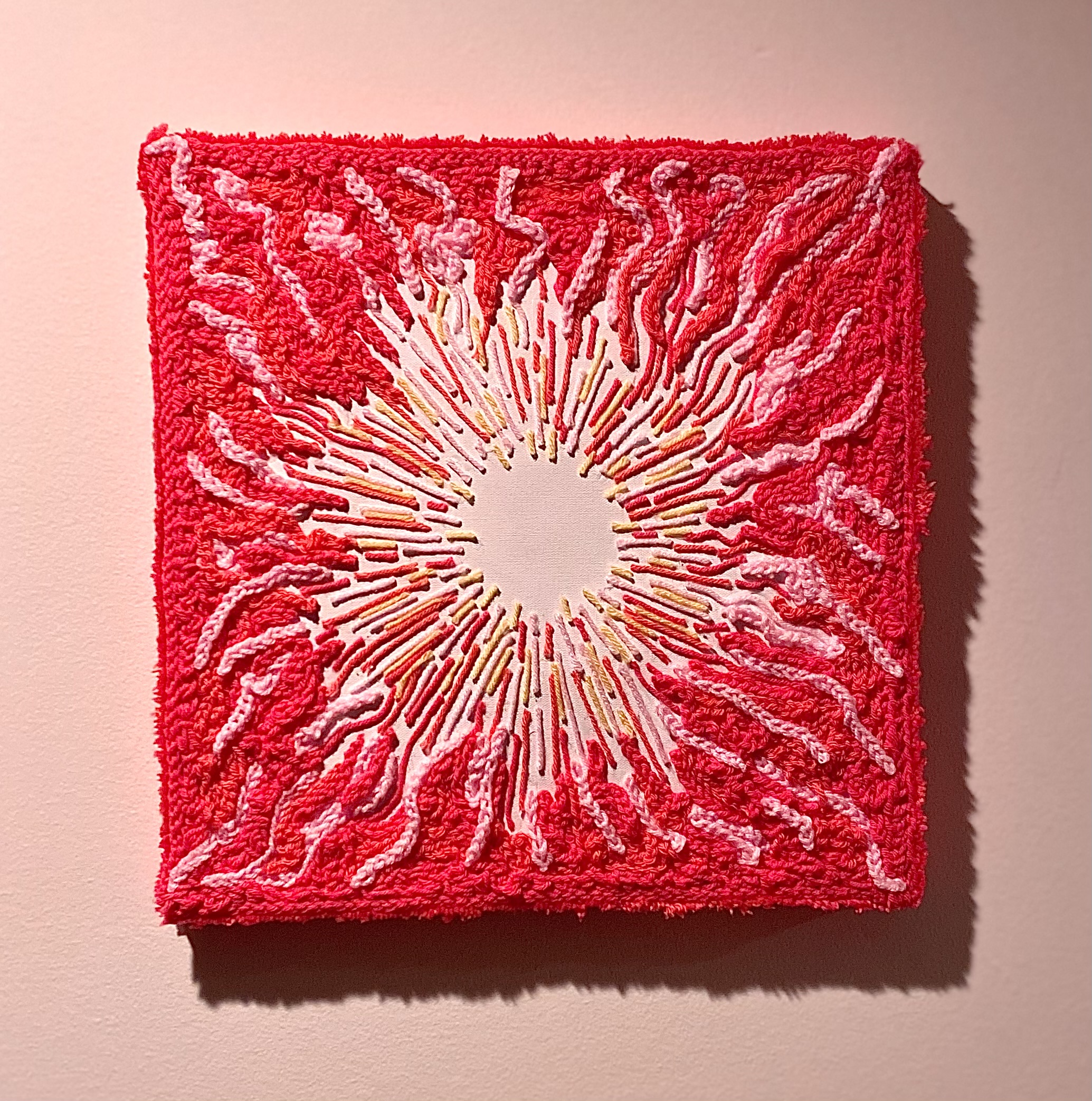 Graduates Select DepartmentBrand Design & StrategyCreative DirectionEntertainment DesignFilmFine ArtFurniture, Lighting and FixturesGraduate ArtGraduate FilmGraduate Graphic DesignGraduate Interaction DesignGraduate Spatial Experience DesignGraphic DesignIllustrationIndustrial DesignInteraction DesignMedia Design PracticesPhotography and ImagingProduct DesignSpatial Experience DesignTransportation DesignTransportation Systems and Design Back to Projects Kade Doll BFA in Fine Art - Illustration — Fine Art Aura 3 Aura 3, 2023, Pink, and yellow crochet yarn on canvas, 18 x 18 in. Image Image