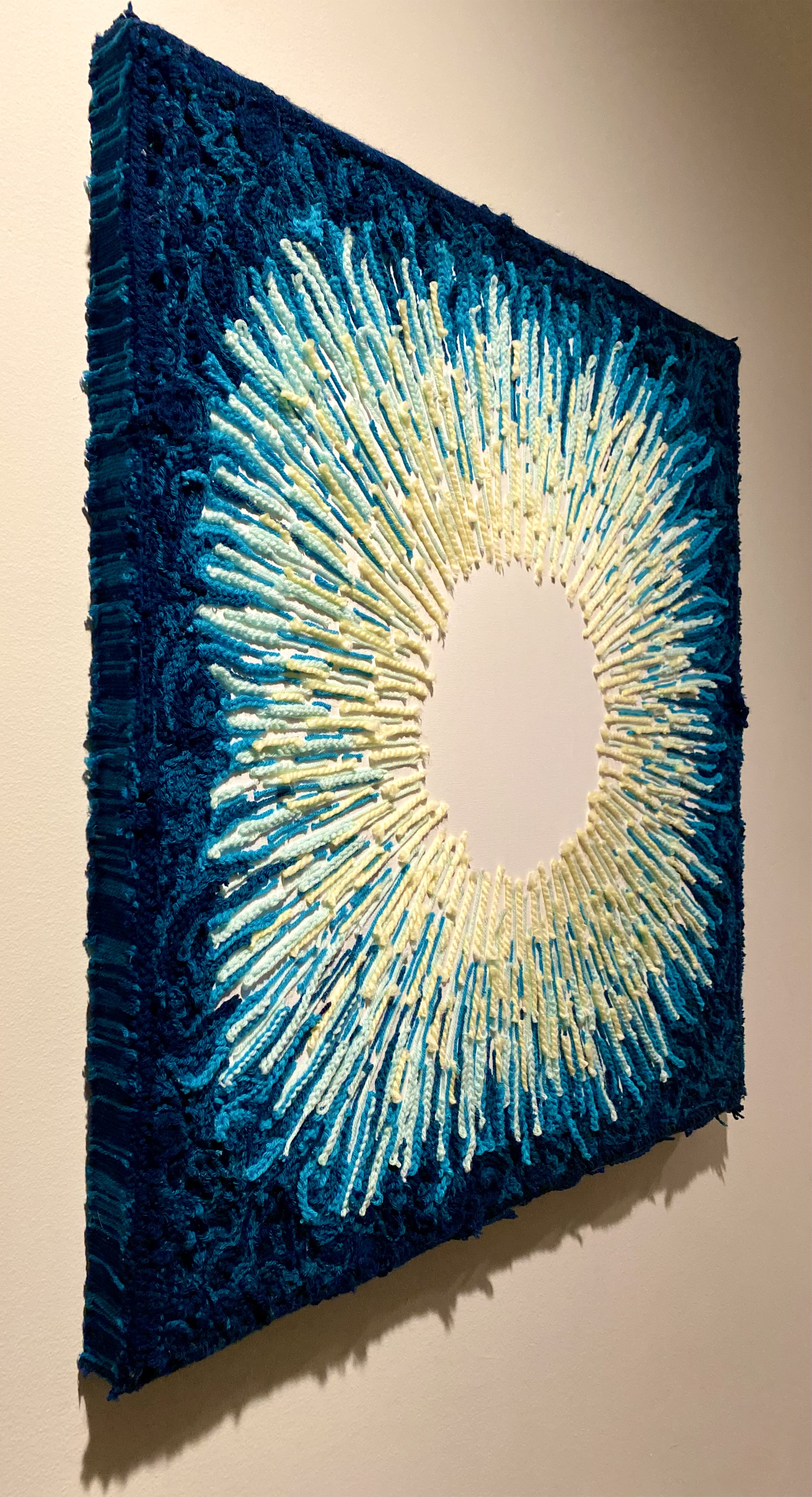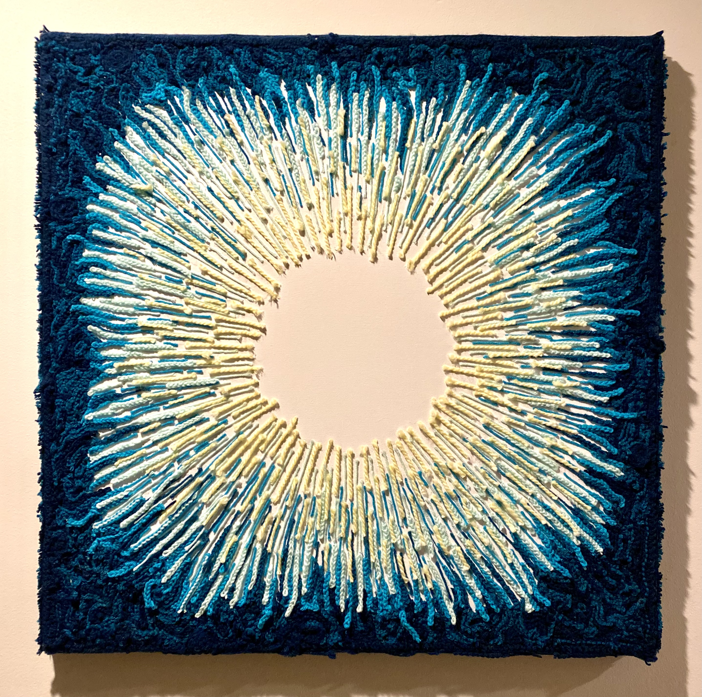 Graduates Select DepartmentBrand Design & StrategyCreative DirectionEntertainment DesignFilmFine ArtFurniture, Lighting and FixturesGraduate ArtGraduate FilmGraduate Graphic DesignGraduate Interaction DesignGraduate Spatial Experience DesignGraphic DesignIllustrationIndustrial DesignInteraction DesignMedia Design PracticesPhotography and ImagingProduct DesignSpatial Experience DesignTransportation DesignTransportation Systems and Design Back to Projects Kade Doll BFA in Fine Art - Illustration — Fine Art Aura Alone Aura Alone, 2022, Blue and yellow crochet yarn on canvas, 36 x 36 in. Image Image