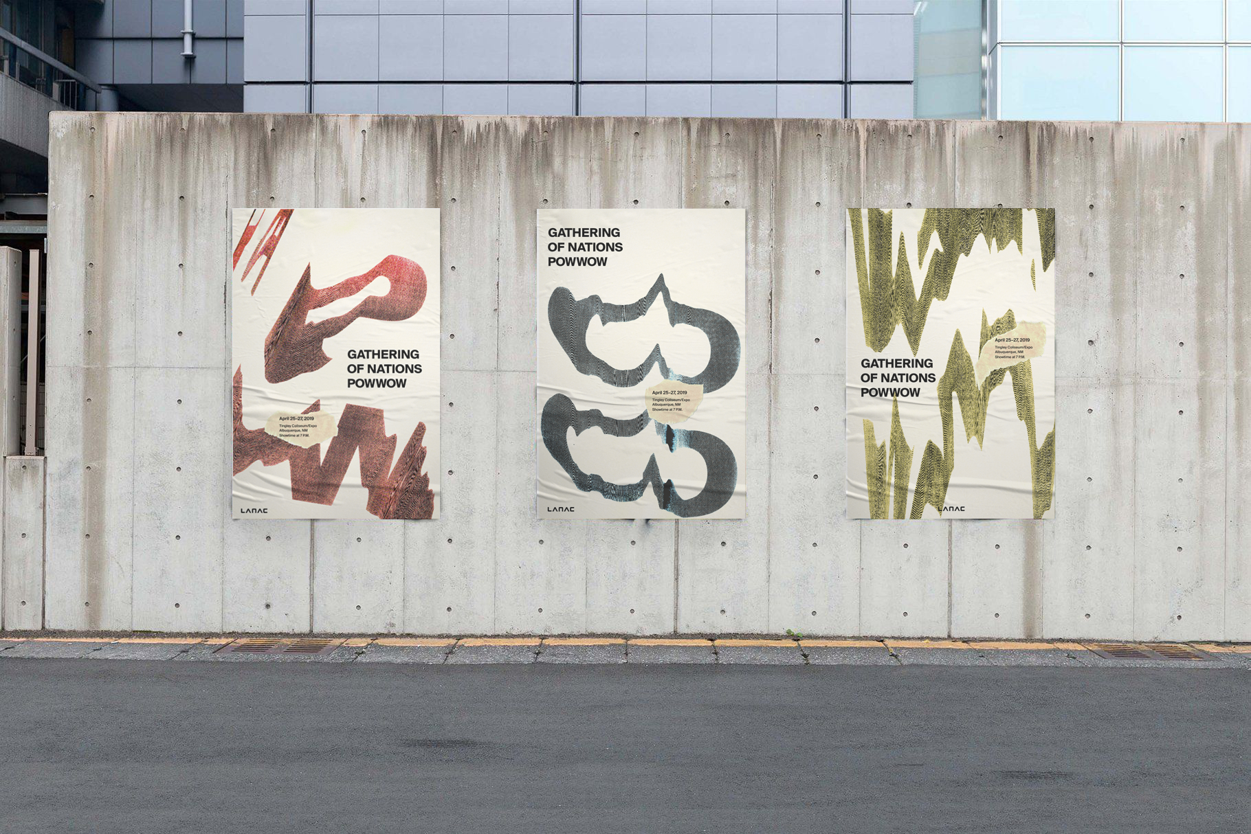 A powwow is an event where tribes come together to celebrate their heritage through eating, singing and dancing. The letterforms are distorted to capture the energy of the event.