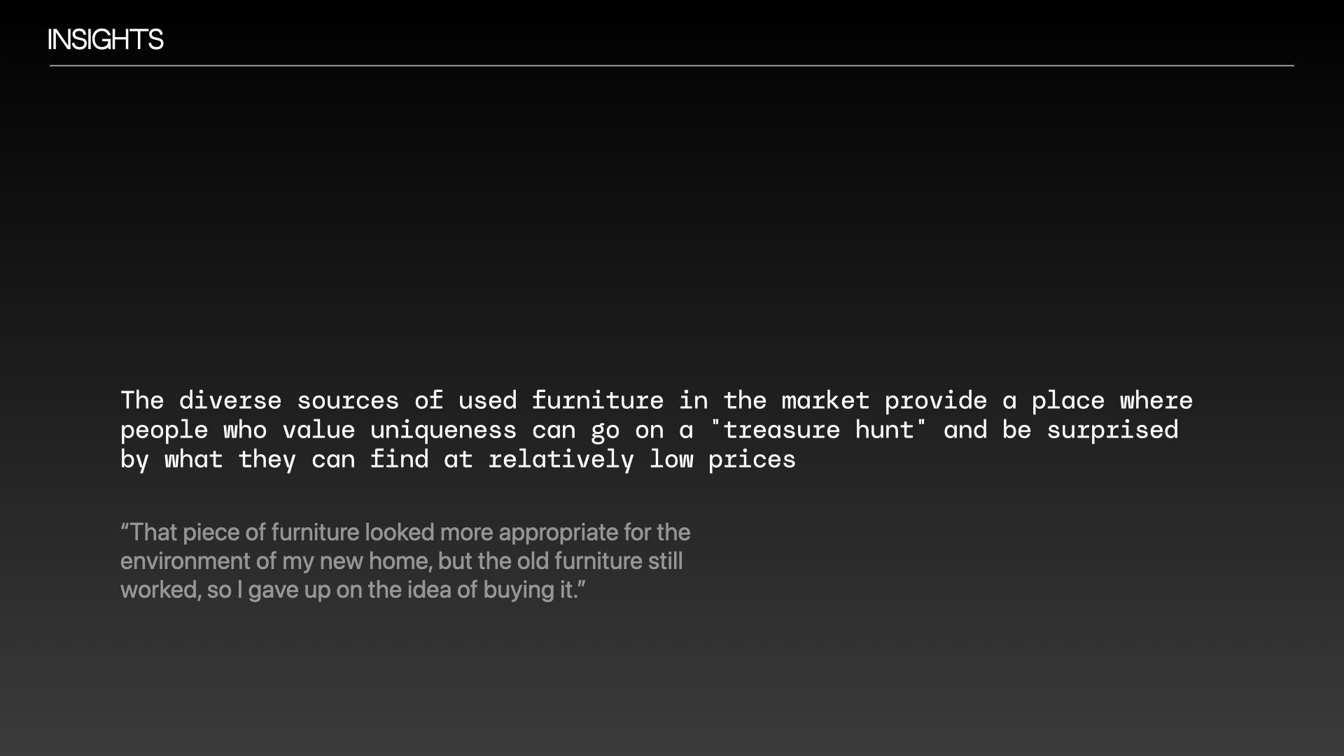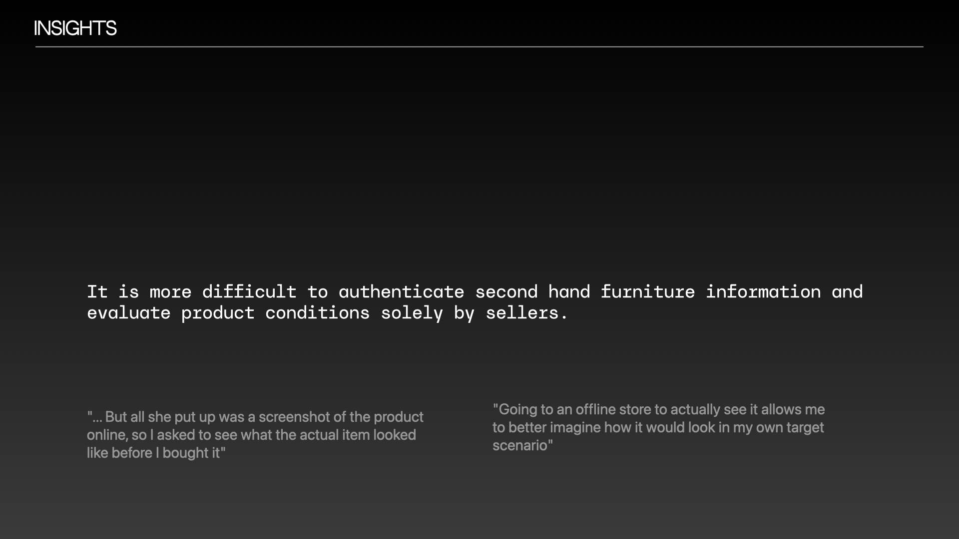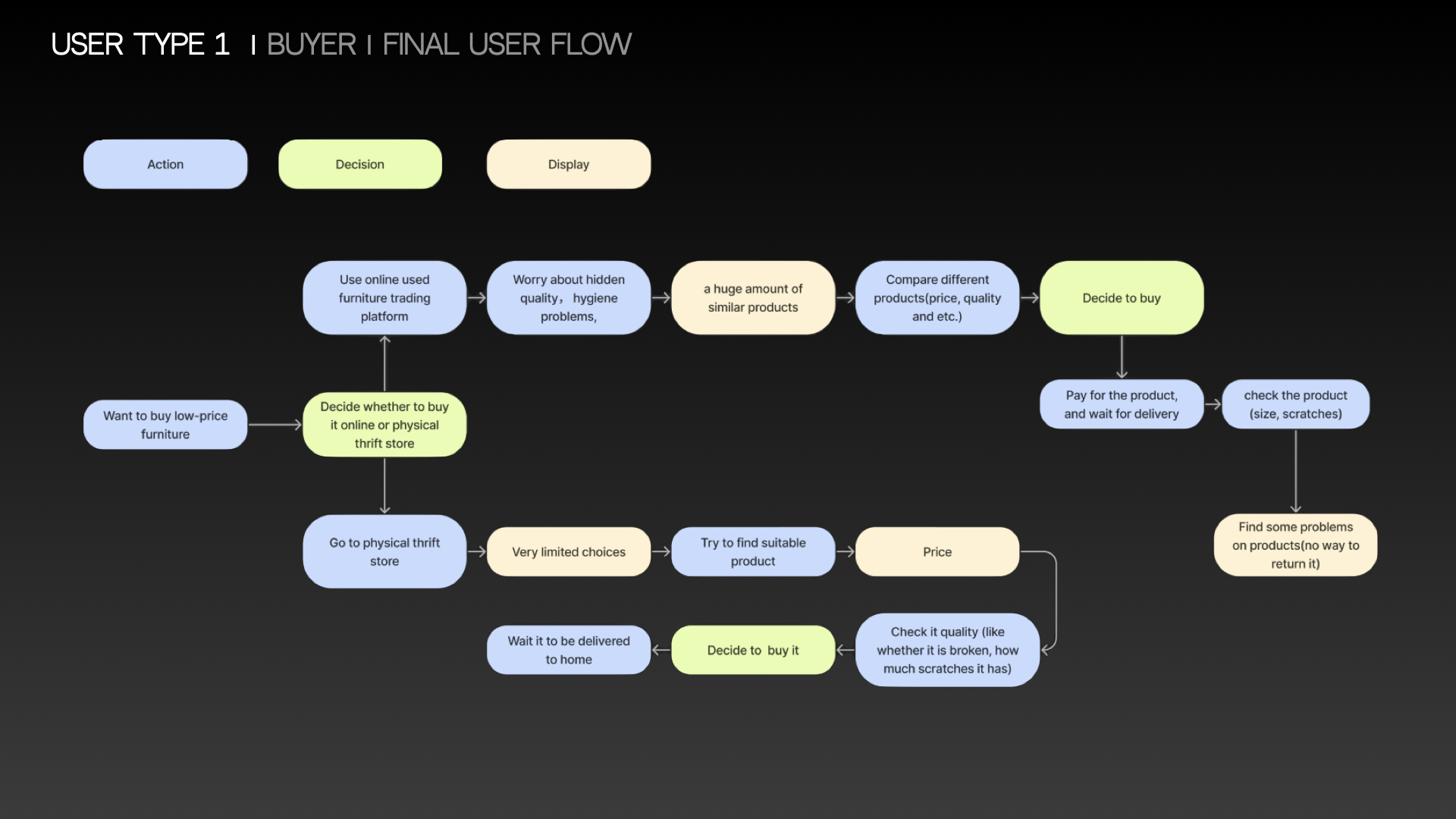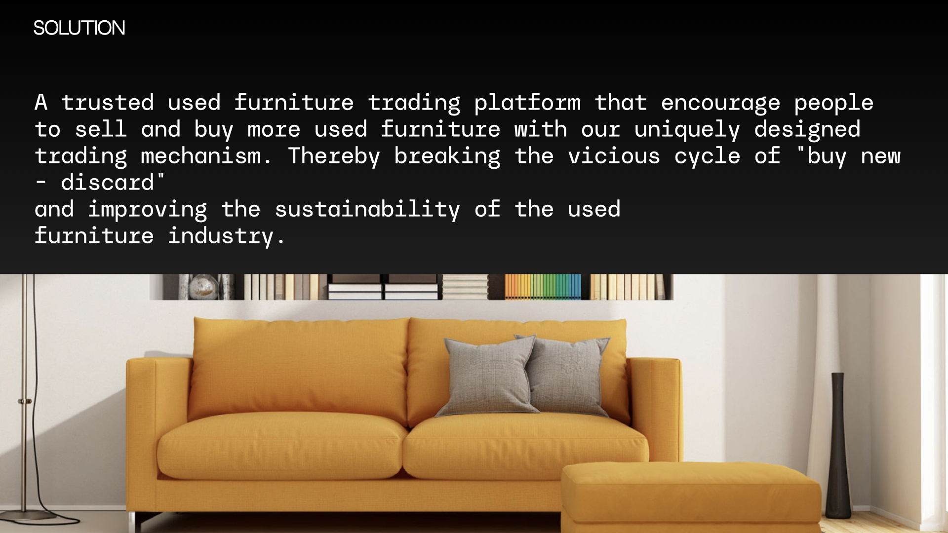 A trusted used furniture trading platform that encourages people to sell and buy more used furniture with our uniquely designed trading mechanism. Thereby breaking the vicious cycle of "buy new - discard" and improving the sustainability of the used furniture industry.