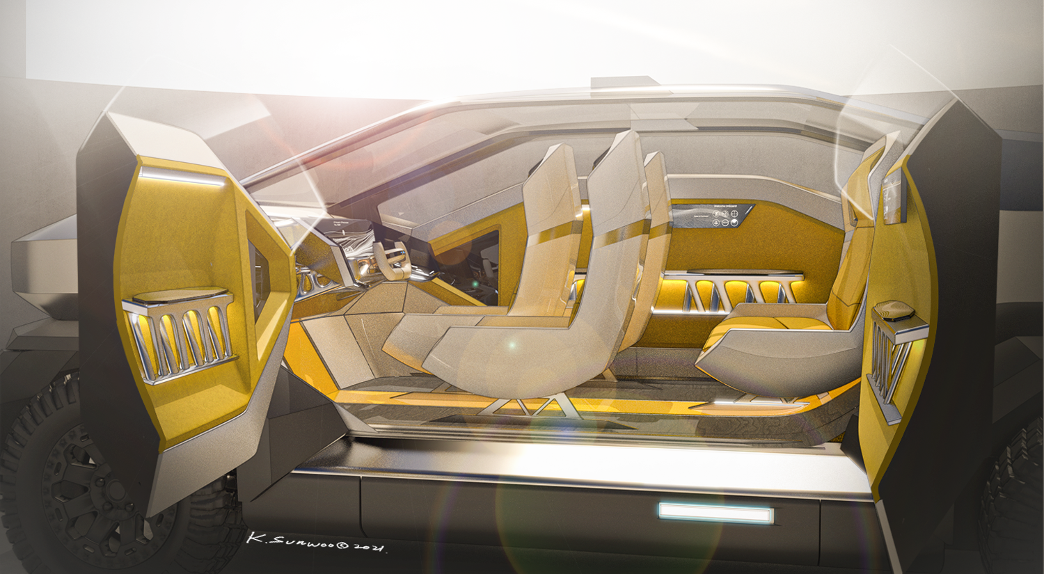 Works I did during my internship at Hollywood Hills Creative Platform in 2021. DISCLAIMER: ALL RIGHTS AND CREDITS RELATED TO THE IAT T-MAD CONCEPT BELONG TO IAT AUTOMOBILE TECHNOLOGY CO., LTD., AND IAT AUTOMOBILE DESIGN LLC. I, KEUN SUNWOO, HAD ONLY PROPOSED THE MAIN THEME OF THE OVERALL INTERIOR DESIGN IN THE EARLY PHASE OF DESIGN RESEARCH, WHICH IS DIFFERENT FROM THE DESIGN OF THE ACTUAL CONCEPT CAR RELEASED.