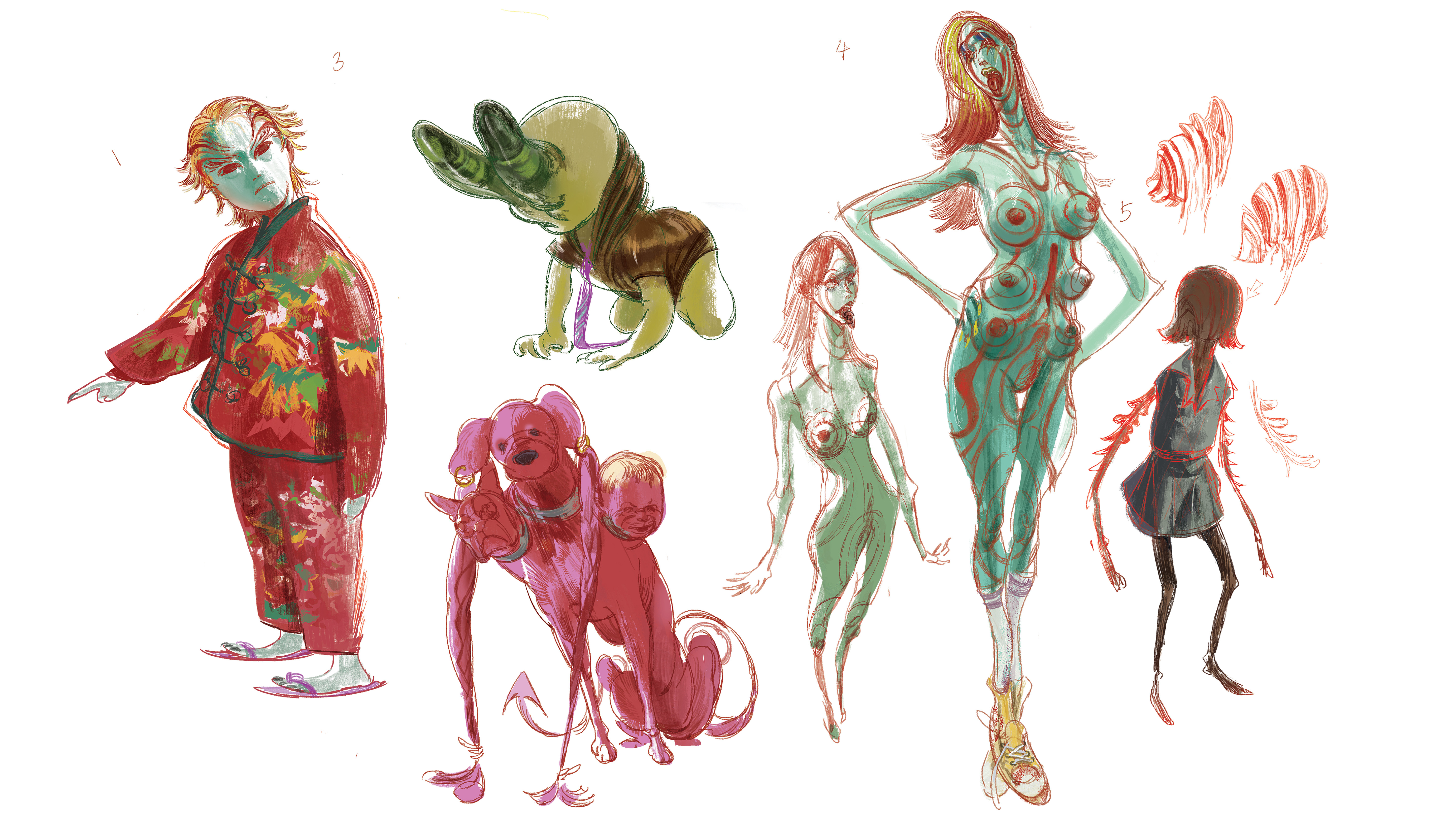 Character design project based on contemporary popular culture for a graphic novel, the stylized characters seek to explore a psychedelic experience, creating a sense of foreignness within reality.