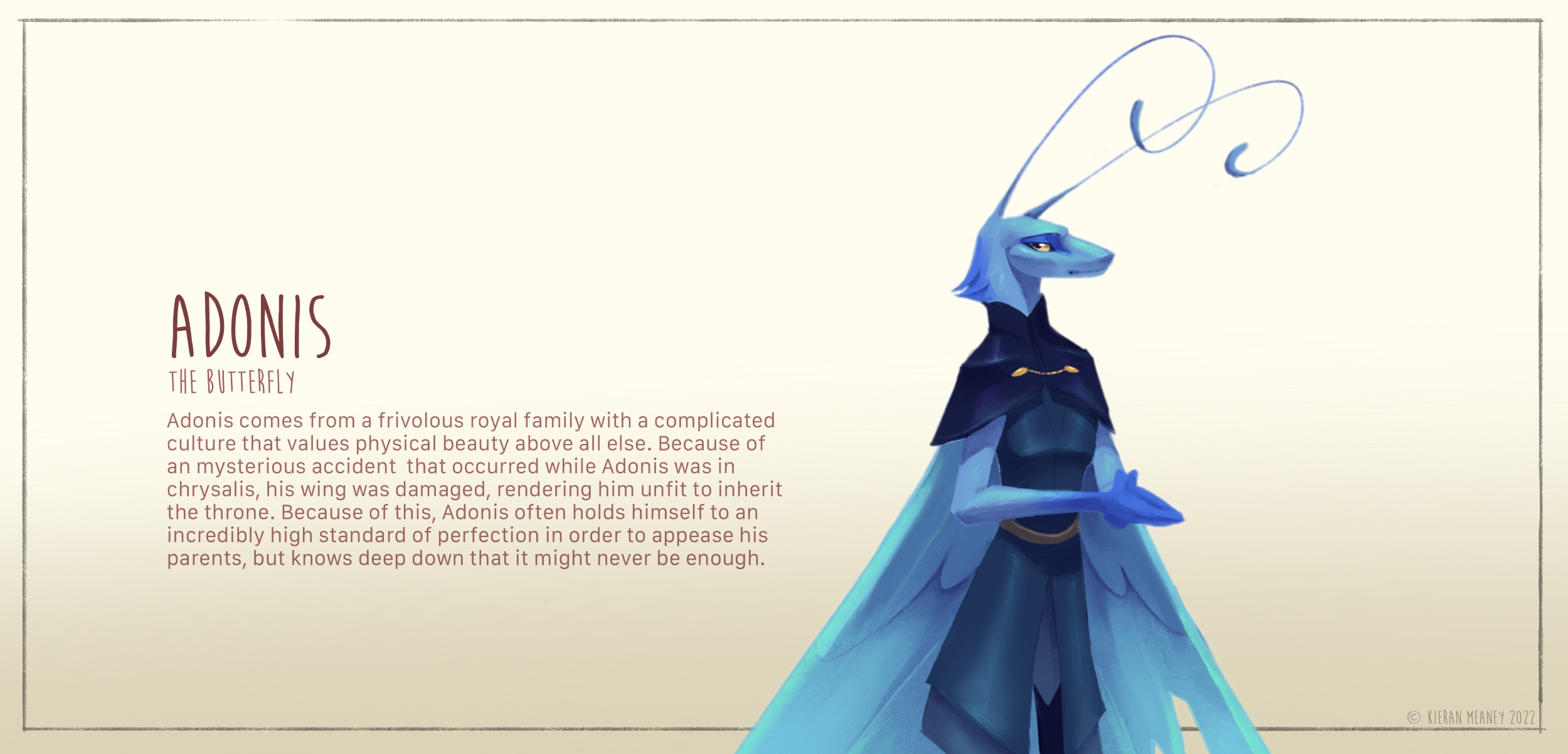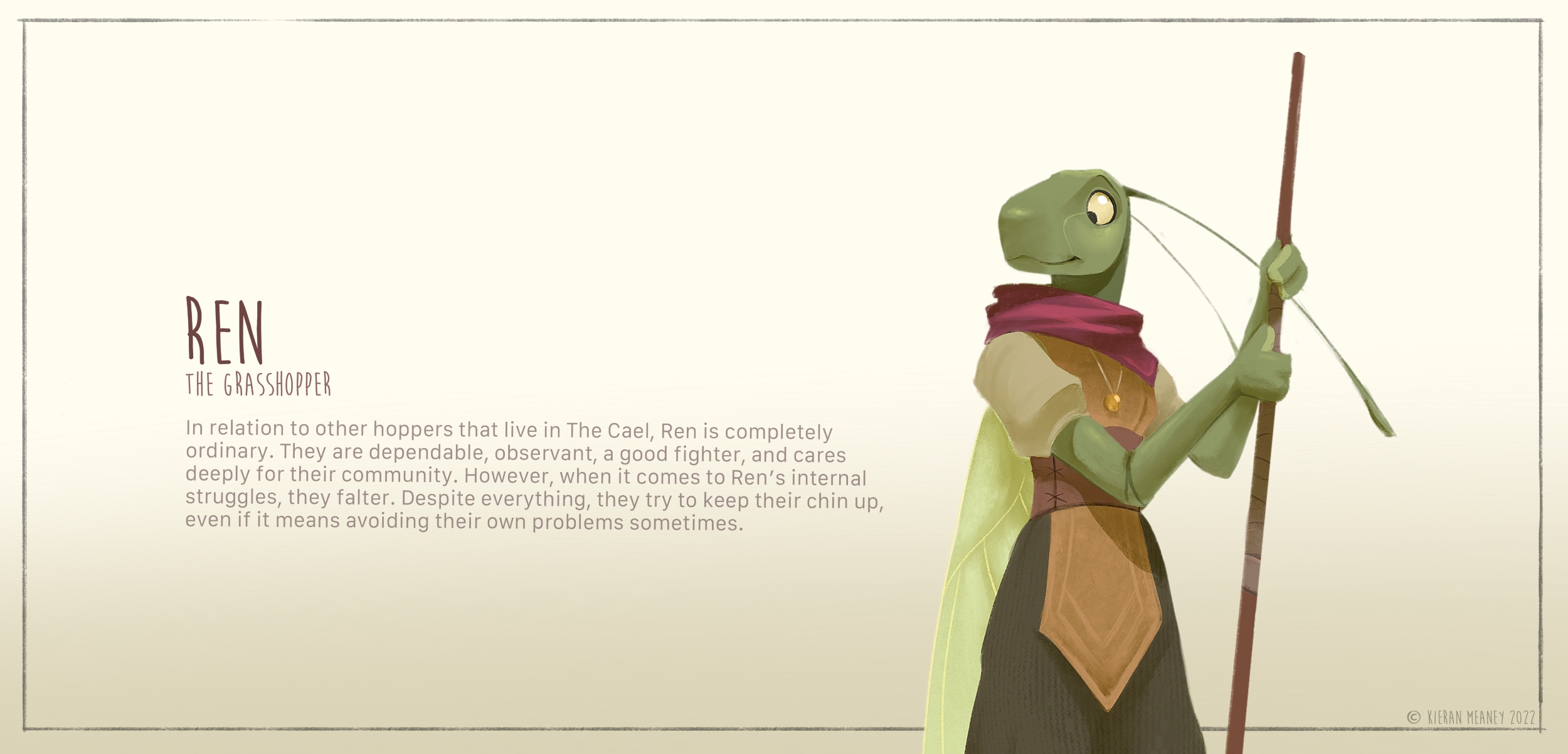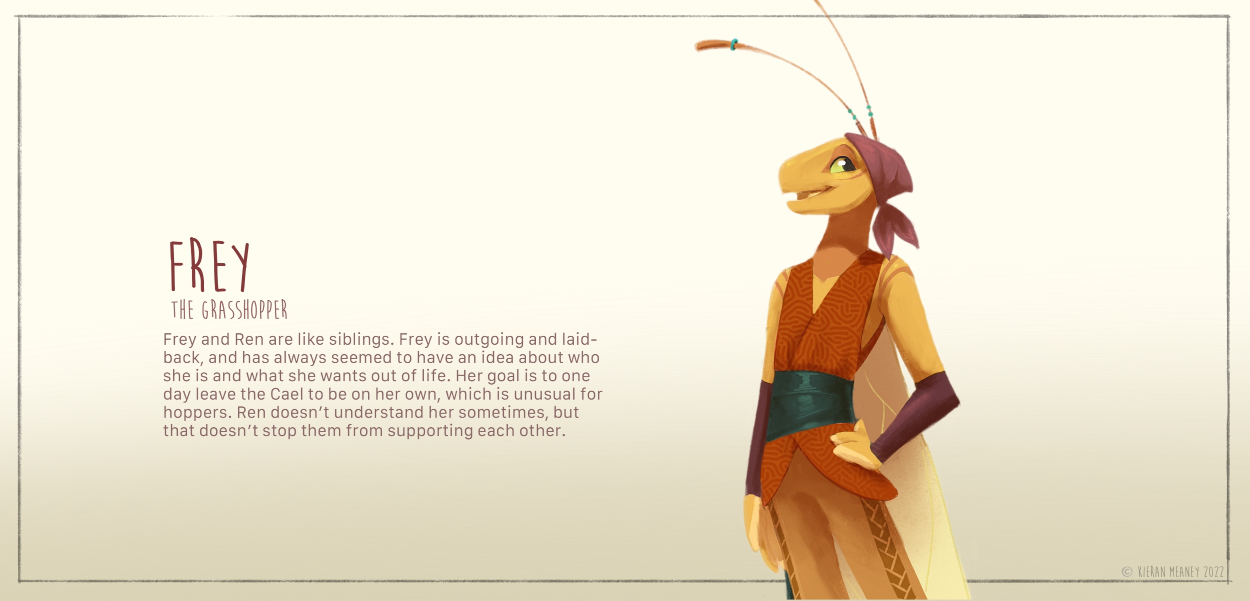 Graduates Select DepartmentBrand Design & StrategyCreative DirectionEntertainment DesignFilmFine ArtFurniture, Lighting and FixturesGraduate ArtGraduate FilmGraduate Graphic DesignGraduate Interaction DesignGraduate Spatial Experience DesignGraphic DesignIllustrationIndustrial DesignInteraction DesignMedia Design PracticesPhotography and ImagingProduct DesignSpatial Experience DesignTransportation DesignTransportation Systems and Design Back to Projects Kieran Meaney BFA in Illustration - Entertainment Arts — Illustration Ren The Grasshopper A personal visual development project. Image Image Image Image Image Image Image Image Image Image Image Image