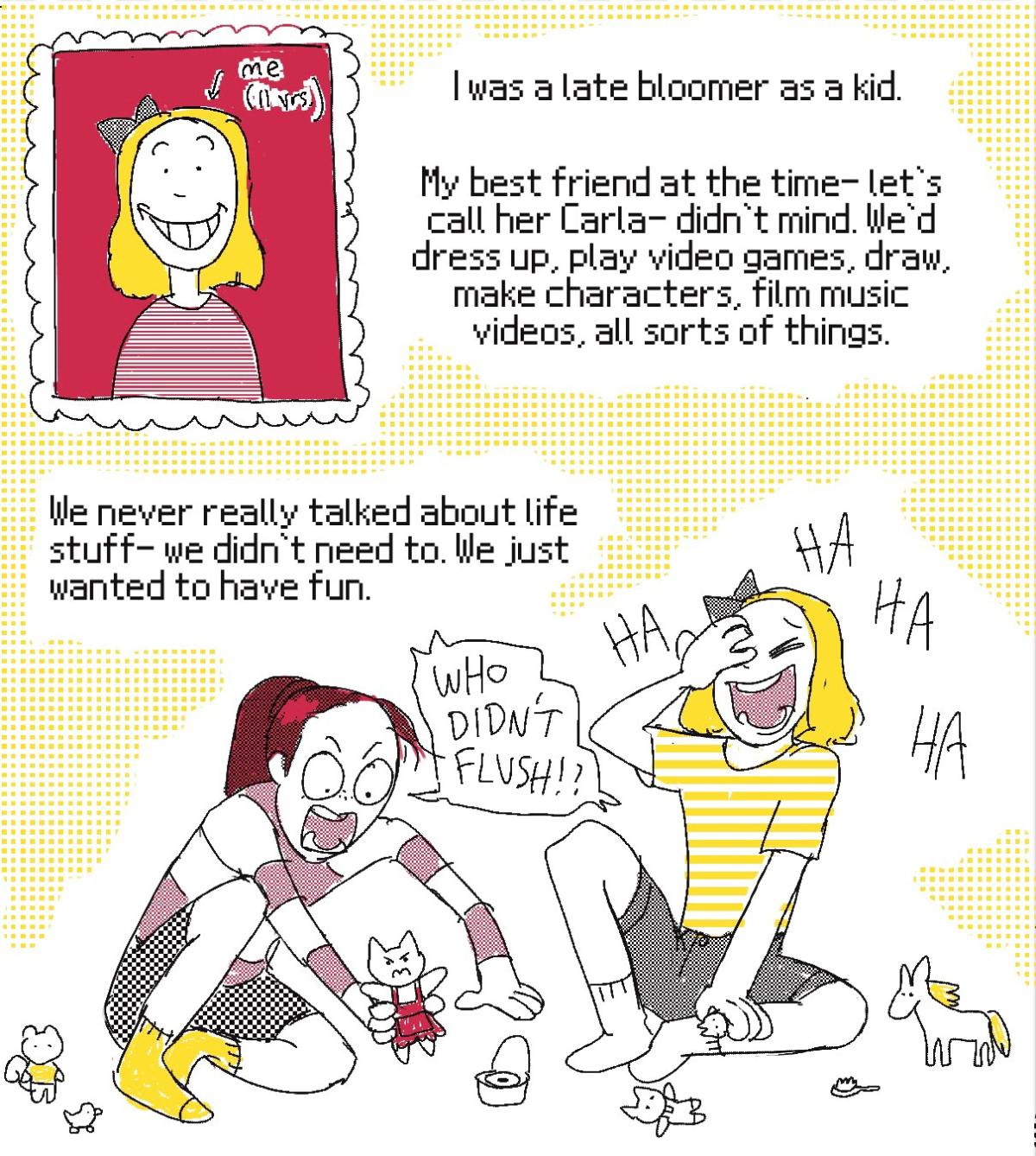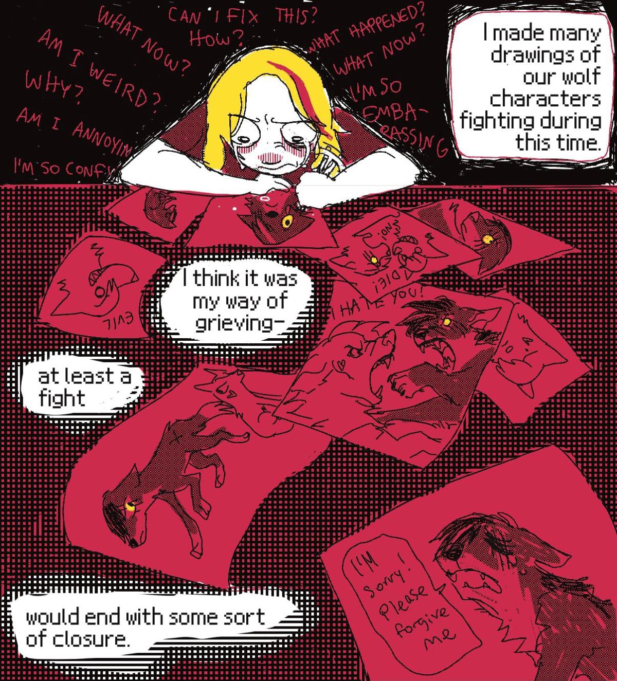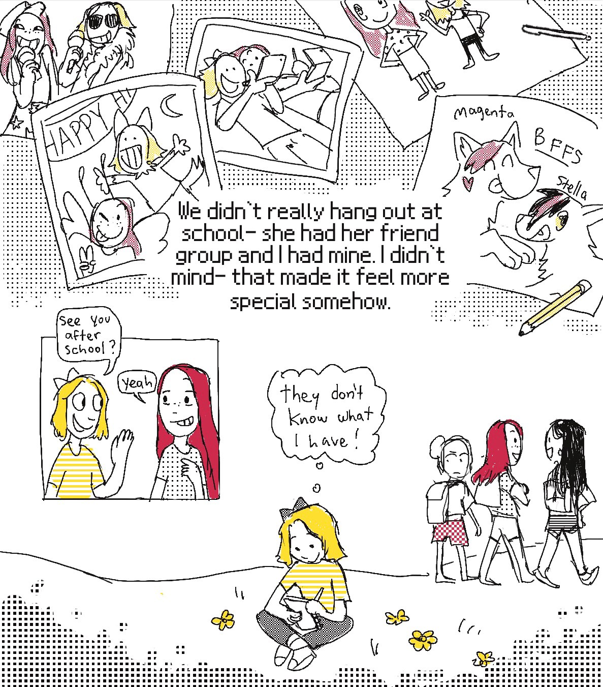 Originally printed as an eight- page zine, "Wolf Girls" is a personal comic book about childhood angst and a best friend breakup, shown through the eyes of a 5th grade girl who processes grief through drawing.