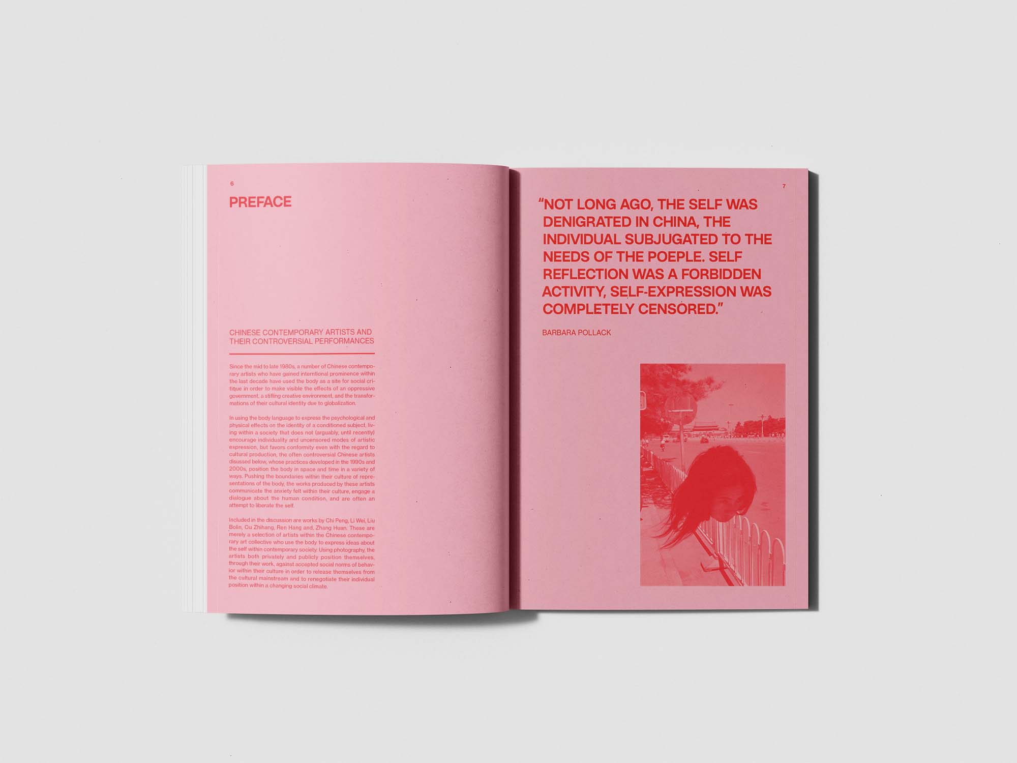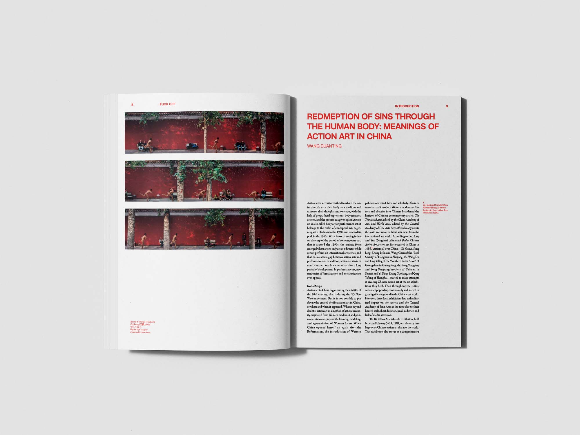 Included in this book are works by Chinese contemporary artists who use the body to express ideas about the self within contemporary society. Using photography that incorporates the performative use of the body, these artists privately and publicly position themselves, through their work, against accepted social norms of behavior within their culture in order to release themselves from the cultural mainstream and to renegotiate their individual position within a changing social climate.