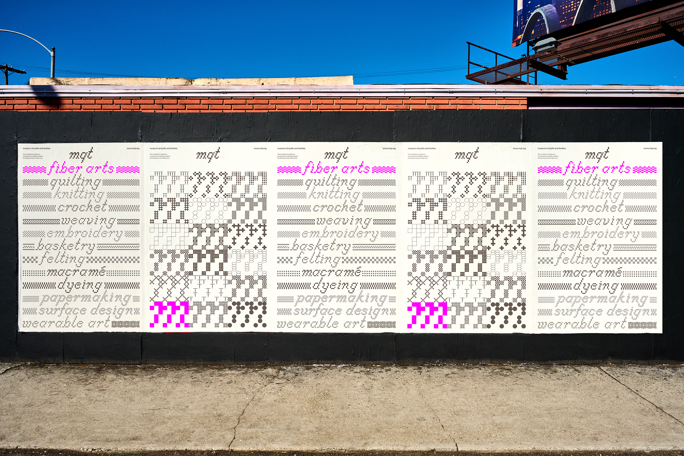 The Museum of Quilts and Textiles is the first U.S. institution solely dedicated to fiber arts. This rebrand reflects the evolving dialogue between tradition and innovation, focusing on the intersection of textiles and technology. The new identity aims to engage a broader, younger audience and position fiber arts as a dynamic medium for contemporary expression.