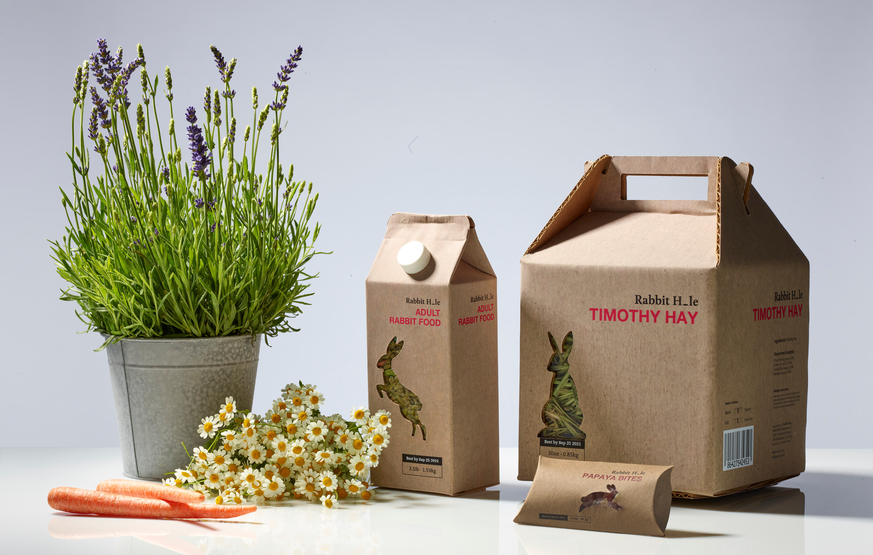 I have a rabbit named Pepper. Having her is like diving into a rabbit hole, where I have to face bedsheets full of holes and broken charging cables. Based on my observation, I have noticed that pet products in the market often use vibrant colors to catch customers' attention. Therefore, I decided to take a minimalist approach for this series of packaging for rabbits.